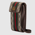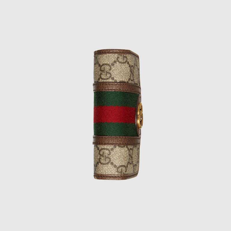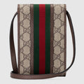 A new mini bag shape is presented within the Ophidia collection, with a magnetic flap closure and removable snap button shoulder strap. First developed by Gucci in the 1950s, the Web stripe continues to pay homage to the House’s roots and equestrian influences, inspired by the strap that secured the saddle to the horse. Portrayed in its most notable combination of green and red, the stripe runs down the centre of the petite, rectangular shape in GG Supreme canvas. The style can be used as a phone bag.