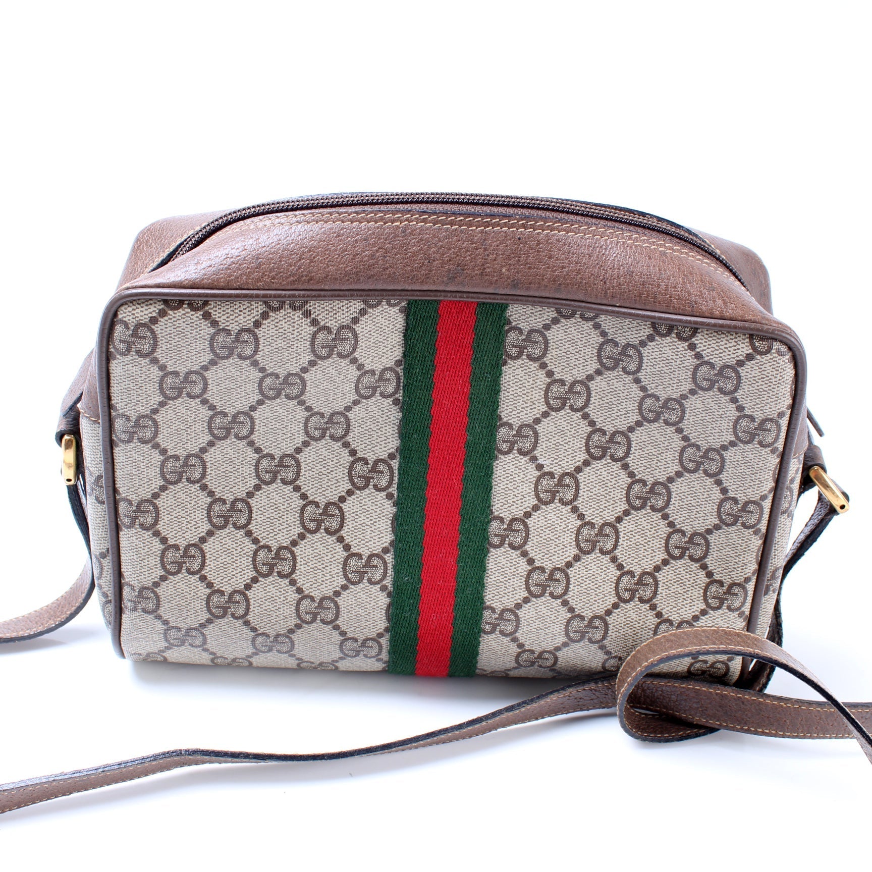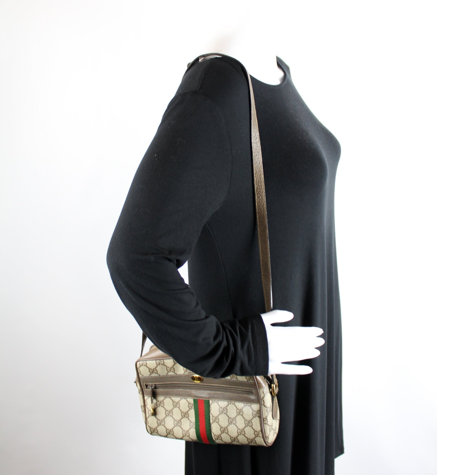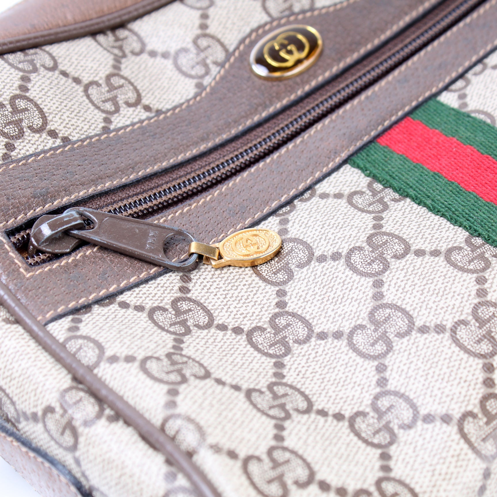 This Gucci Vintage Ophidia Shoulder Bagis eye catching bag. The exterior is in the classic Gucci GG coated canvas.