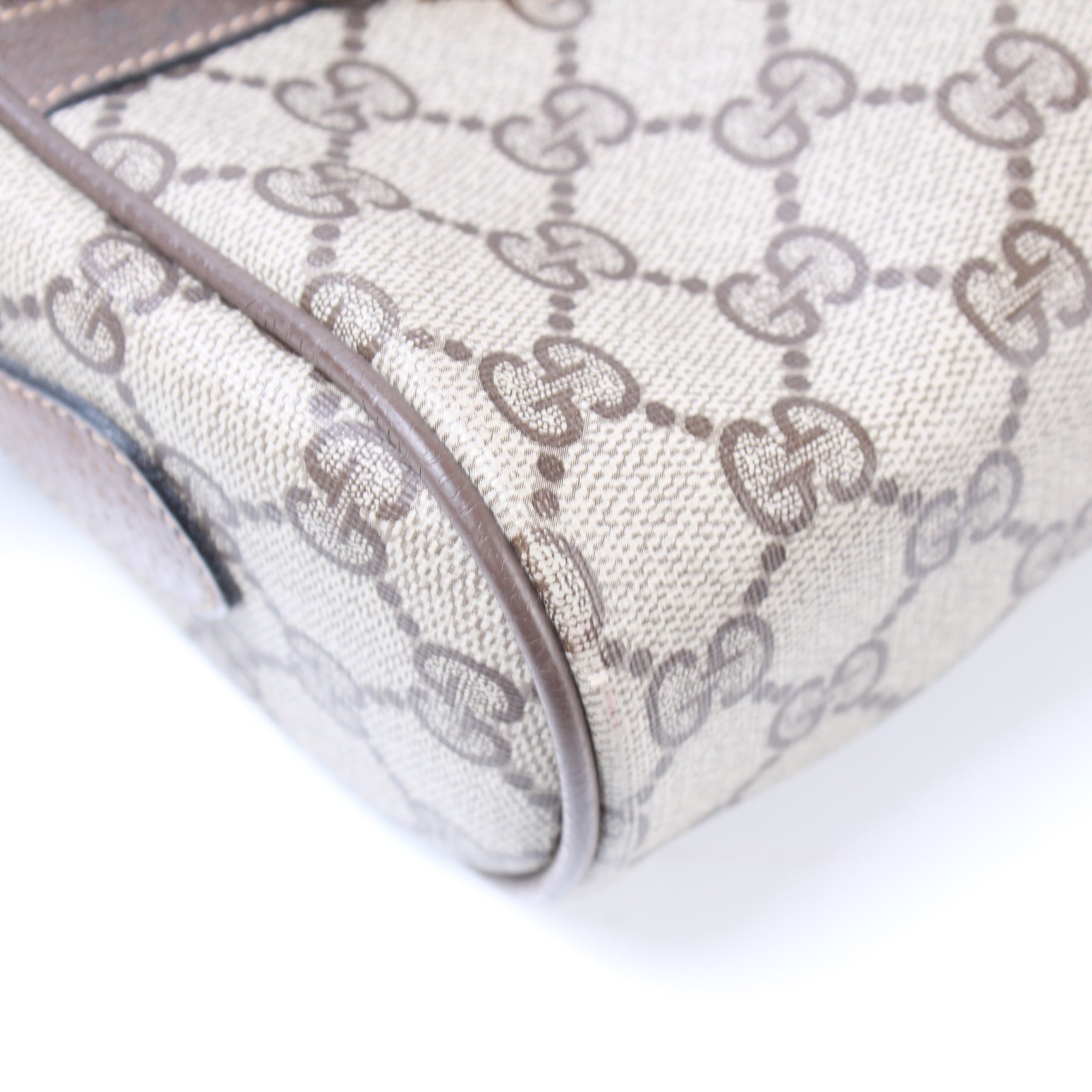 Exterior: The exterior GG coated canvas shows no major signs of wear. The exterior includes one front zippered pocket.