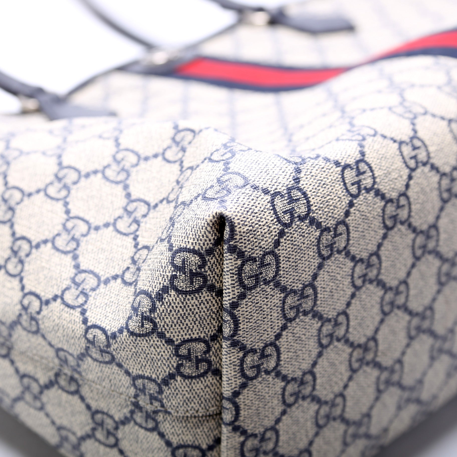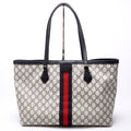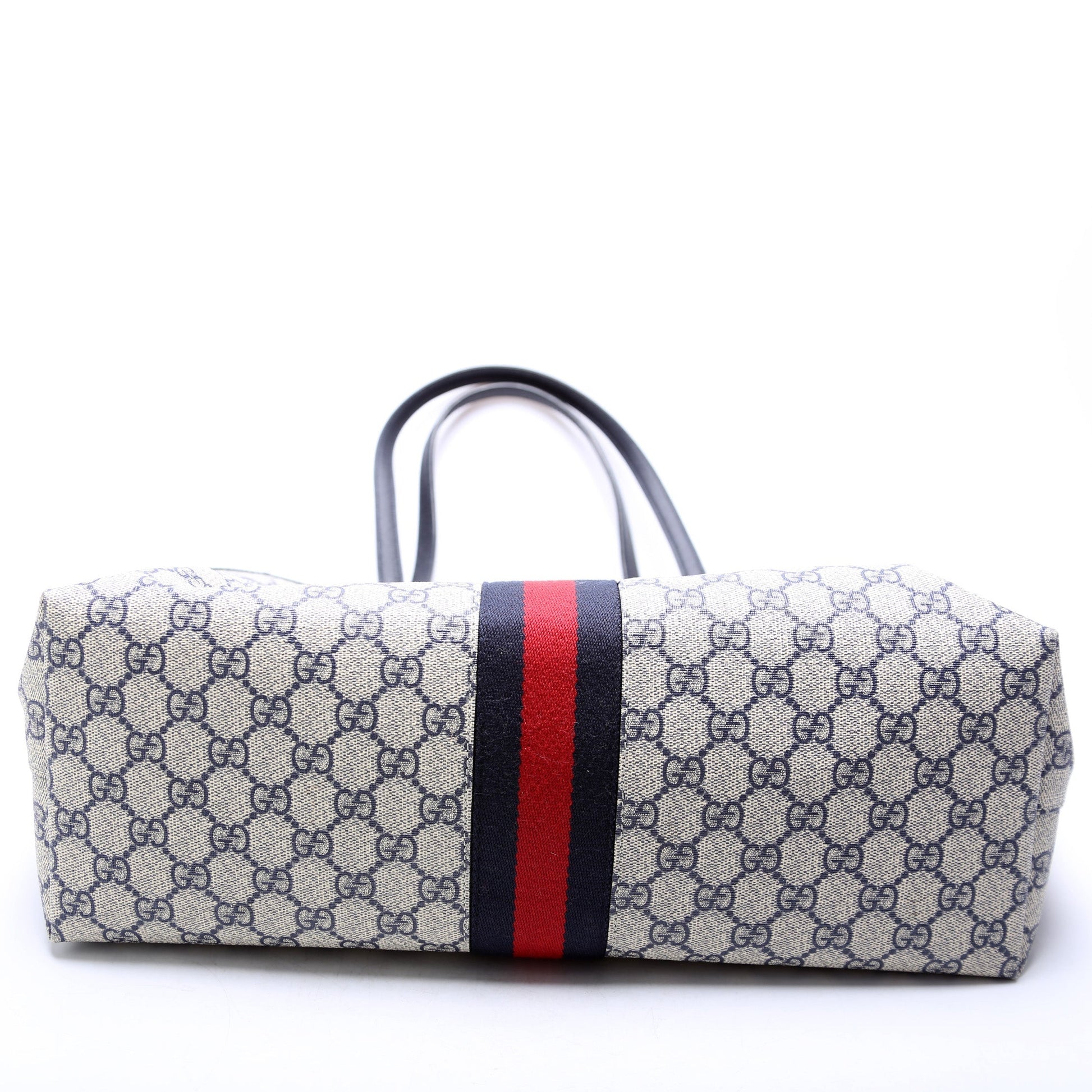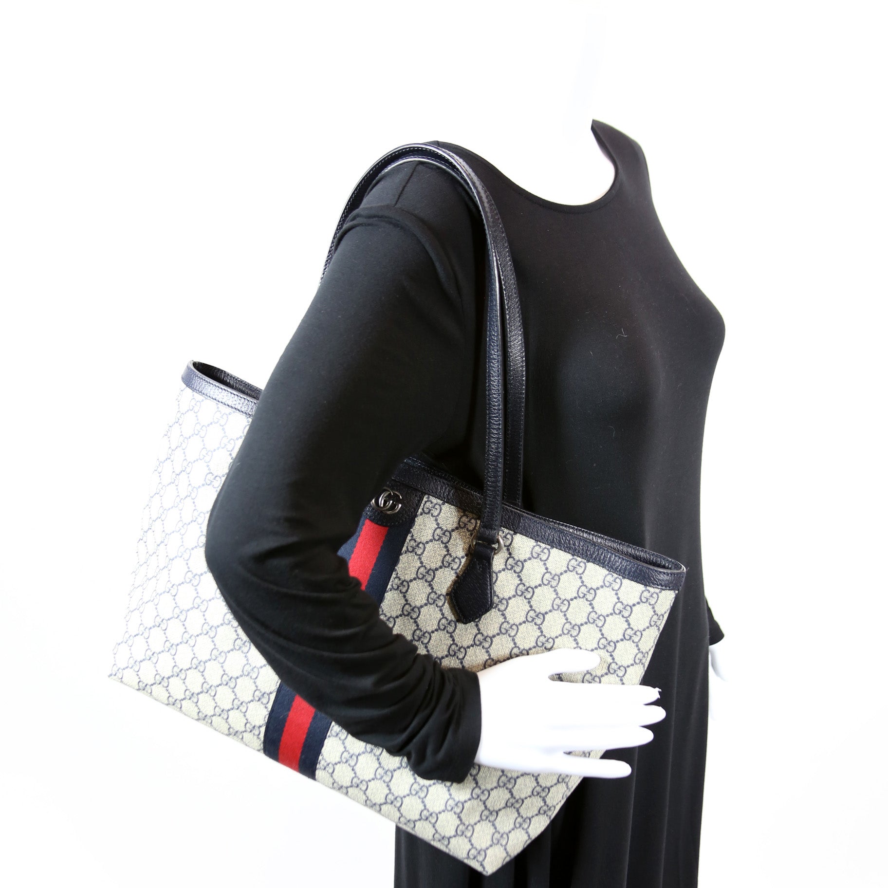 This Gucci Ophidia Tote is d 100% . The exterior is in the classic Gucci GG Supreme coated canvas.