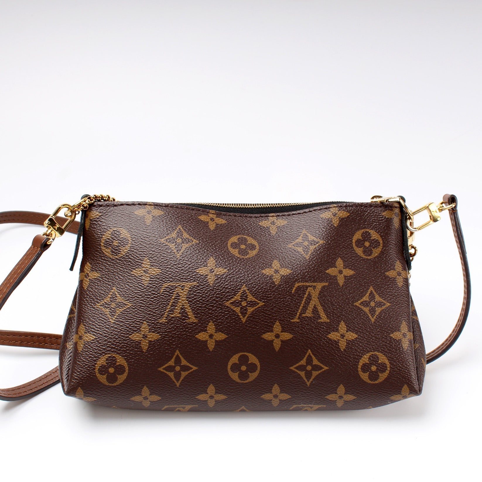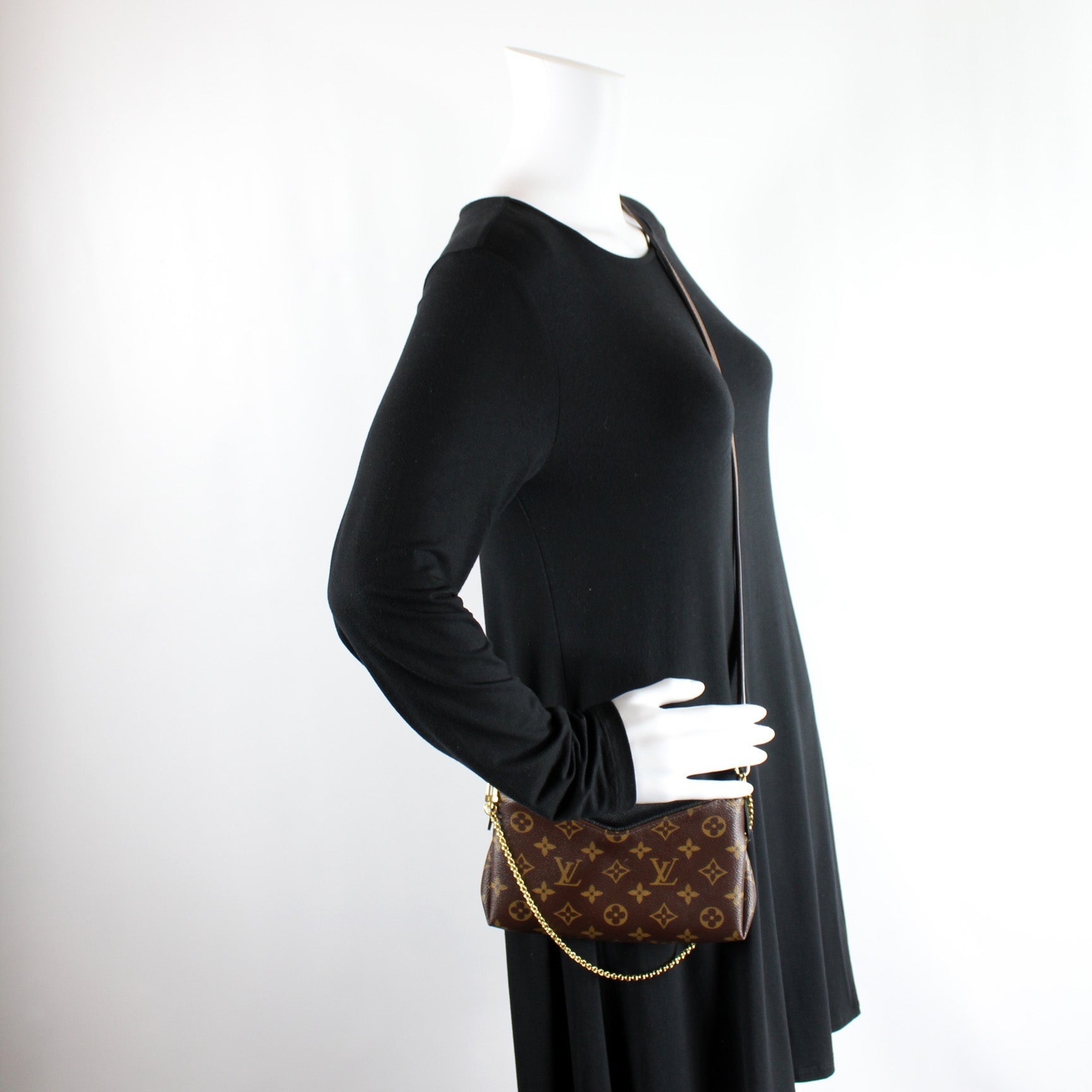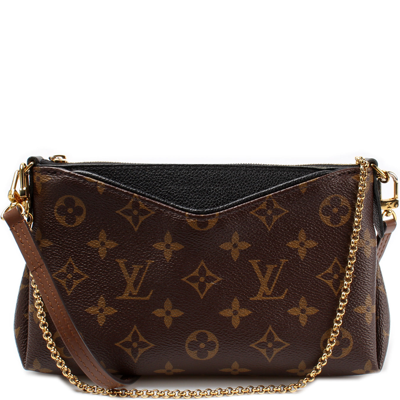 This Louis Vuitton Pallas Clutchis eye catching bag. The exterior is in the classic Louis Vuitton Monogram coated canvas.