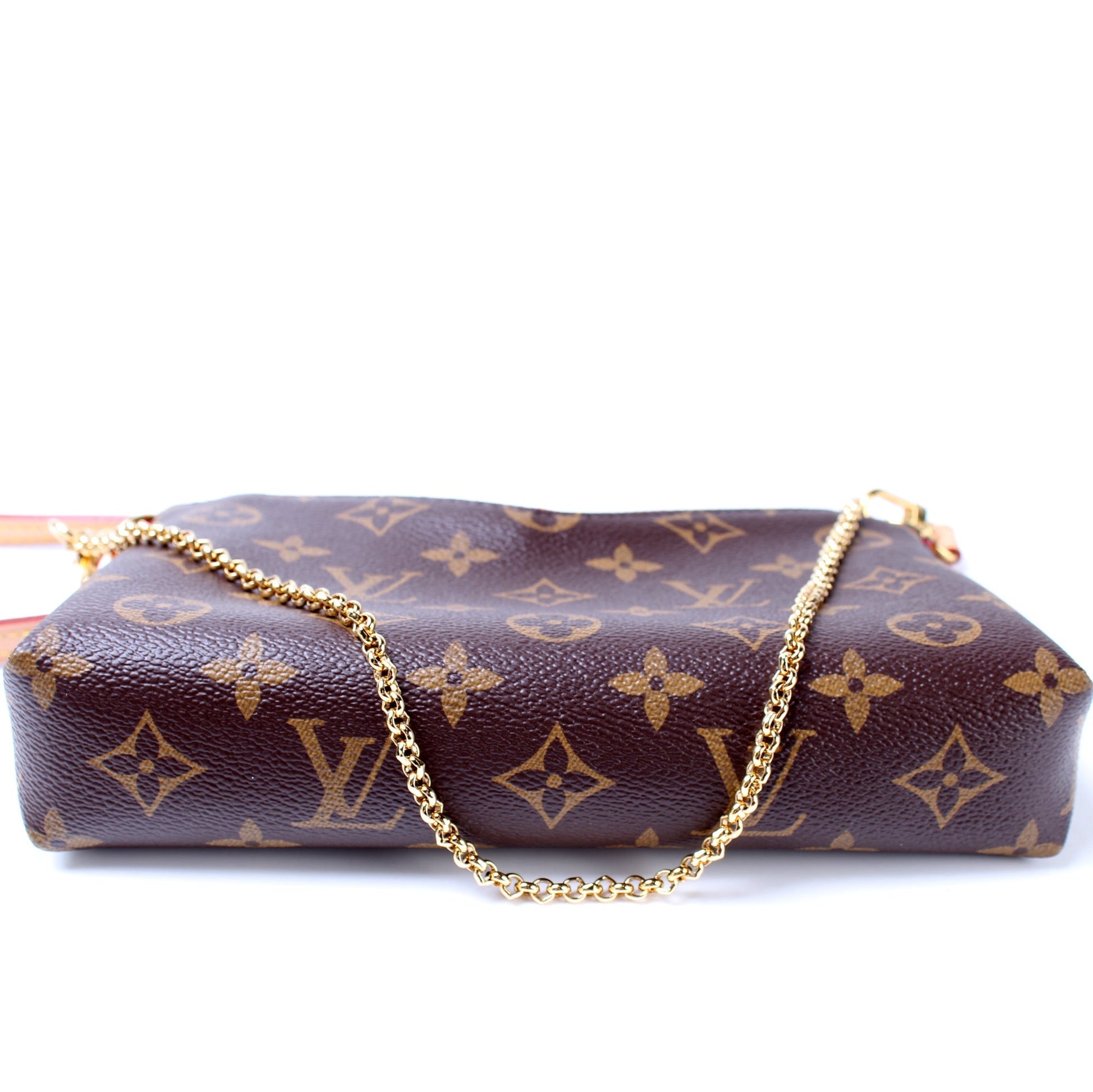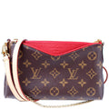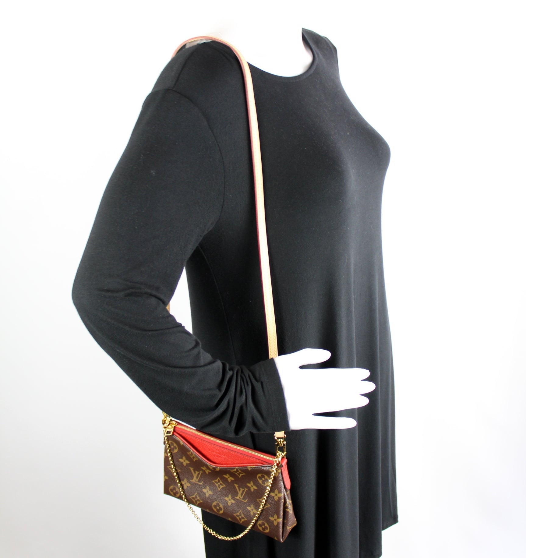 This Louis Vuitton Pallas Clutchis eye catching bag. The exterior is in the classic Louis Vuitton Monogram coated canvas.