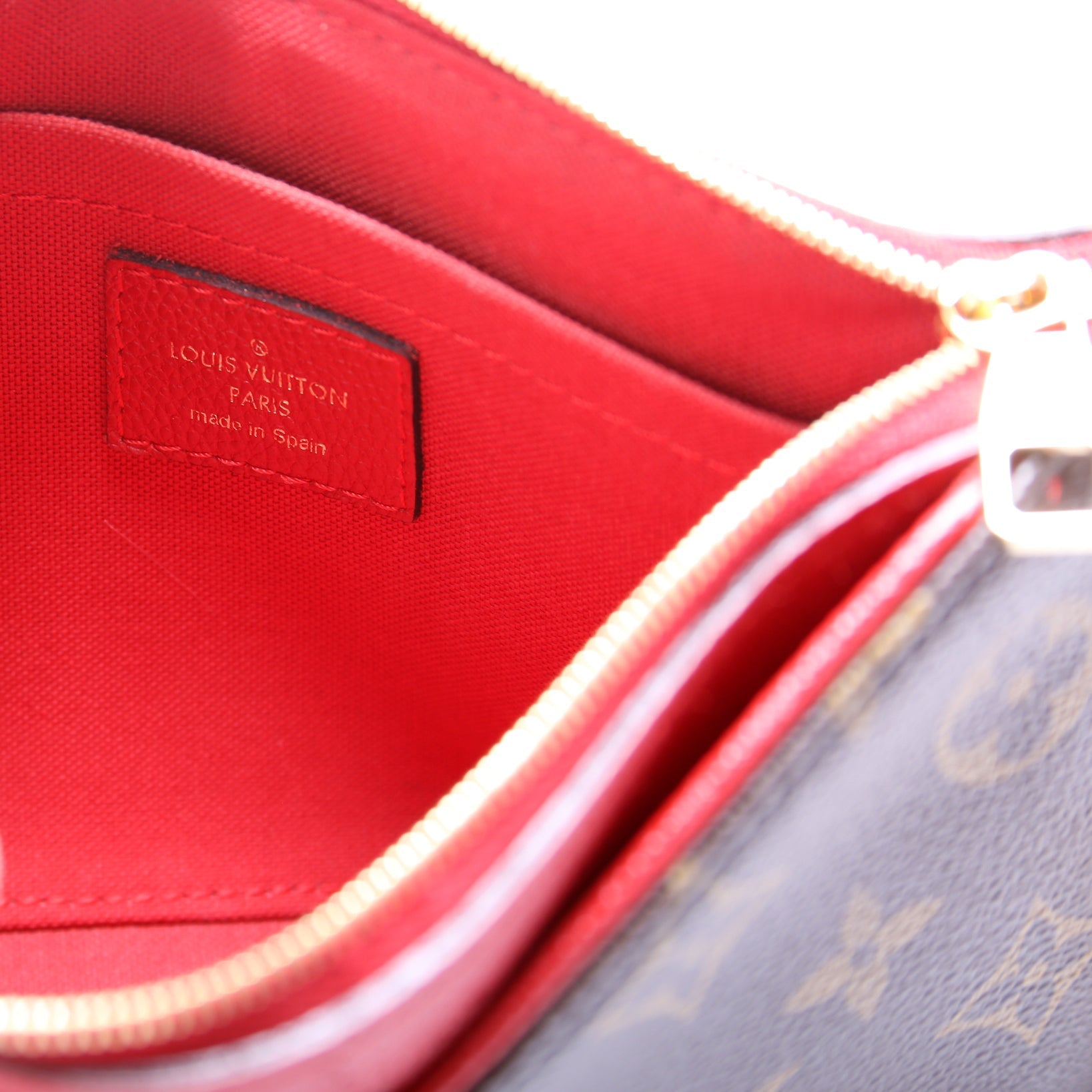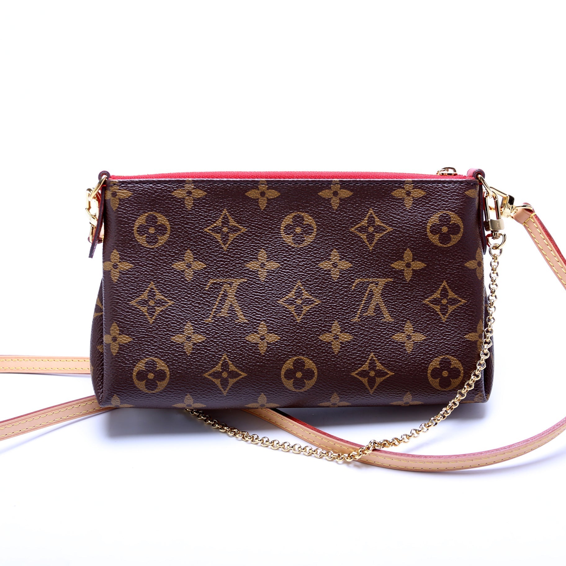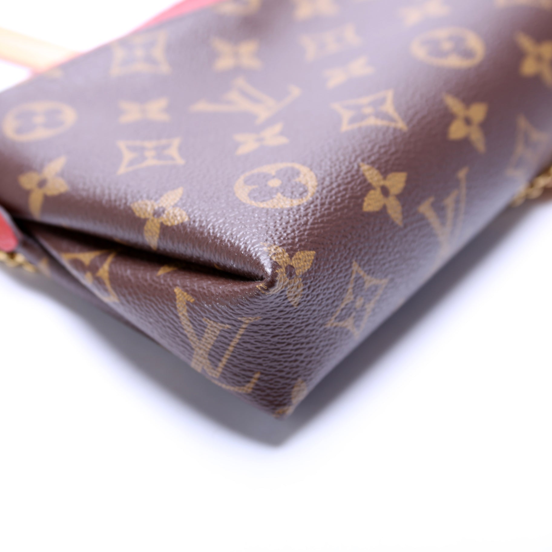 This Louis Vuitton Pallas Clutchis eye catching bag. The exterior is in the classic Louis Vuitton Monogram coated canvas.