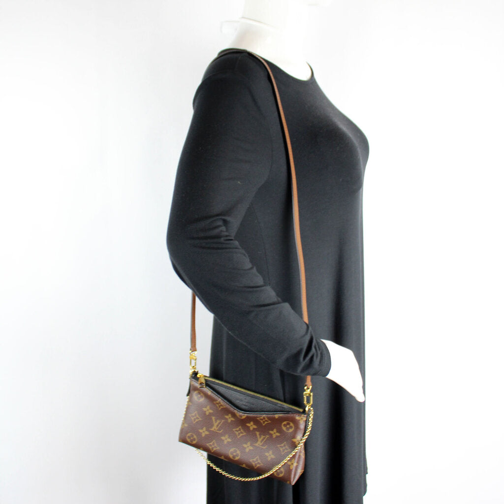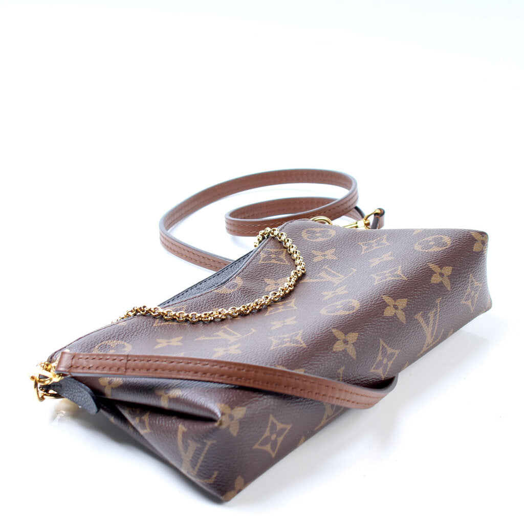 This Louis Vuitton Pallas Clutchis eye catching bag. The exterior is in the classic Louis Vuitton Monogram coated canvas.