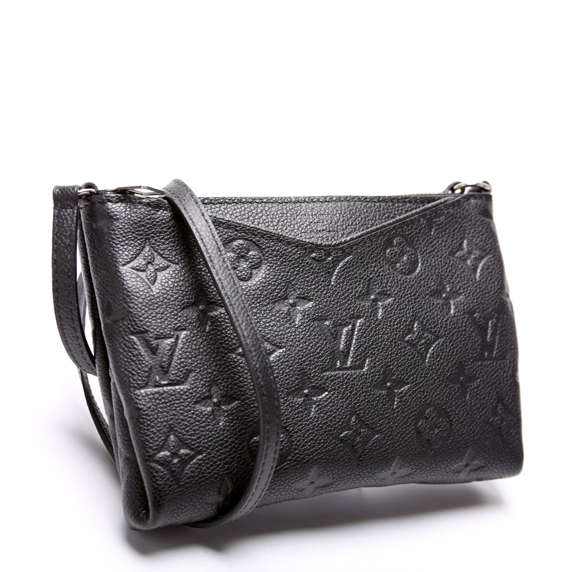 This Louis Vuitton Pallas Clutchis eye catching bag. The exterior is in the classic Louis Vuitton Empreinte leather.