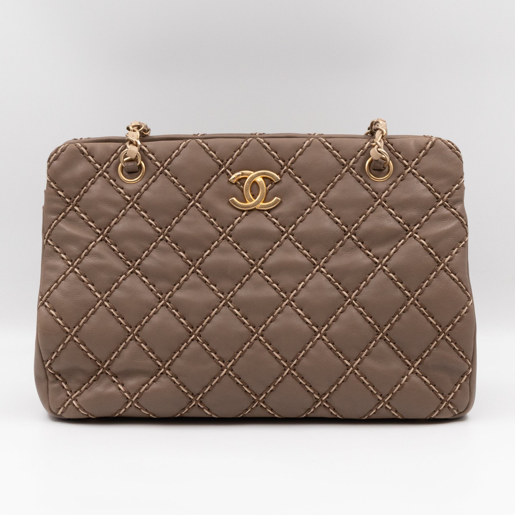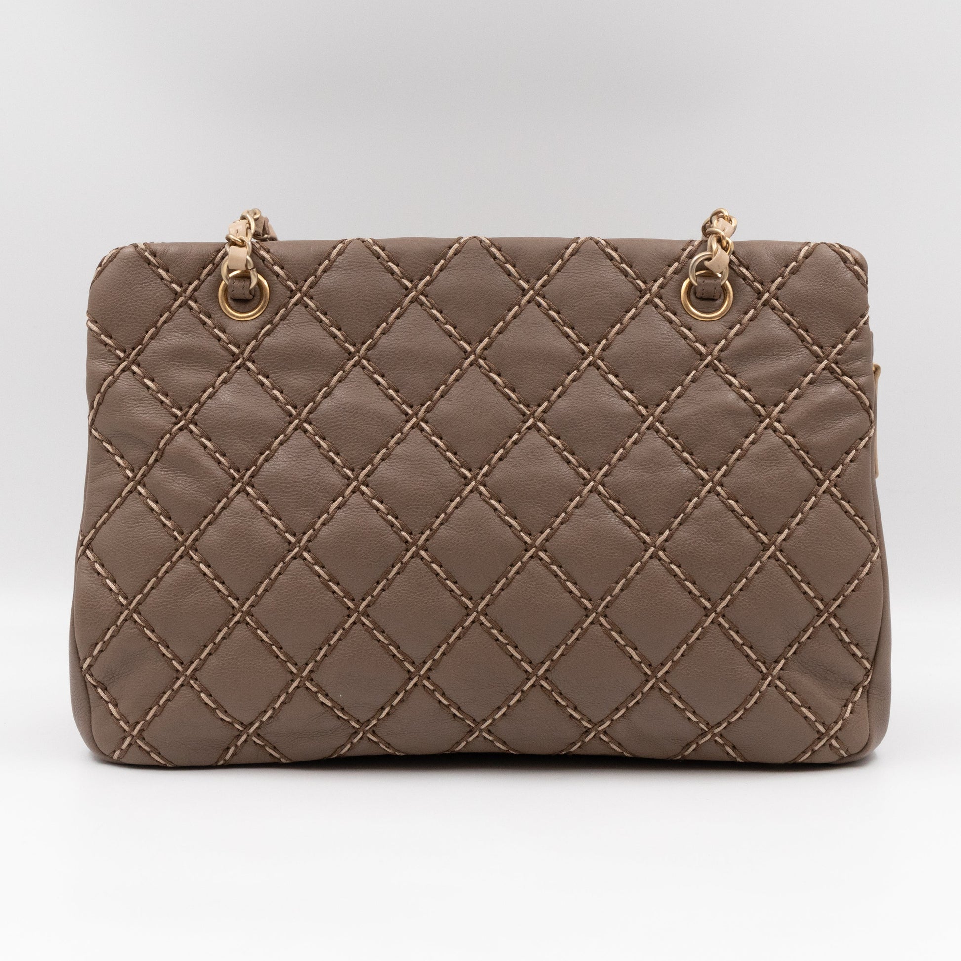 Paris-Dallas Medium Chic Stitch Tote Brown Calfskin Leather