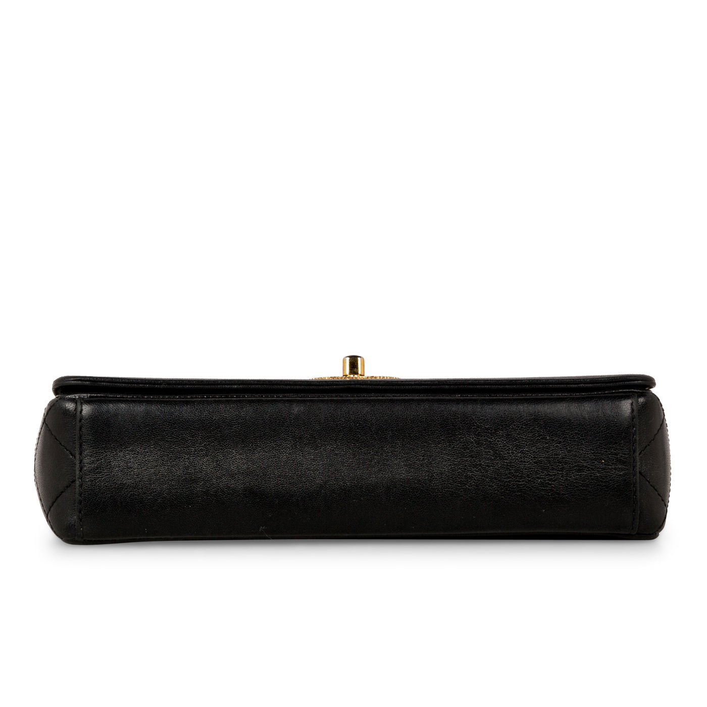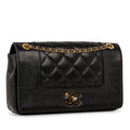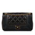 This flap bag from French fashion house Chanel is a rare find, having been shown at their runway collection for Paris in Rome. It features the signature quilted lambskin, contrasted against a smooth leather panel round the edges. In classic black it can be worn throughout the year, and the gold tone hardware is the iconic choice to make to stand out from the crowd.
