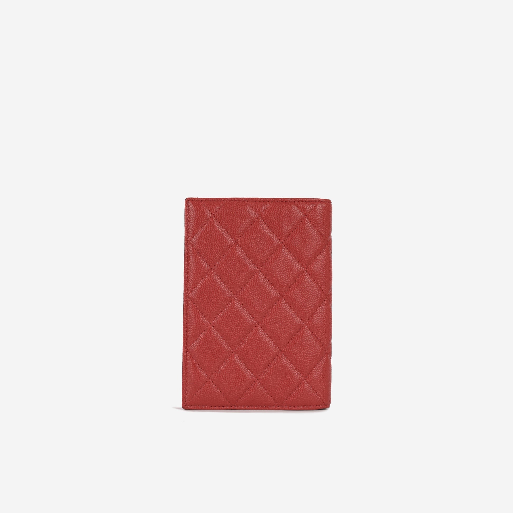 A sleek and sophisticated travel essential. Crafted from luxurious quilted caviar leather in a striking red hue, this compact holder combines elegance with practicality. Its bifold design offers convenient storage for passports and travel documents, while the sumptuously smooth interior ensures protection and style in equal measure. Elevate your travel experience with this iconic accessory from Chanel.