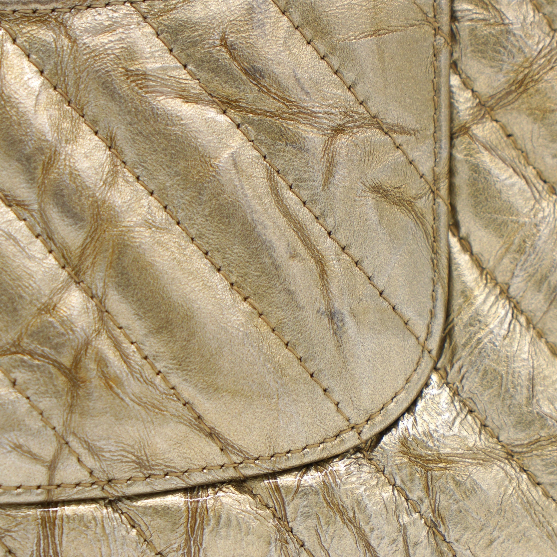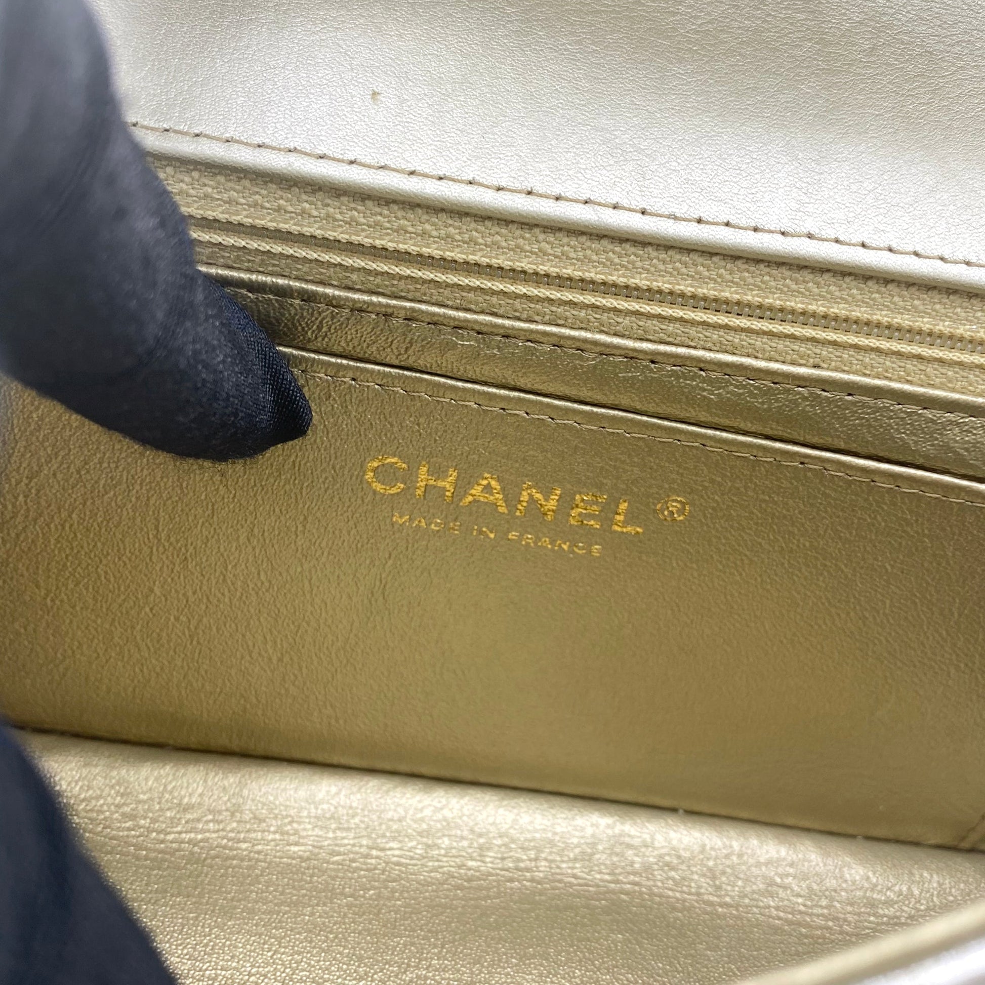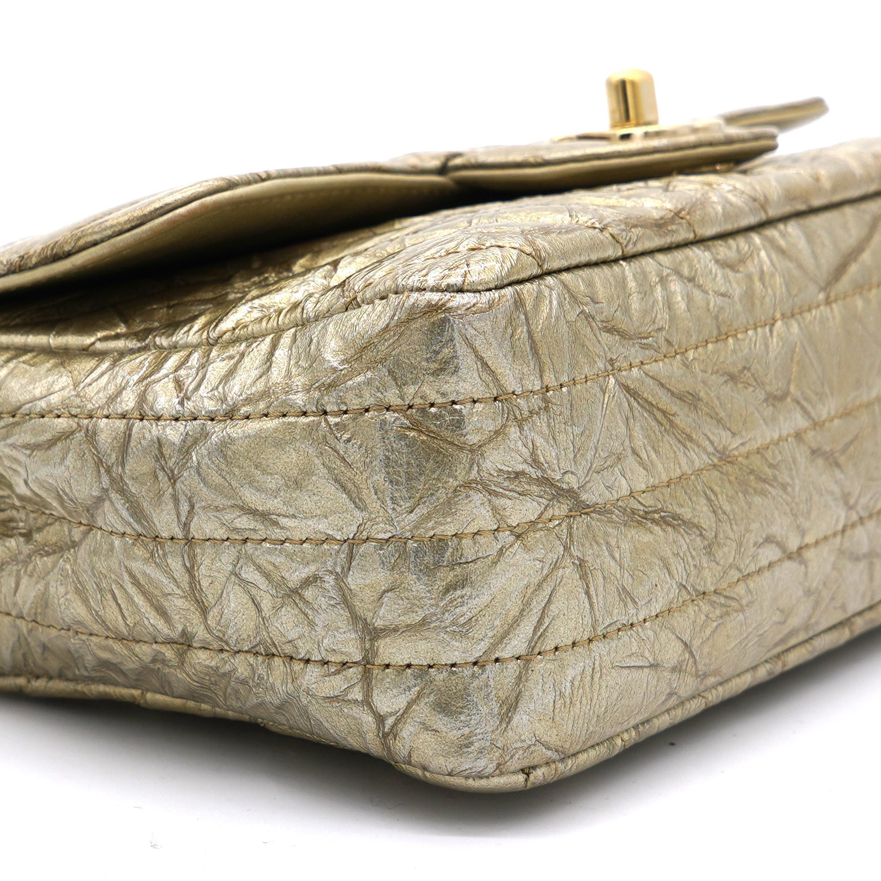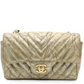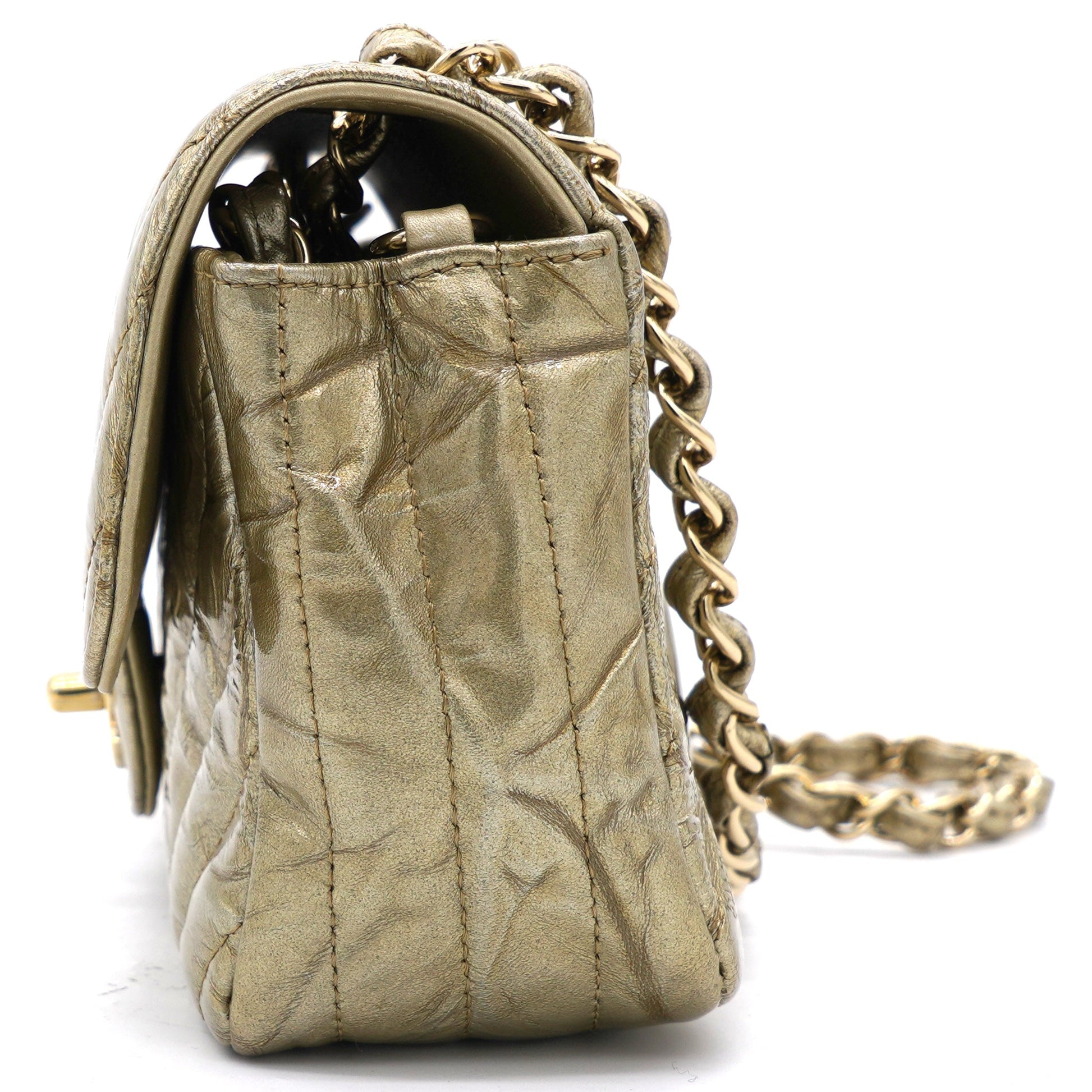 Chanel Patent Metallic Crumpled Calfskin Chevron Quilted Mini Rectangular Flap Gold
