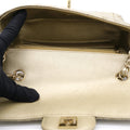 | This classic flap bag is crafted of chevron crumpled patent leather in gold. It features leather threaded polished gold chain link shoulder straps, an exterior rear flat pocket and a front flap with a gold classic CC turn lock. The flap opens to a matching leather interior with a zipper and patch pocket. This is a feminine shoulder bag for all occasions with the chic style and luxury, from Chanel! | Material: Patent Calfskin Leather Lining: Leather Hardware: Gold Color Finish Metal Accessories:Dust Bag; Card Serial Number: 25765381 Production Year: 2018 | ![]() |