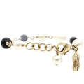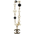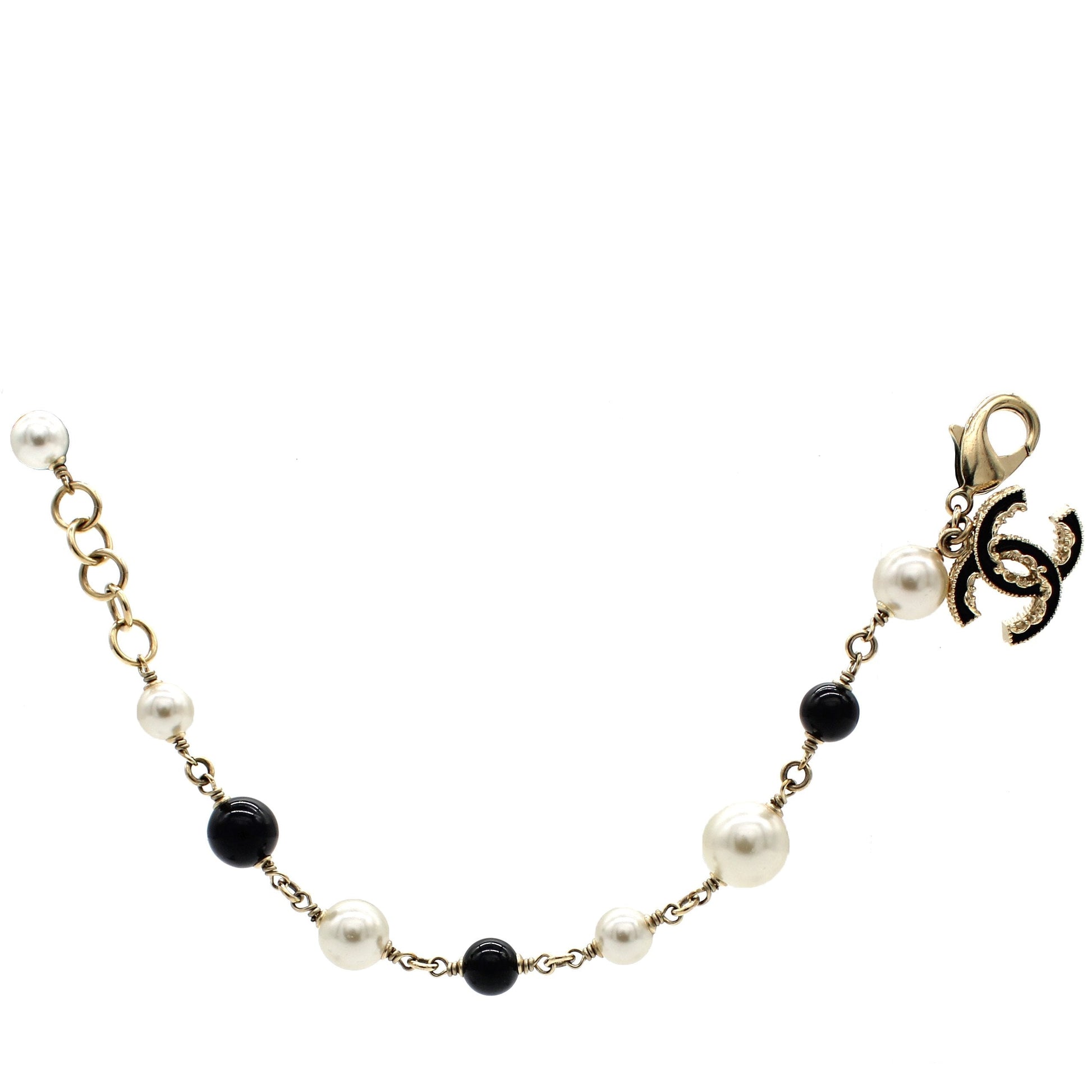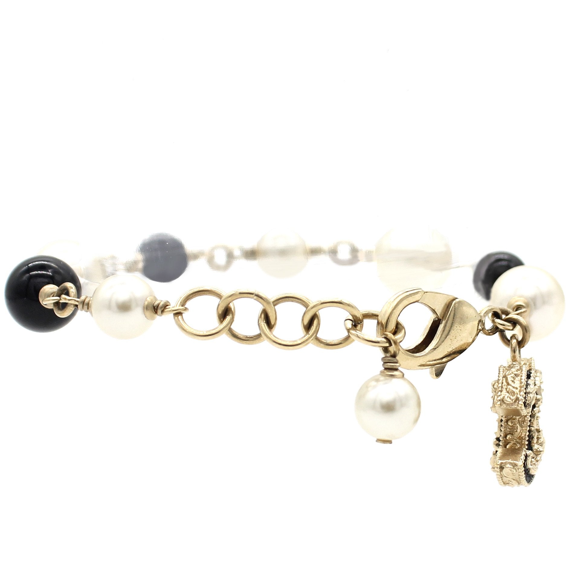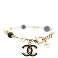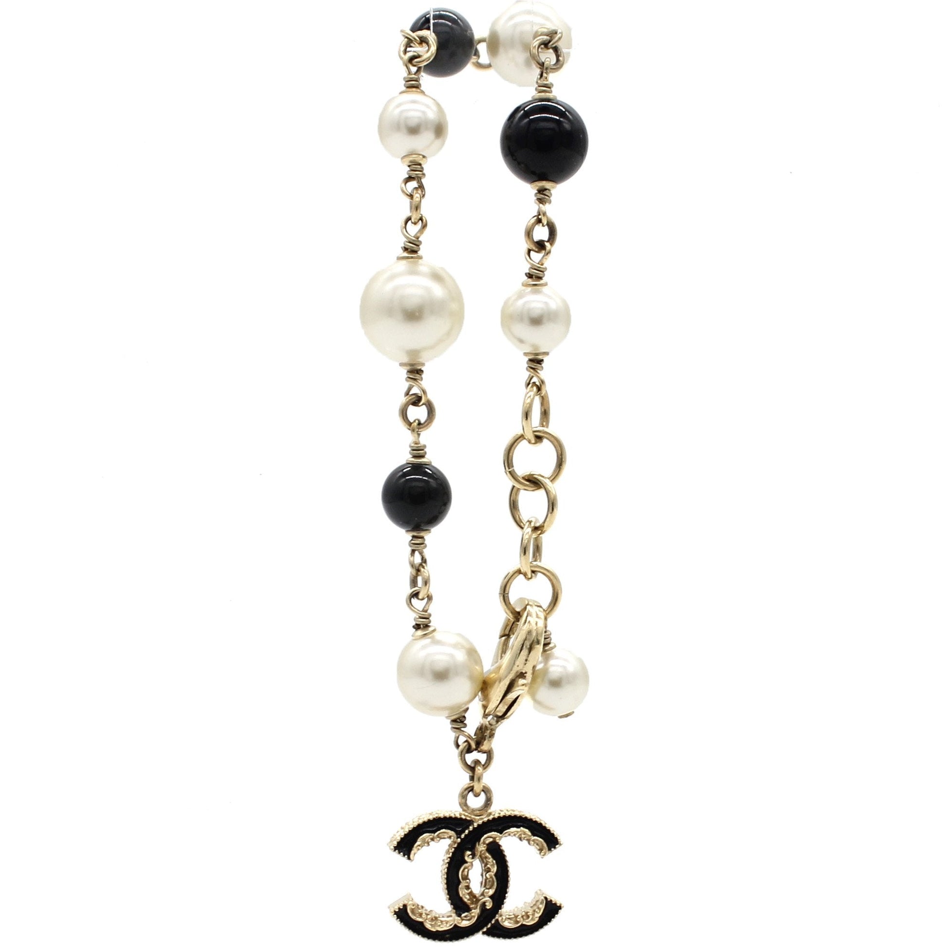 | This stunning bracelet is crafted of various sized black glass beads and pearls and features a coarsely textured Chanel CC pendant. | Material: Faux Pearl; Glass Beads; Metal Accessories: Dust Bag Serial Number: B14 V Bought Year: 2014 | ![]() |