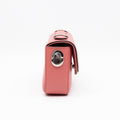 This is Petite GG mini chain shoulder bag from Gucci. Made with pink leather and silver-tone hardware. Comes with an adjustable shoulder strap, allowing it to be styled as a crossbody, In front is the GG emblem and matching inside lining. The long strap and small size makes it perfect for evening parties or daily use. Retail price €1980.