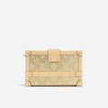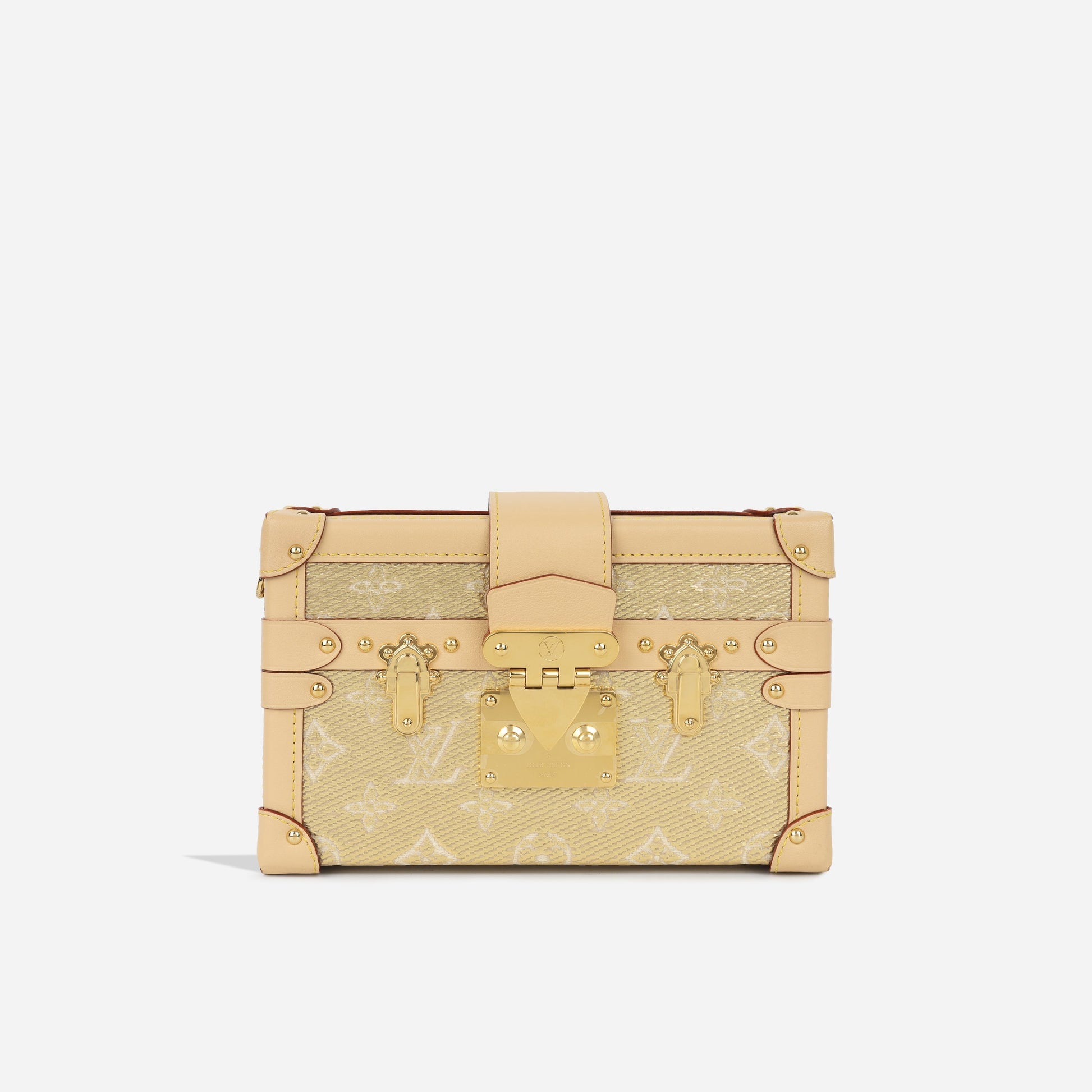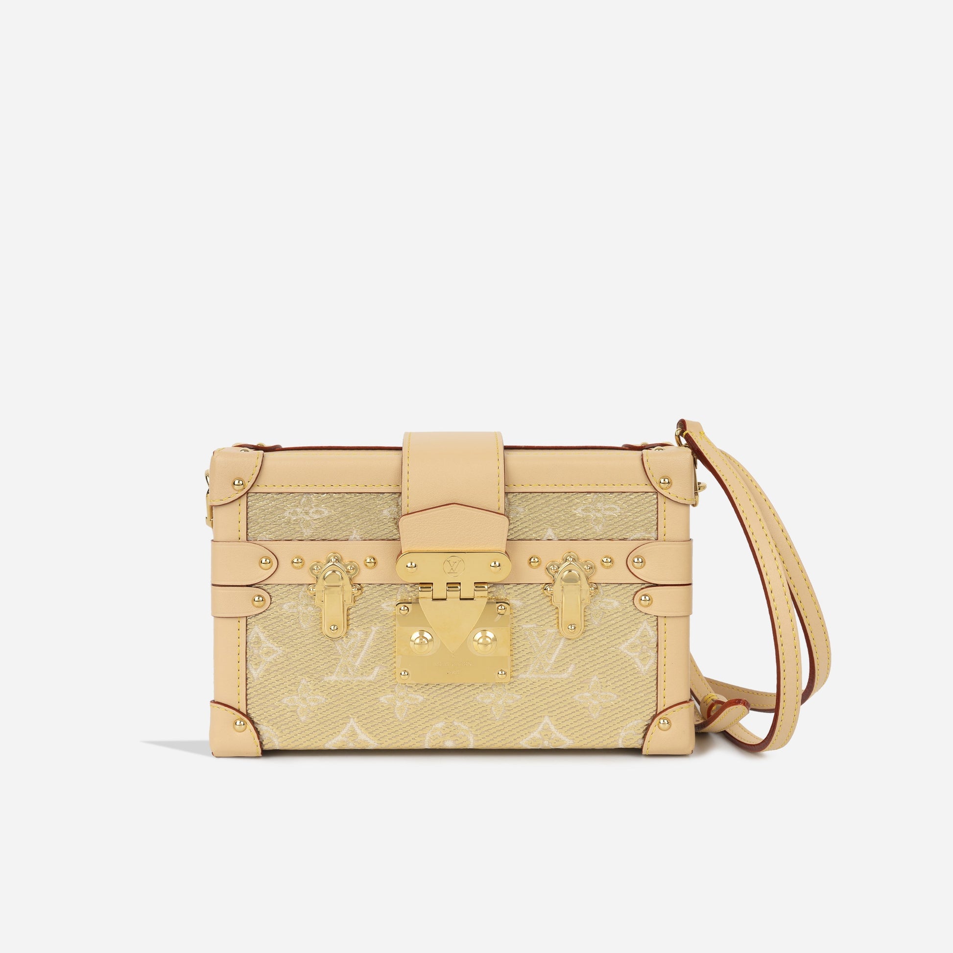 Versatile in its design, the Petite Malle can be carried as a chic clutch for elegant evenings or adorned with its removable, adjustable leather strap for effortless daytime glamour. Its compact yet functional size makes it perfect for carrying your essentials with ease while adding a touch of refinement to any ensemble.