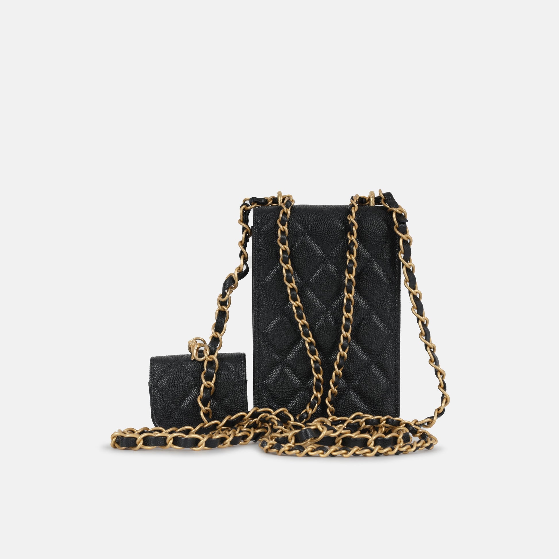 The Chanel Phone and AirPods Case combines luxury and practicality in one chic accessory. Crafted with Chanel’s signature attention to detail, this compact case offers a sleek and stylish solution for carrying your phone and AirPods together. Featuring elegant materials and classic design elements, it’s the perfect blend of functionality and fashion. Ideal for on-the-go convenience, this case ensures your essentials are always at hand while adding a sophisticated touch to your everyday look.