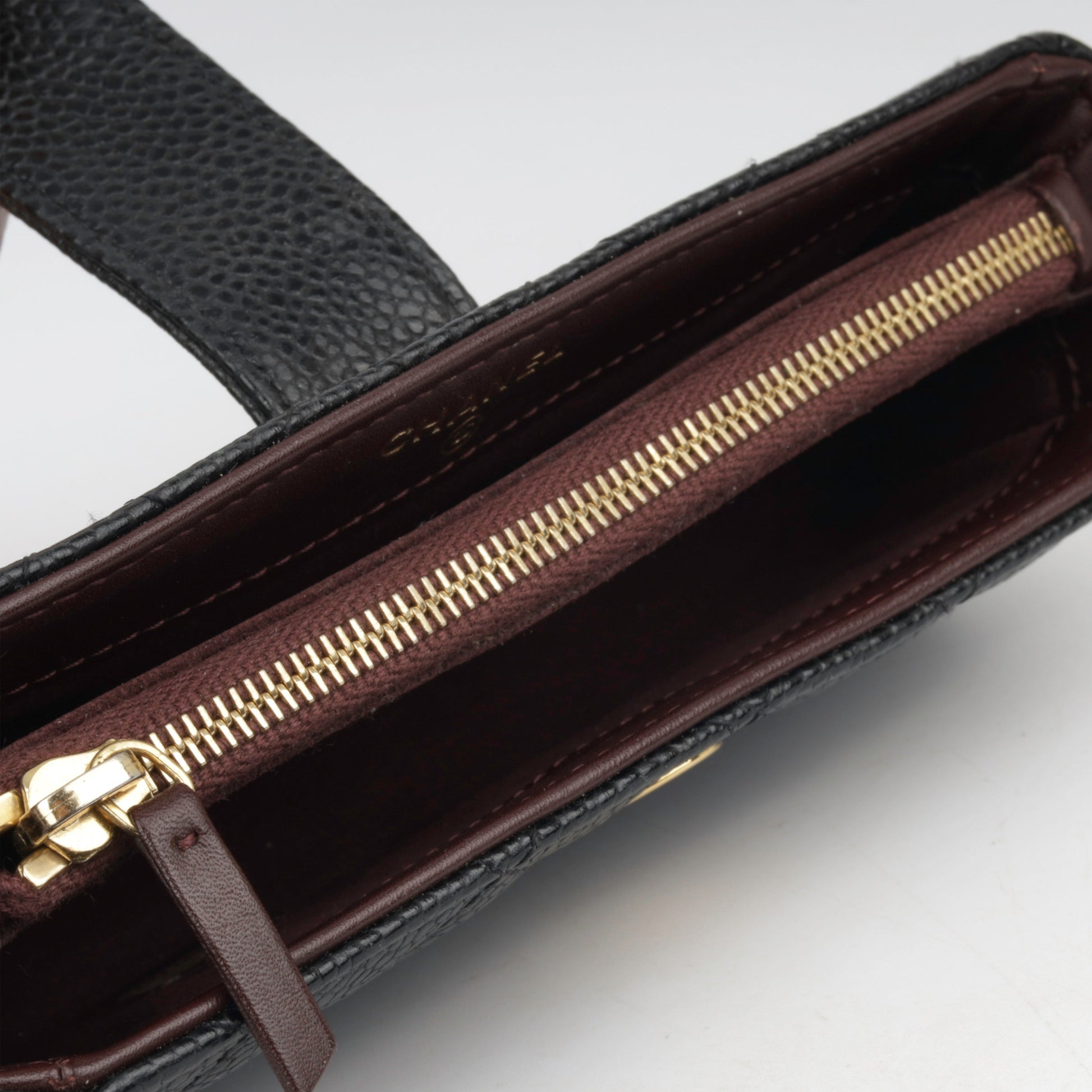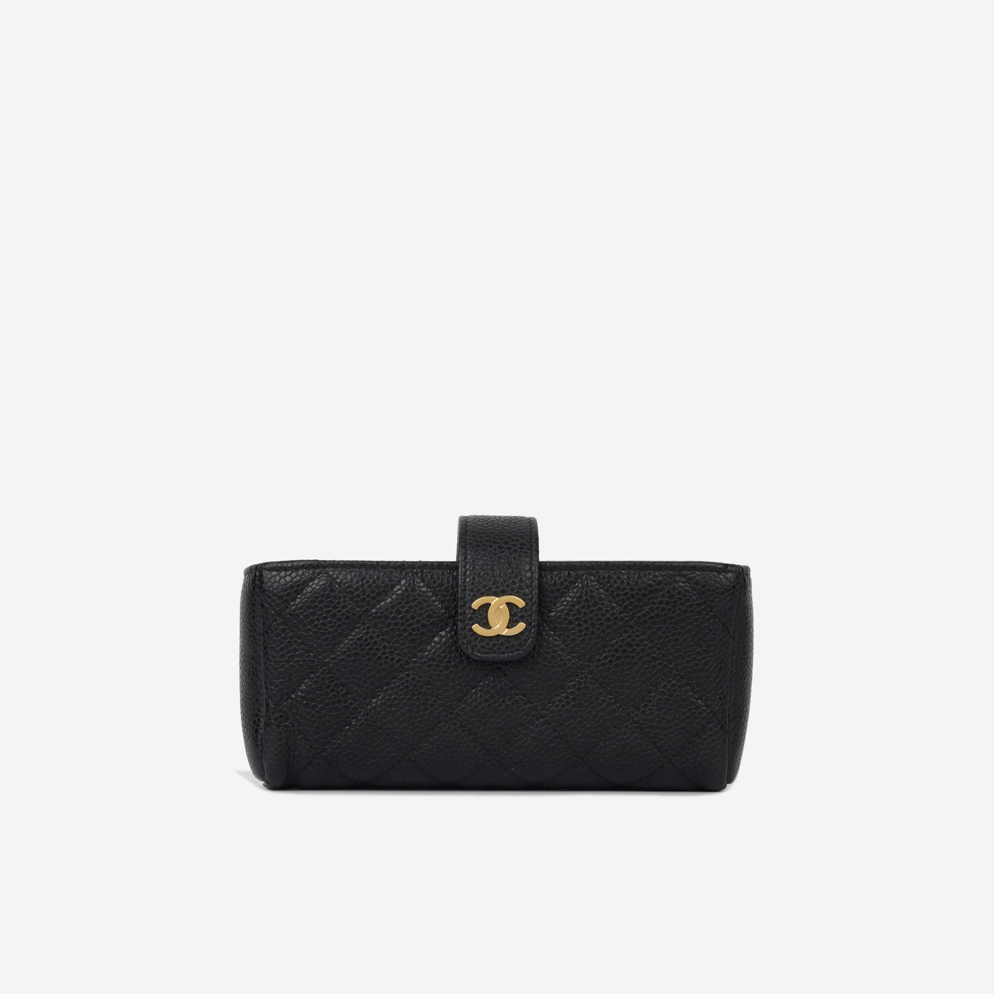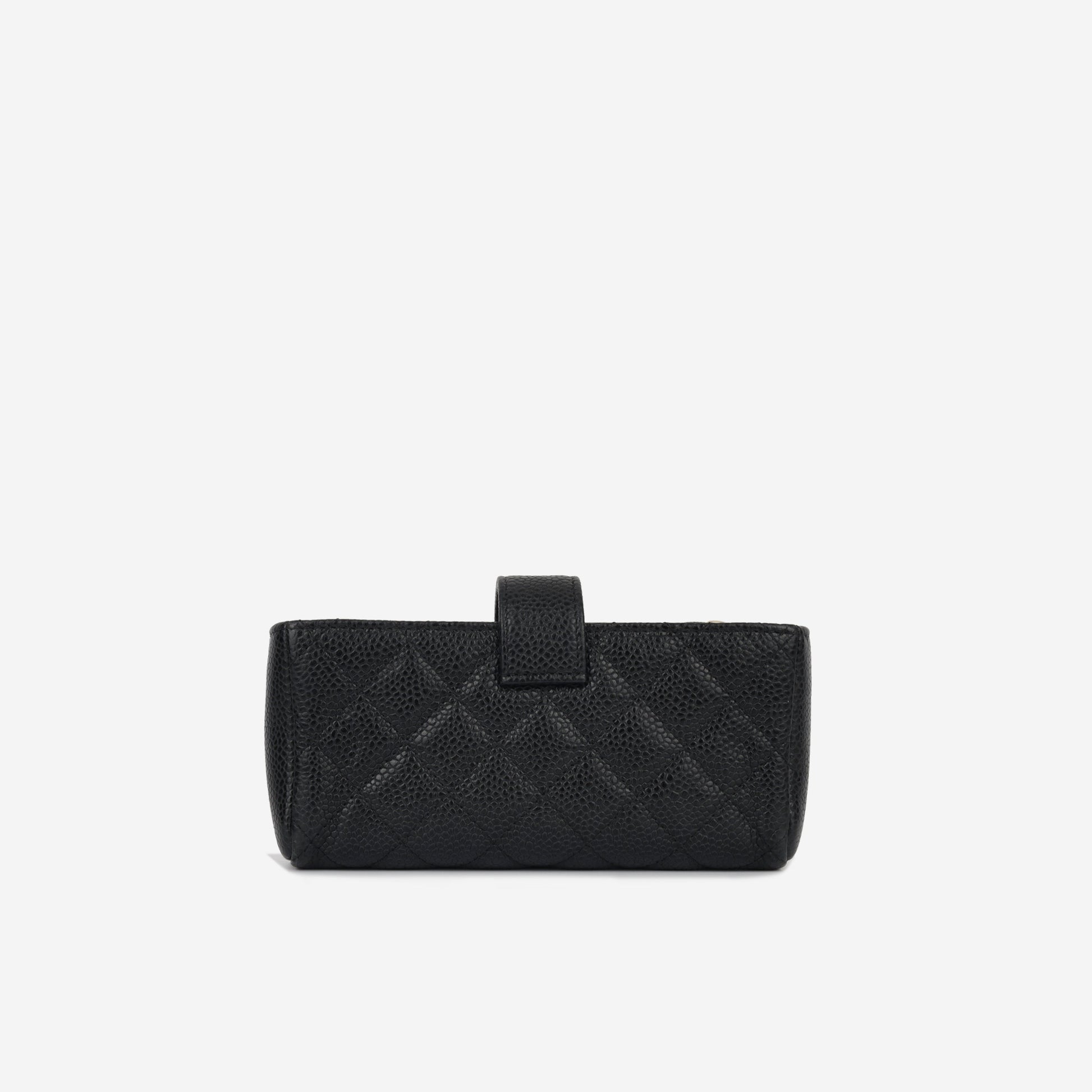 Carry your phone in style with this Chanel Classic Flap phone holder pouch. Crafted from black caviar leather and gold-tone hardware, this phone pouch comprises of two compartments with a zipper pocket in between.