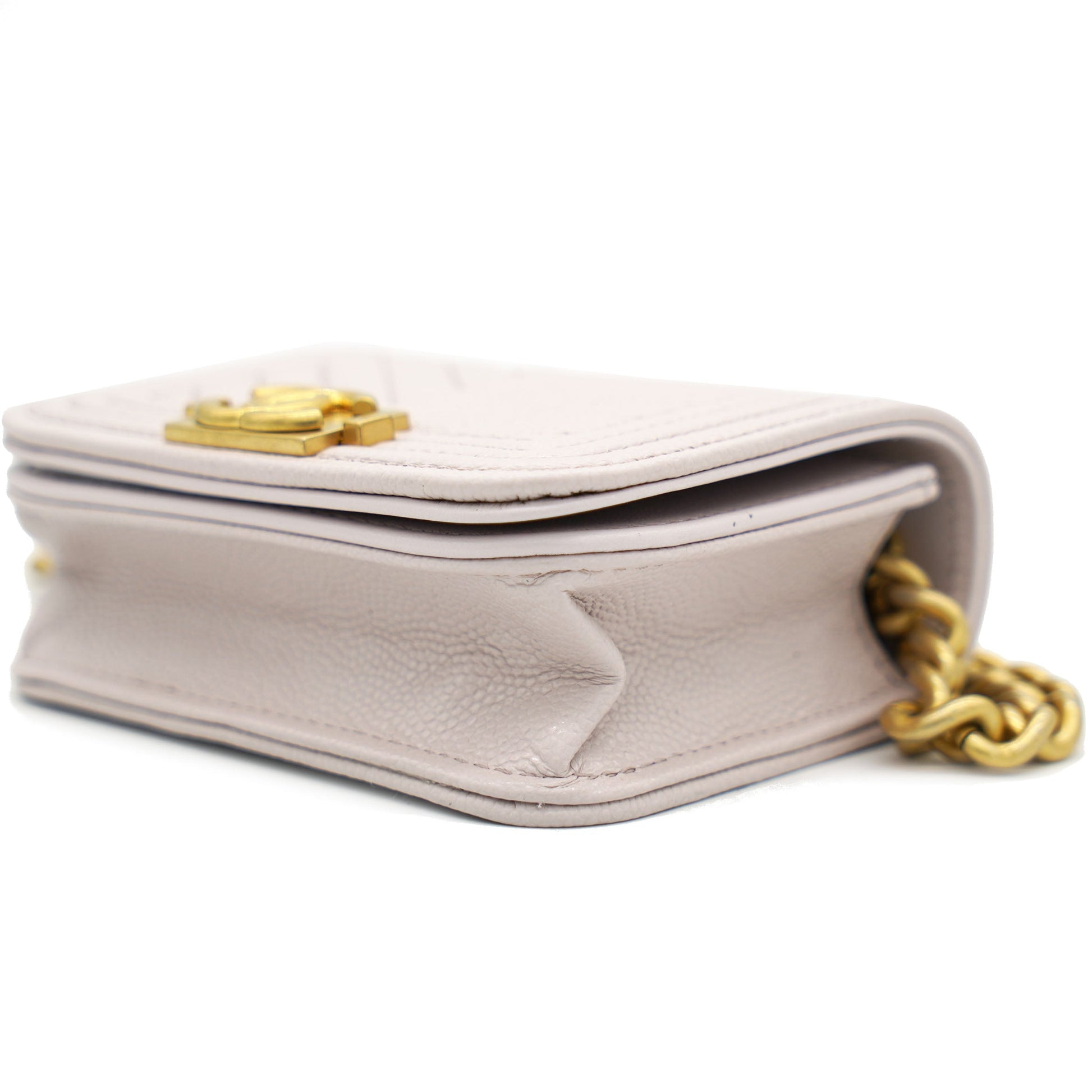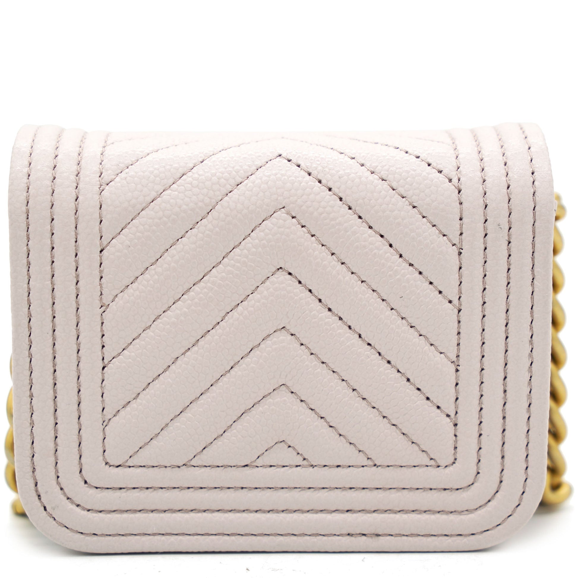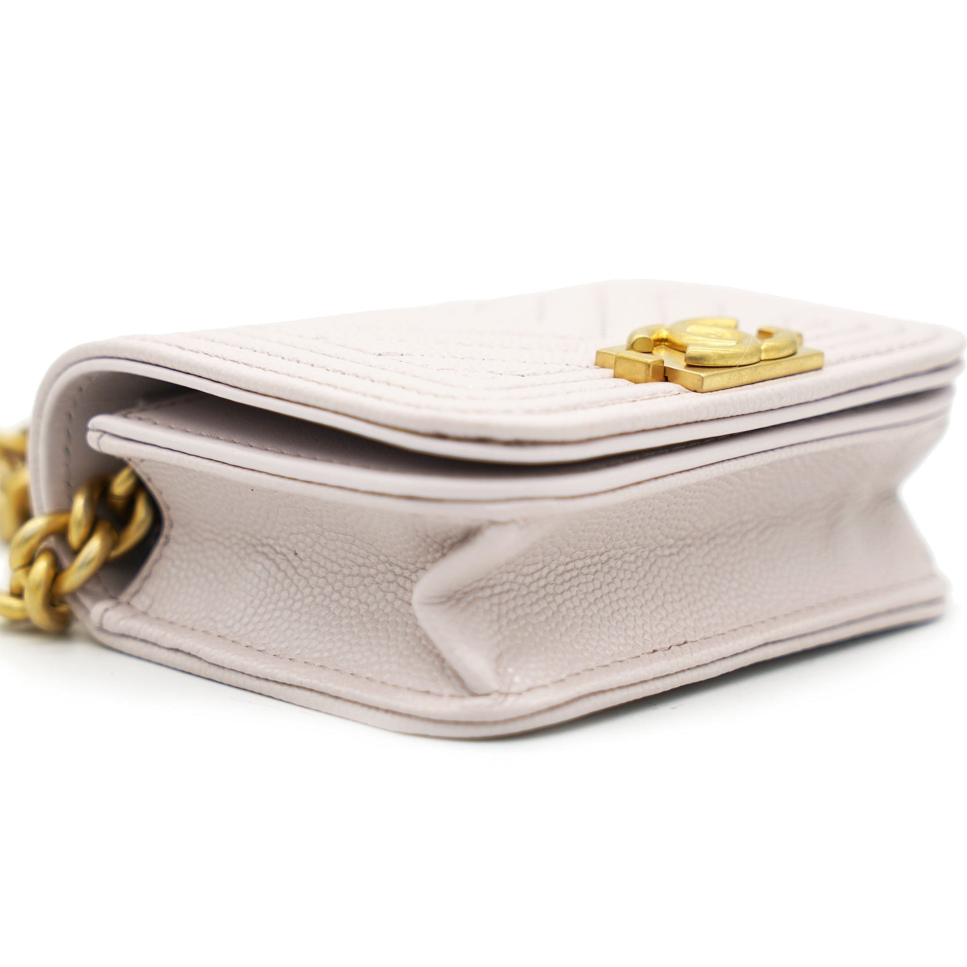Chanel Pink Caviar Leather Boy Card Holder with Chain
