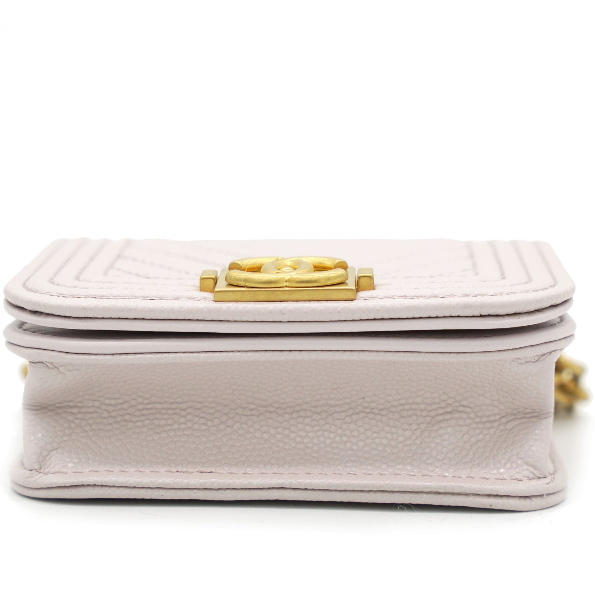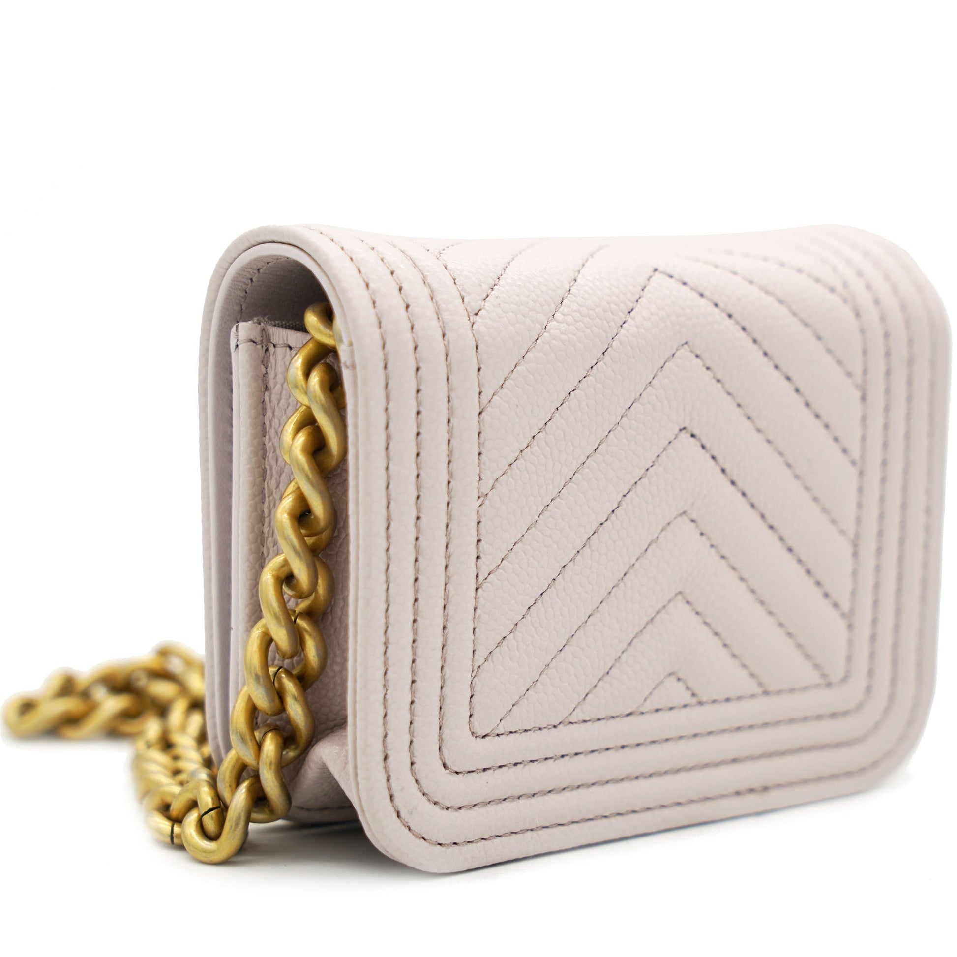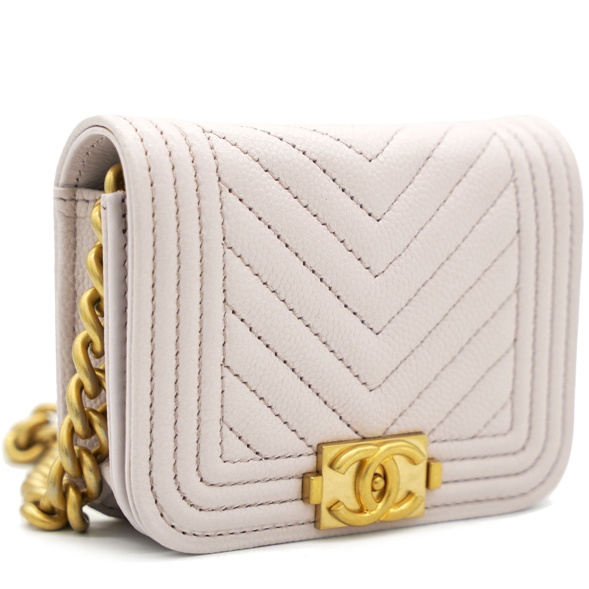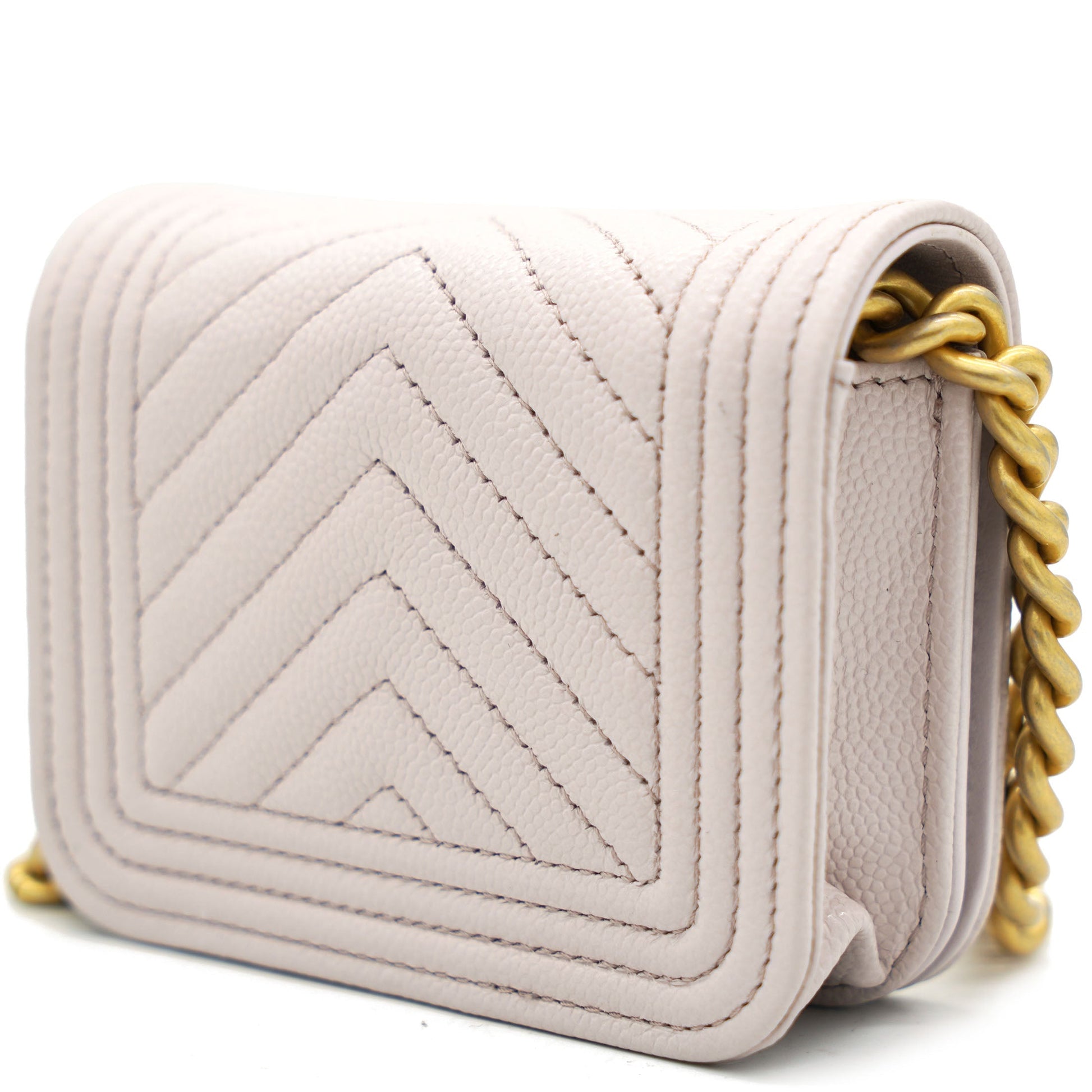 Chanel Pink Caviar Leather Boy Card Holder with Chain
