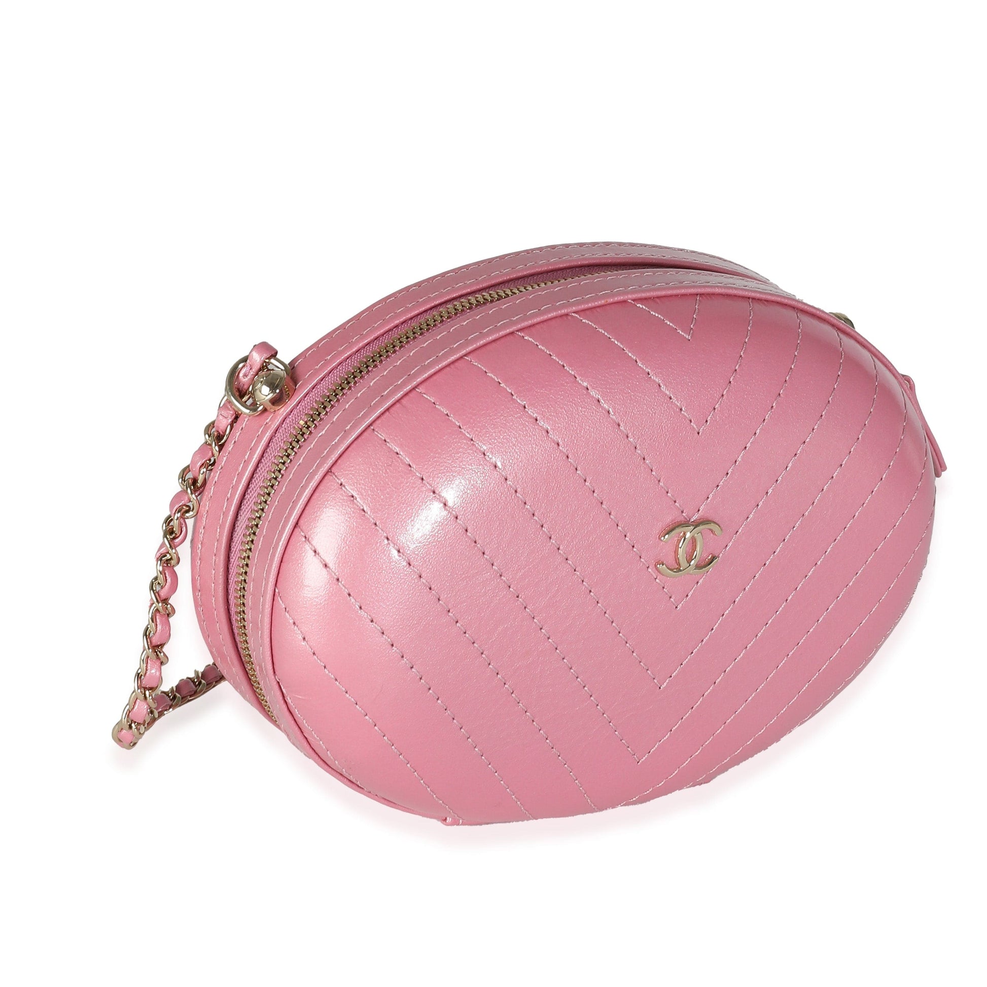 Chanel Pink Chevron Calfskin Evening Clutch With Chain
