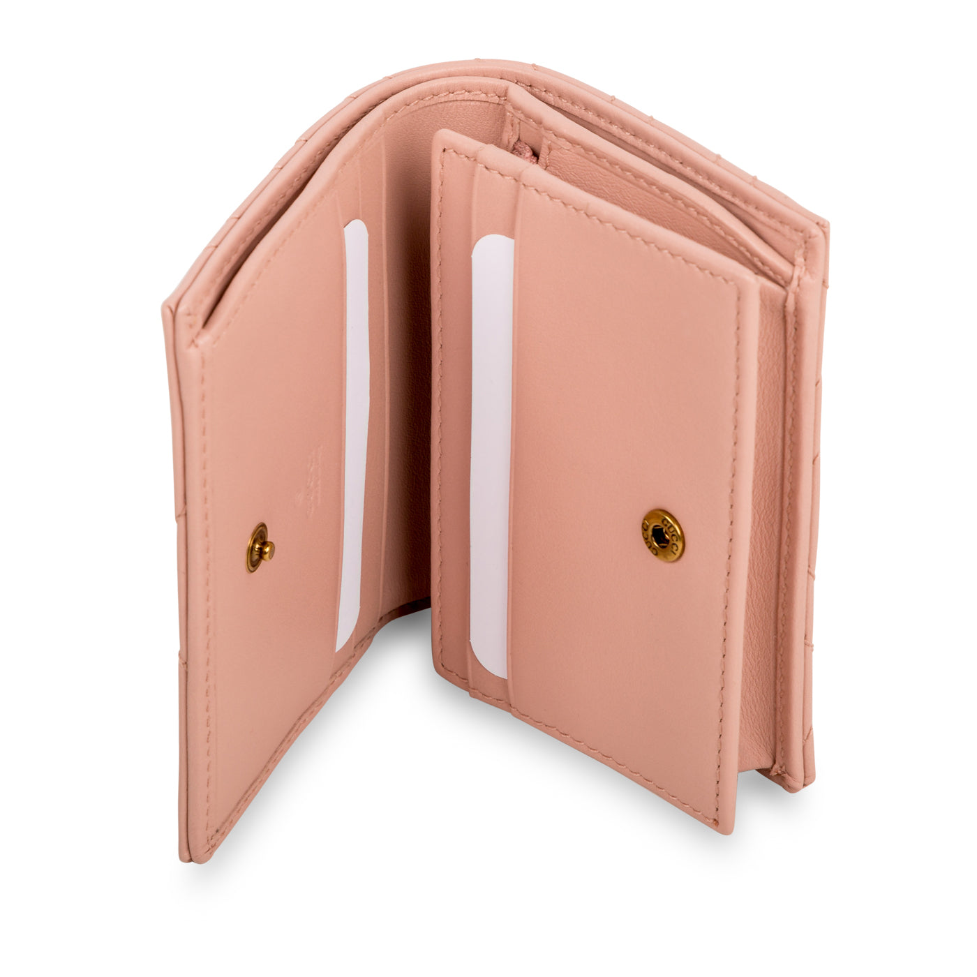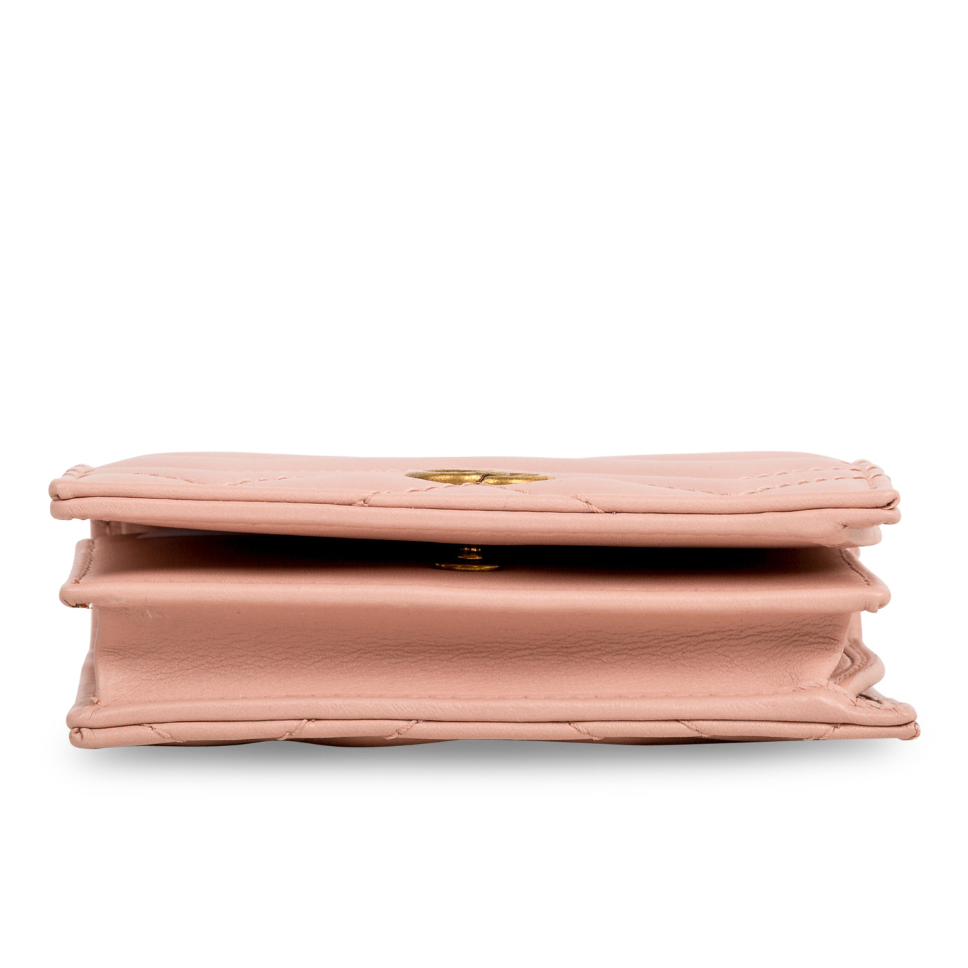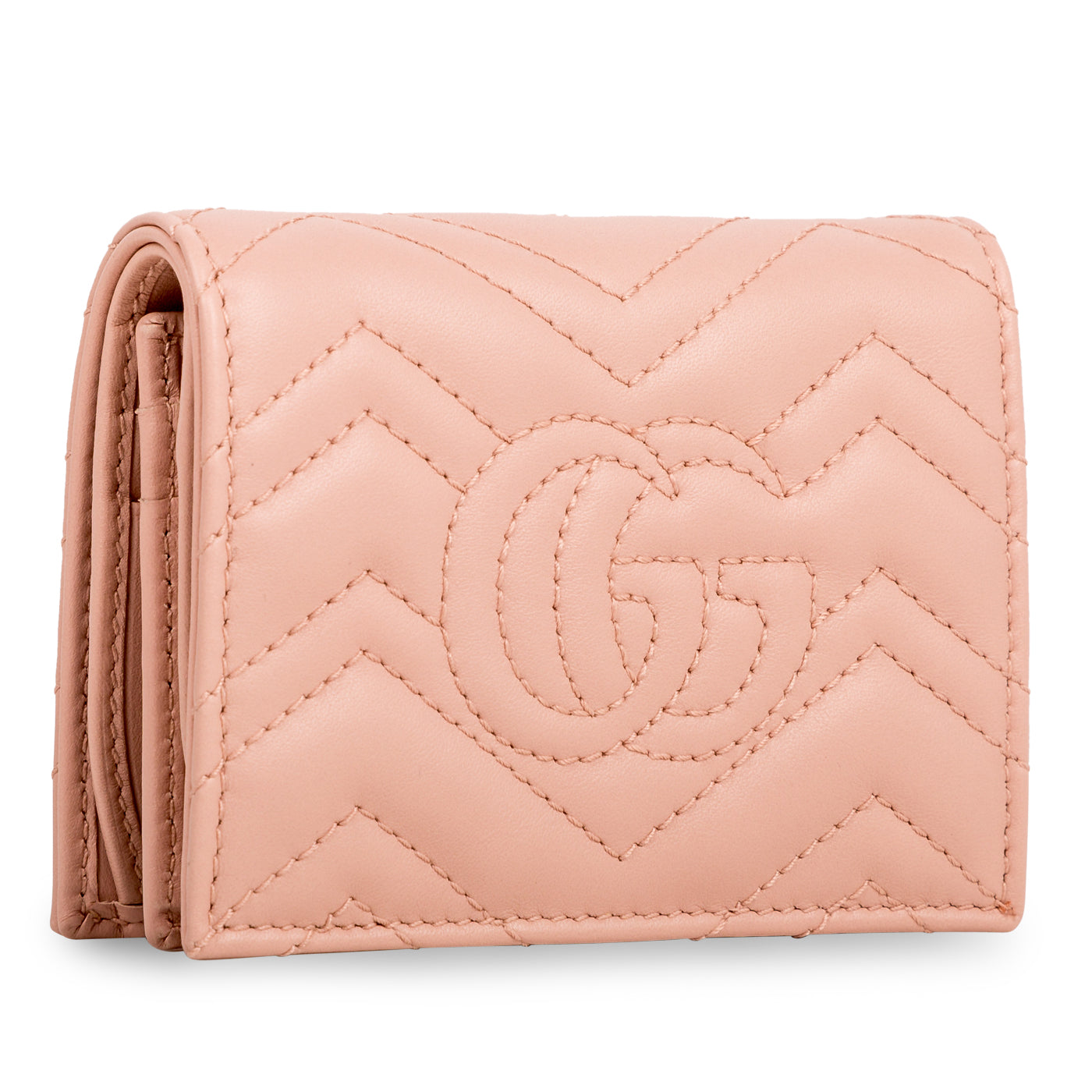 Why are wallets always so big? Why are cardholder's the perfect size but also so inconvenient for cash and change? Why can we never find the perfect in between? Just kidding, we found one and she's right here. This itsy, bitsy, teeny, tiny wallet from Gucci features everything you've been looking for. Small but mighty, you can easily fit all your cards, bills and yes, even loose change inside this little gem - and her gorgeous appearance is just the cherry on top. Crafted from smooth blush pink leather and complimented by a gold-tone GG logo, this chic, stylish and practical little baby is just a piece that everyone needs in their life. The perfect balance between fashion and function, this GG wallet is a true must-have for any woman with a love for luxury and all-things glam.