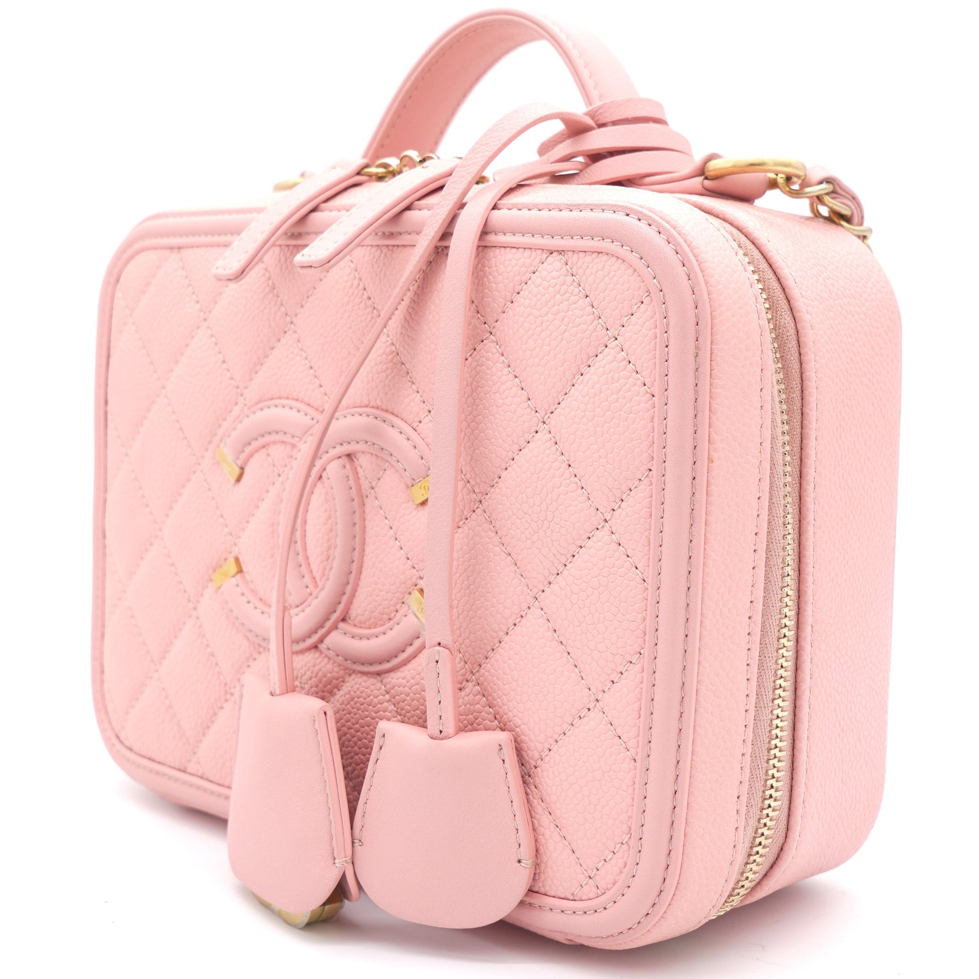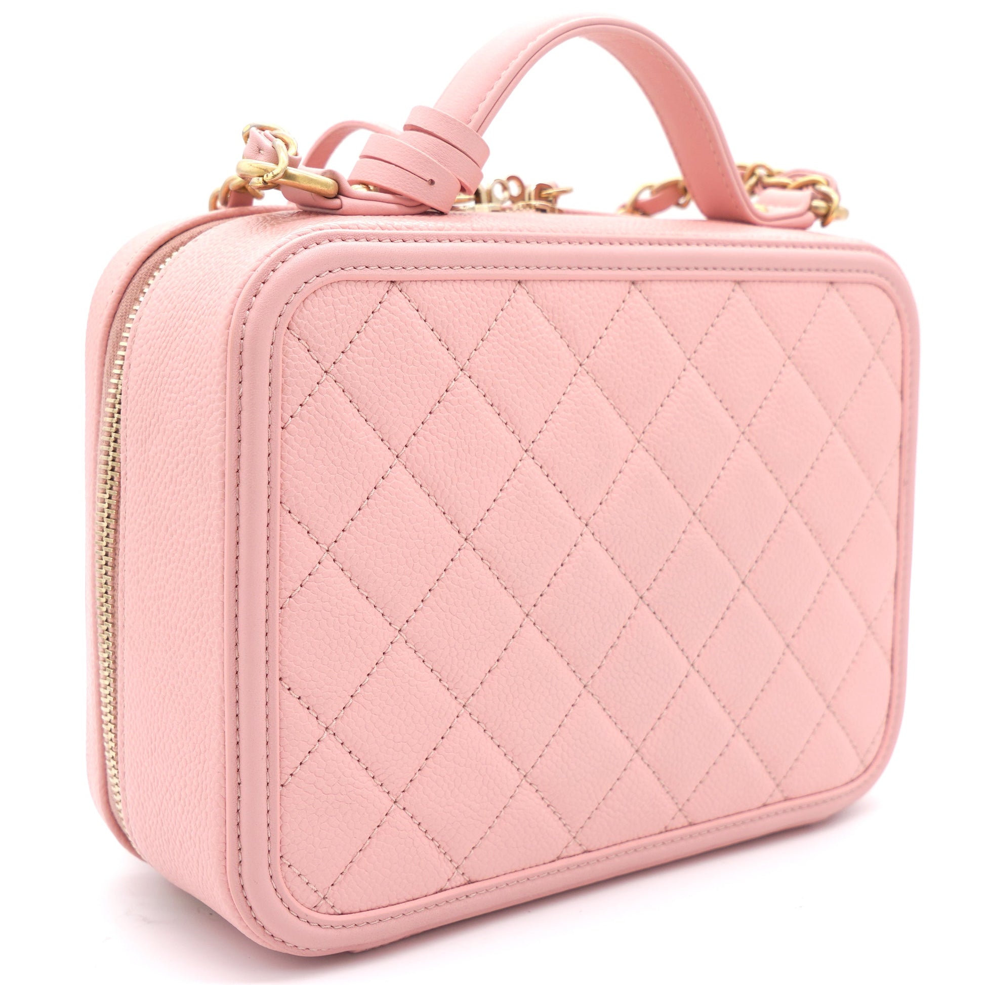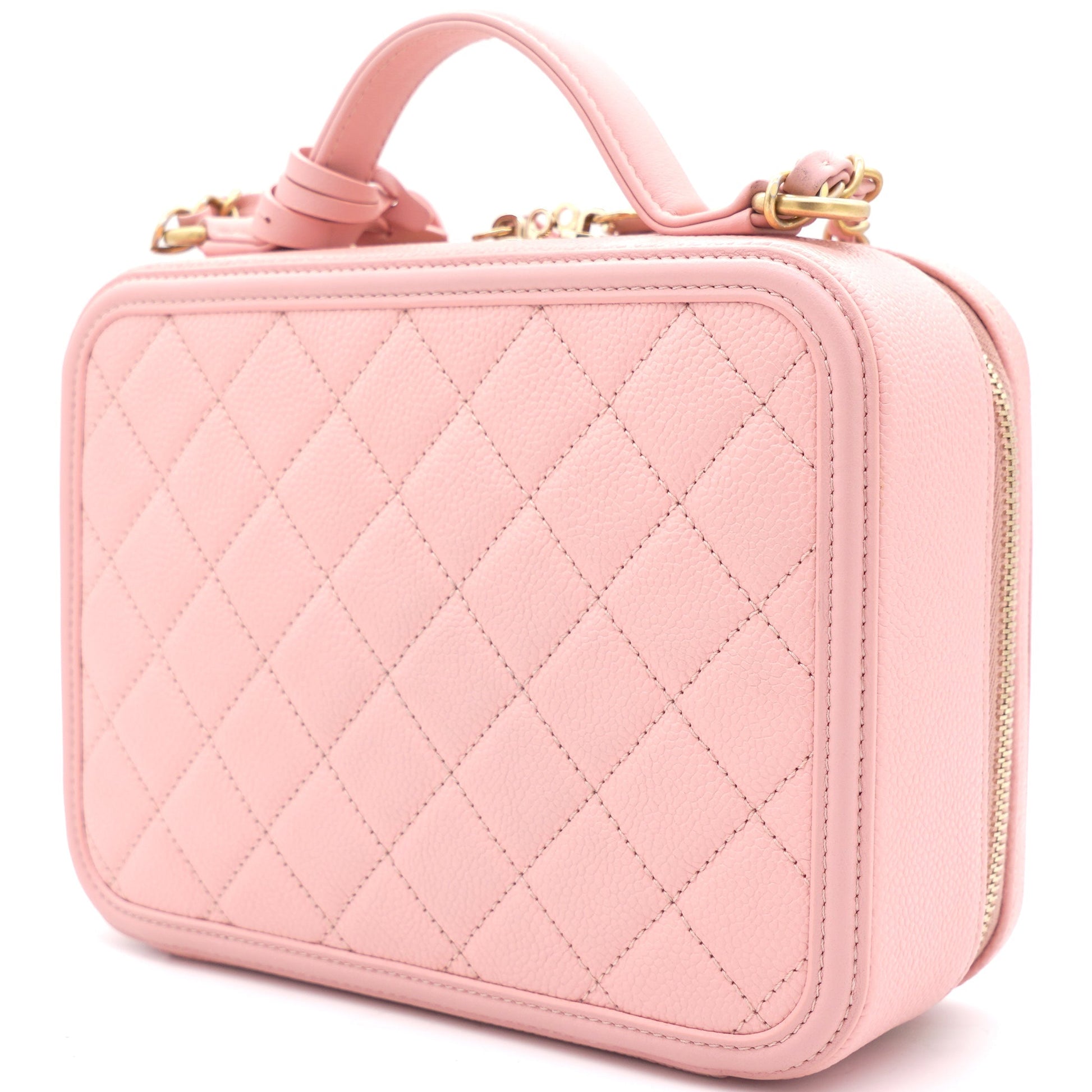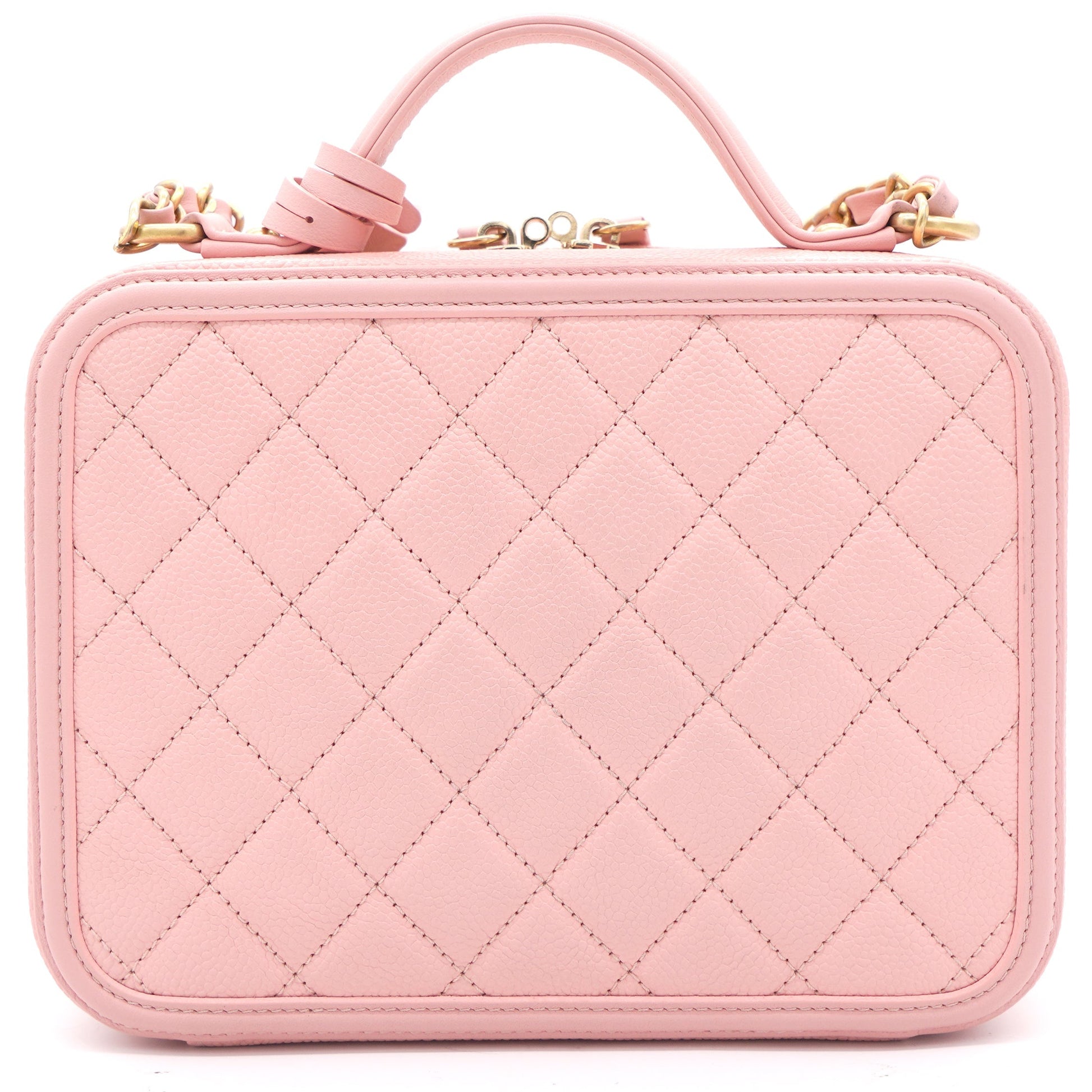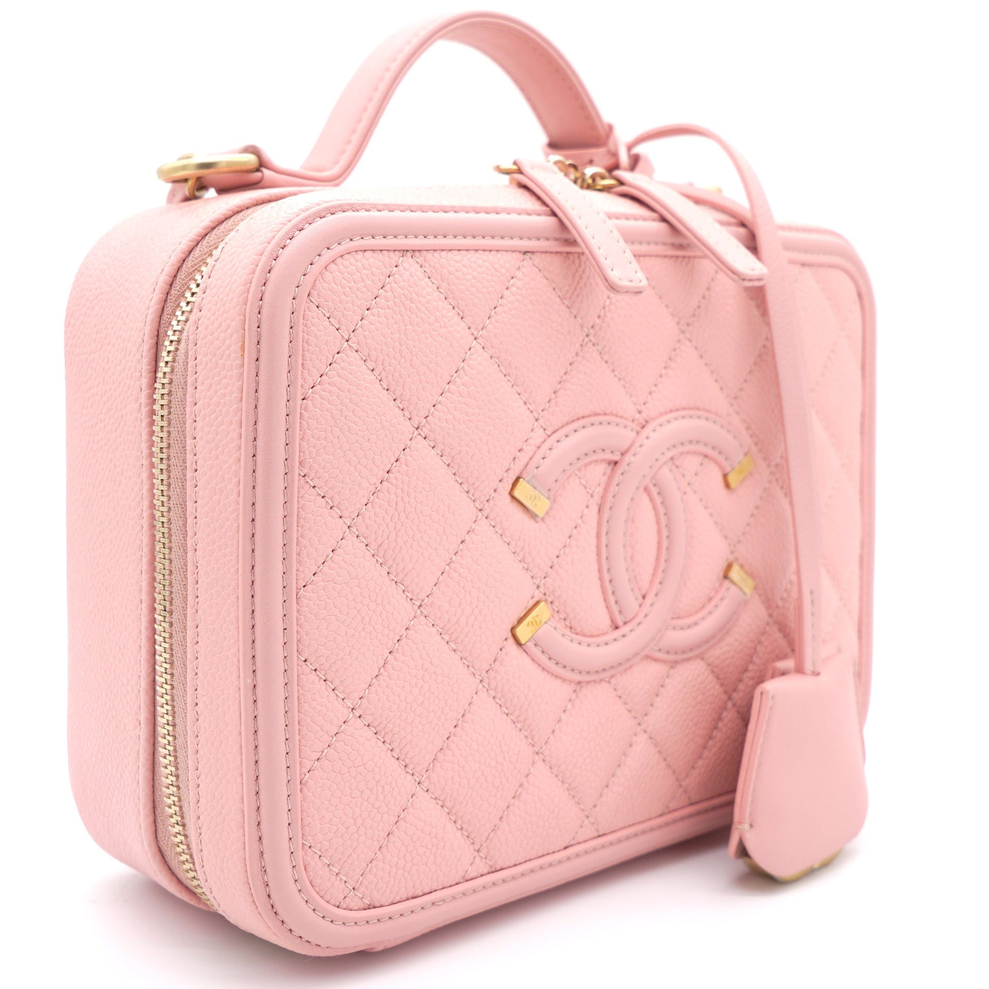 Chanel Pink Quilted Caviar Leather Medium CC Filigree Vanity Case Bag