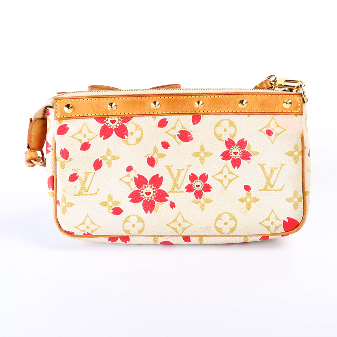 This Louis Vuitton Pochette Accessoriesis eye catching bag. The exterior is in the classic Louis Vuitton Monogram coated canvas.