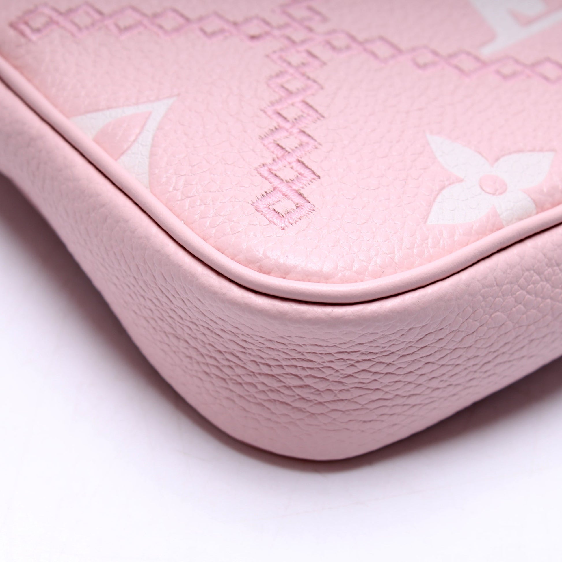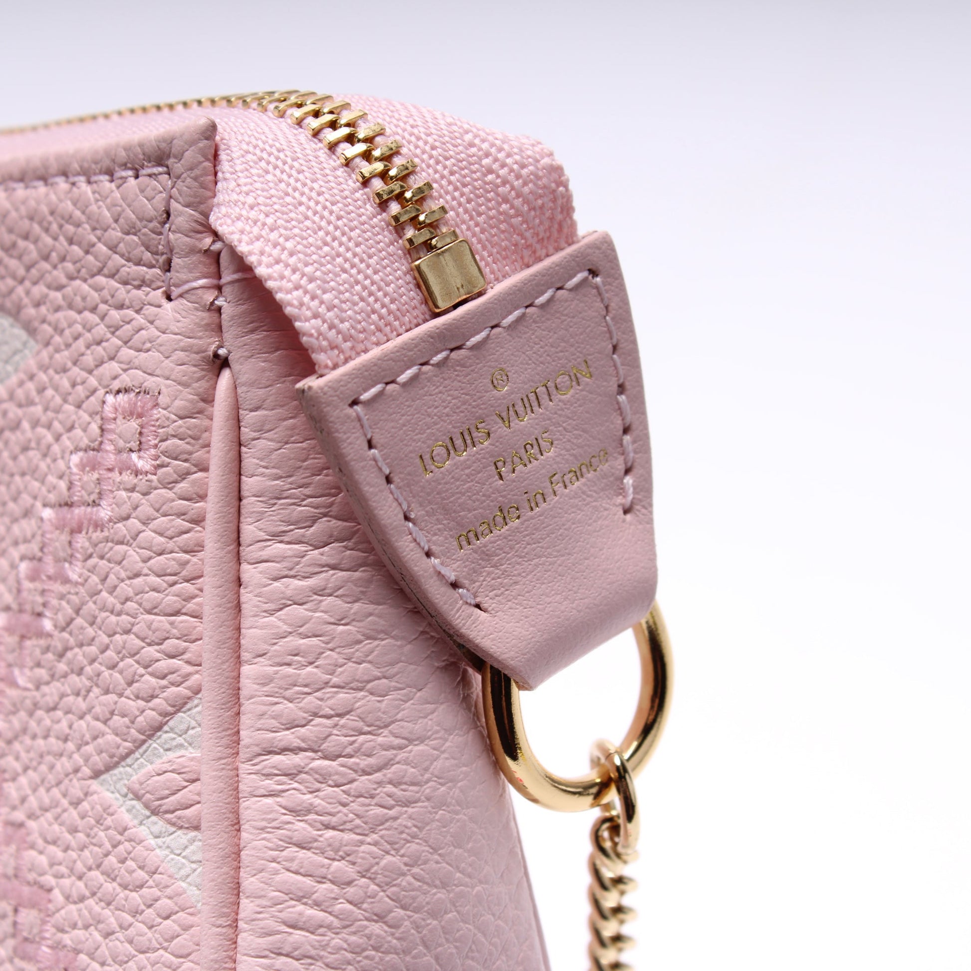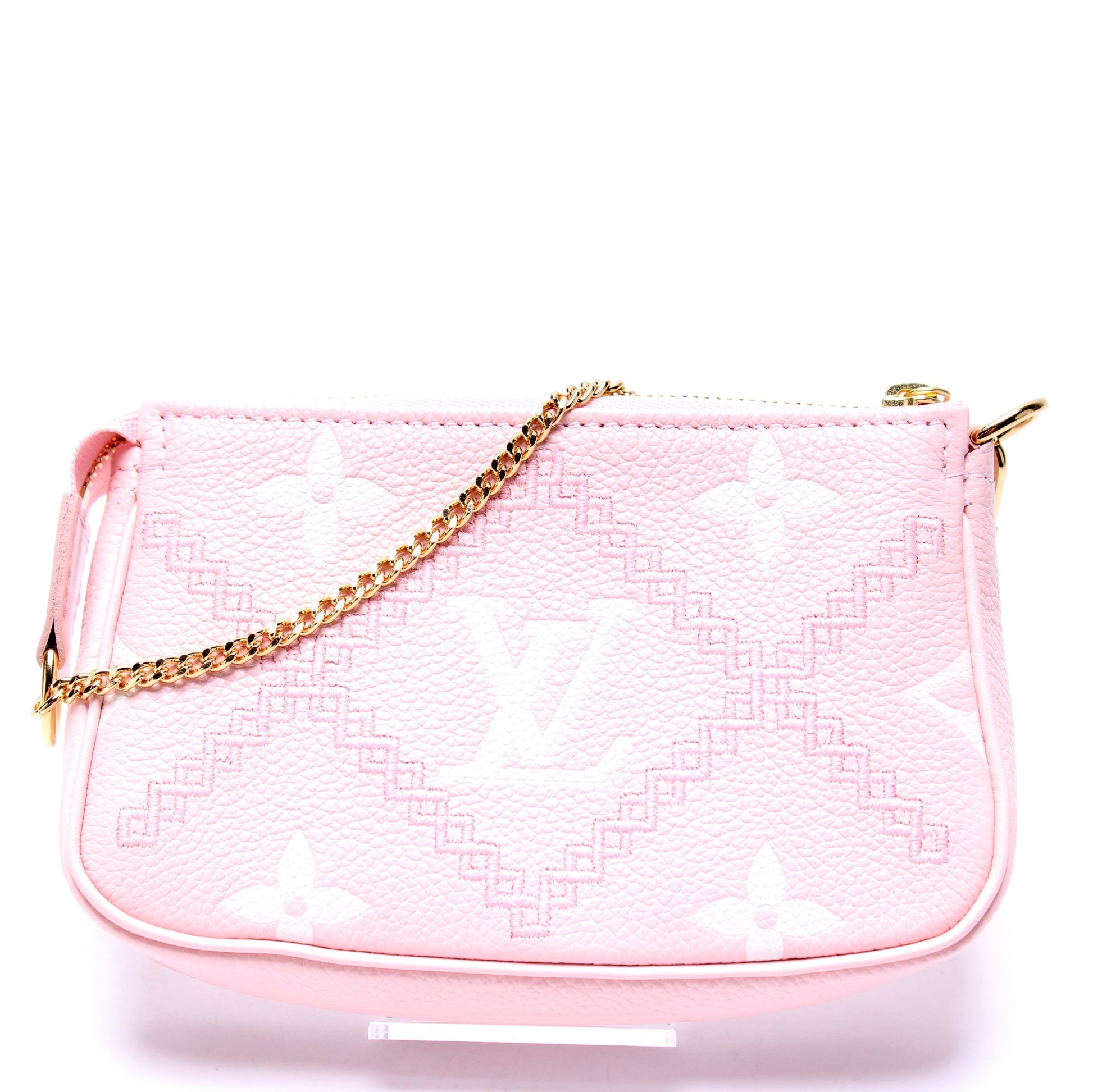 This Louis Vuitton Pochette Accessories Mini Broderies Empreinteis eye catching bag.