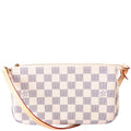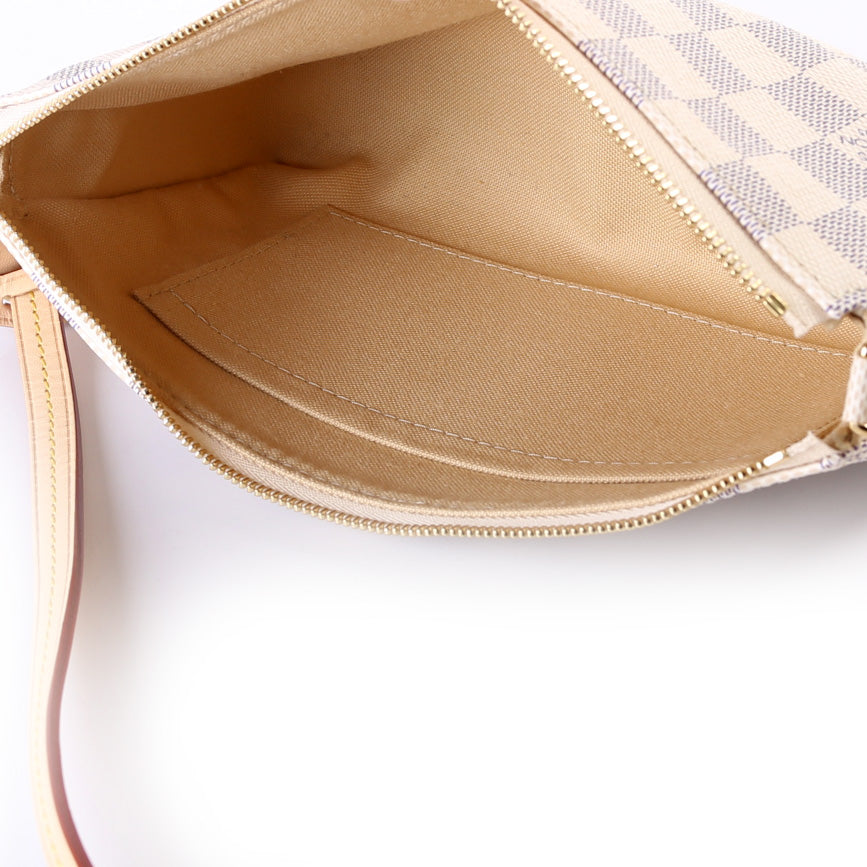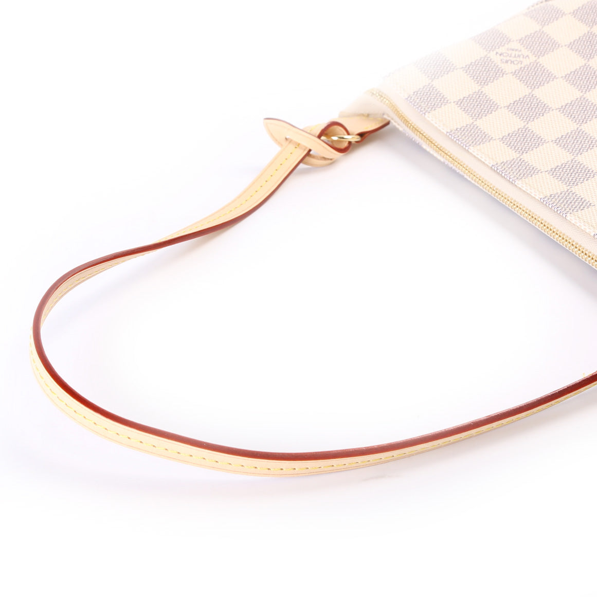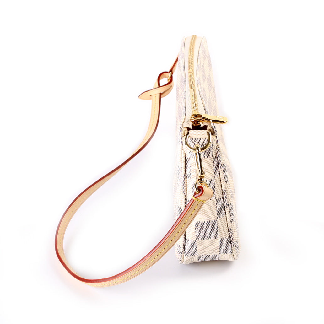 This Louis Vuitton Pochette Accessoriesis eye catching bag. The exterior is in the classic Damier Azur coated canvas.