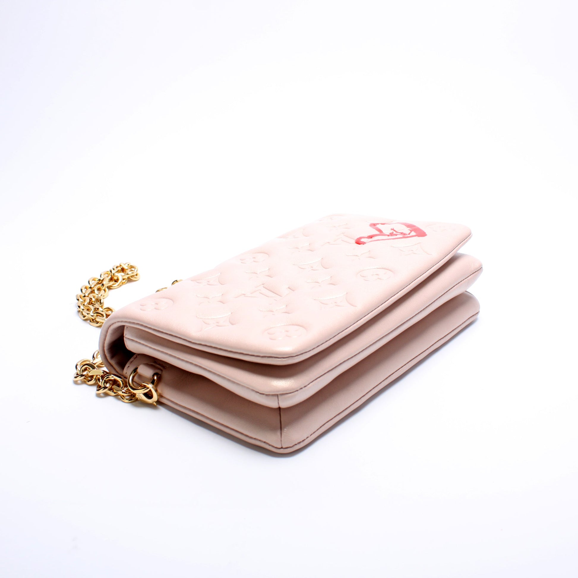 This Louis Vuitton Pochette Coussin Fall in Loveis eye catching bag.