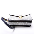 This Louis Vuitton Pochette Metis East West Monoglamis eye catching bag.