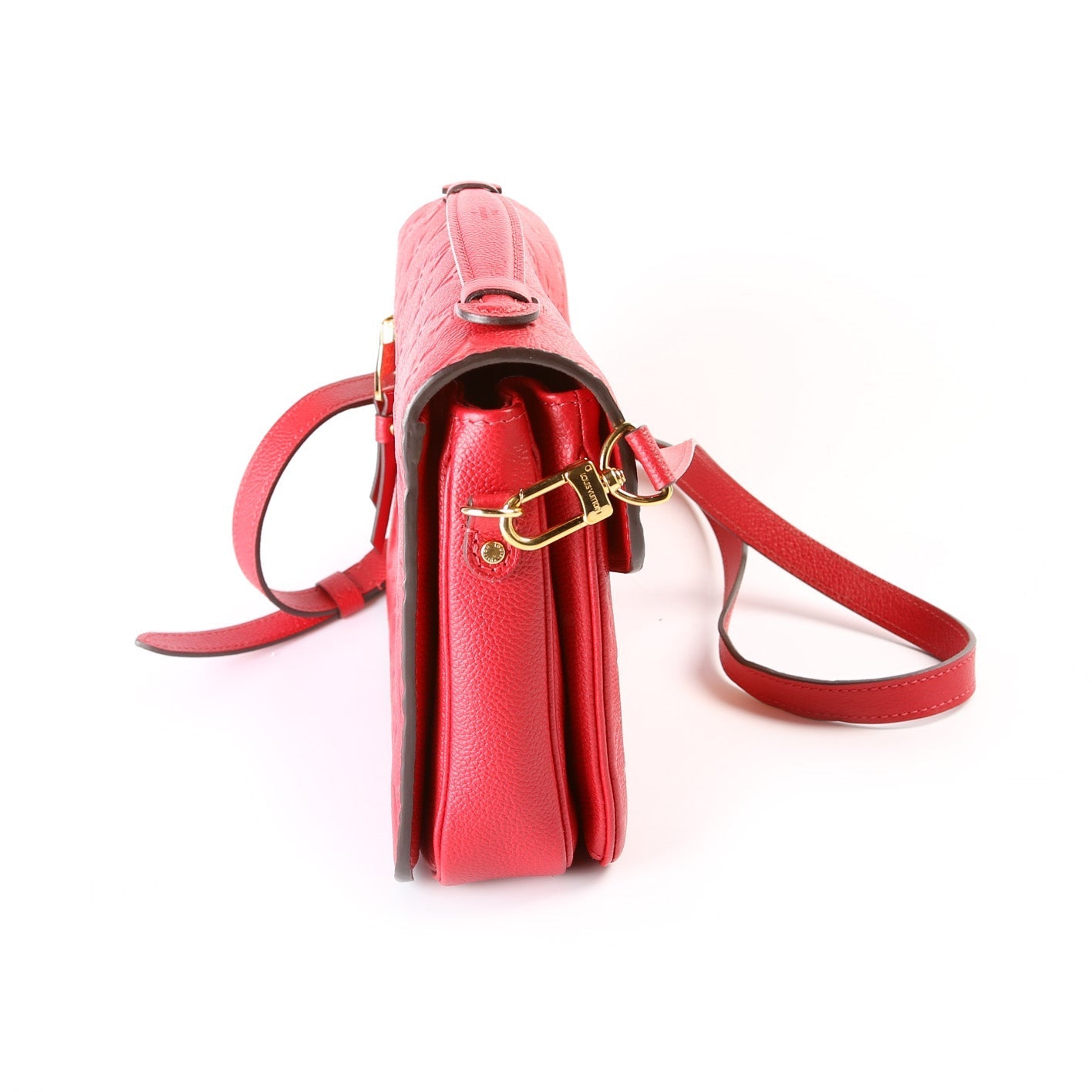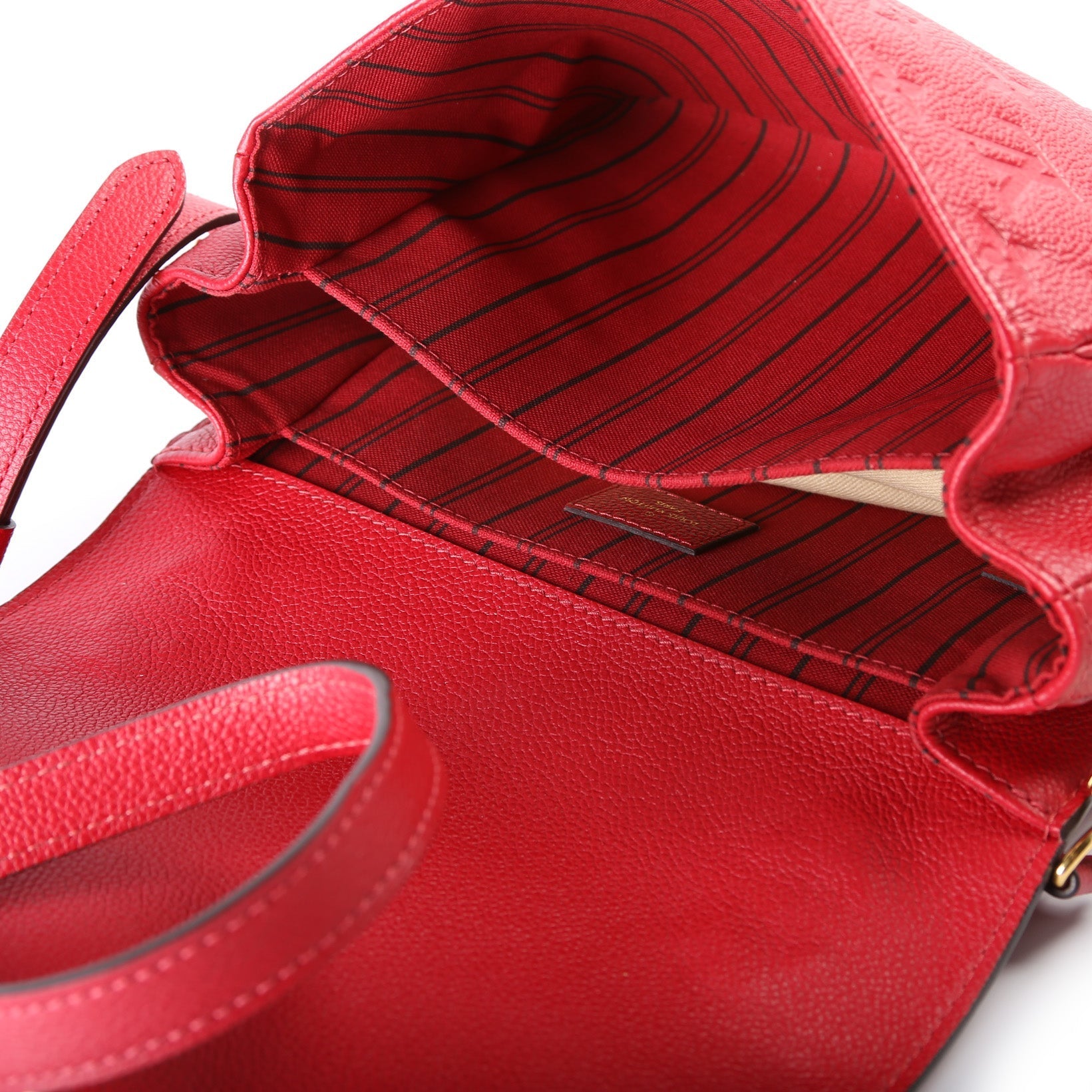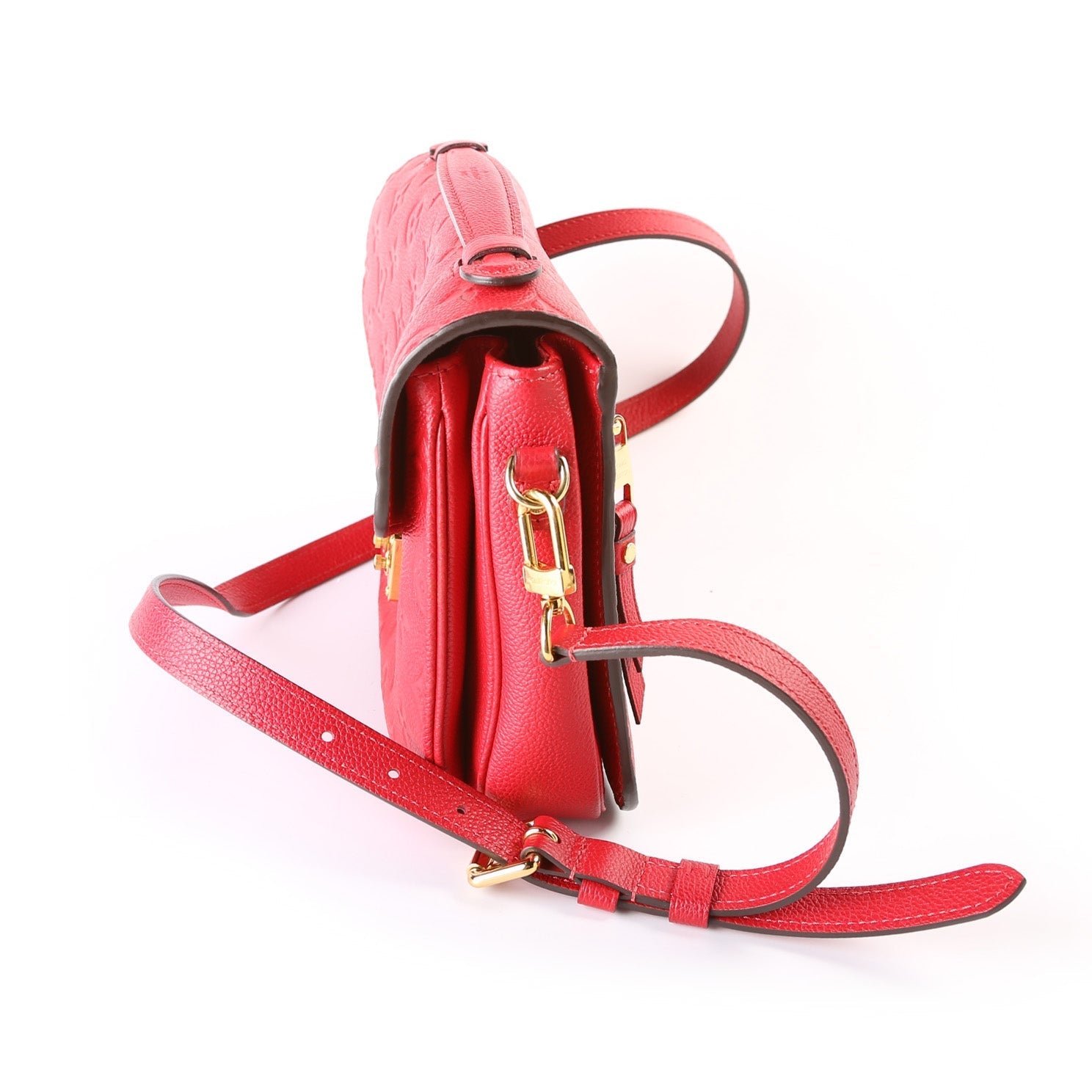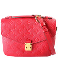 This Louis Vuitton Pochette Metisis eye catching bag. The exterior is in the classic Louis Vuitton Empreinte leather.
