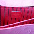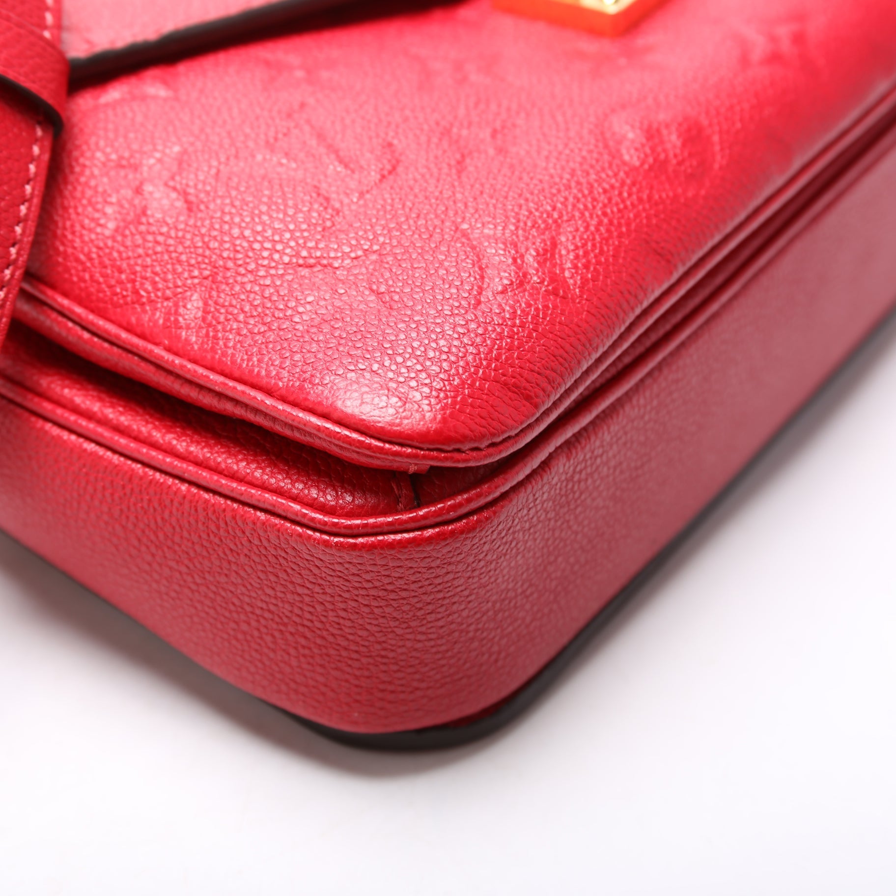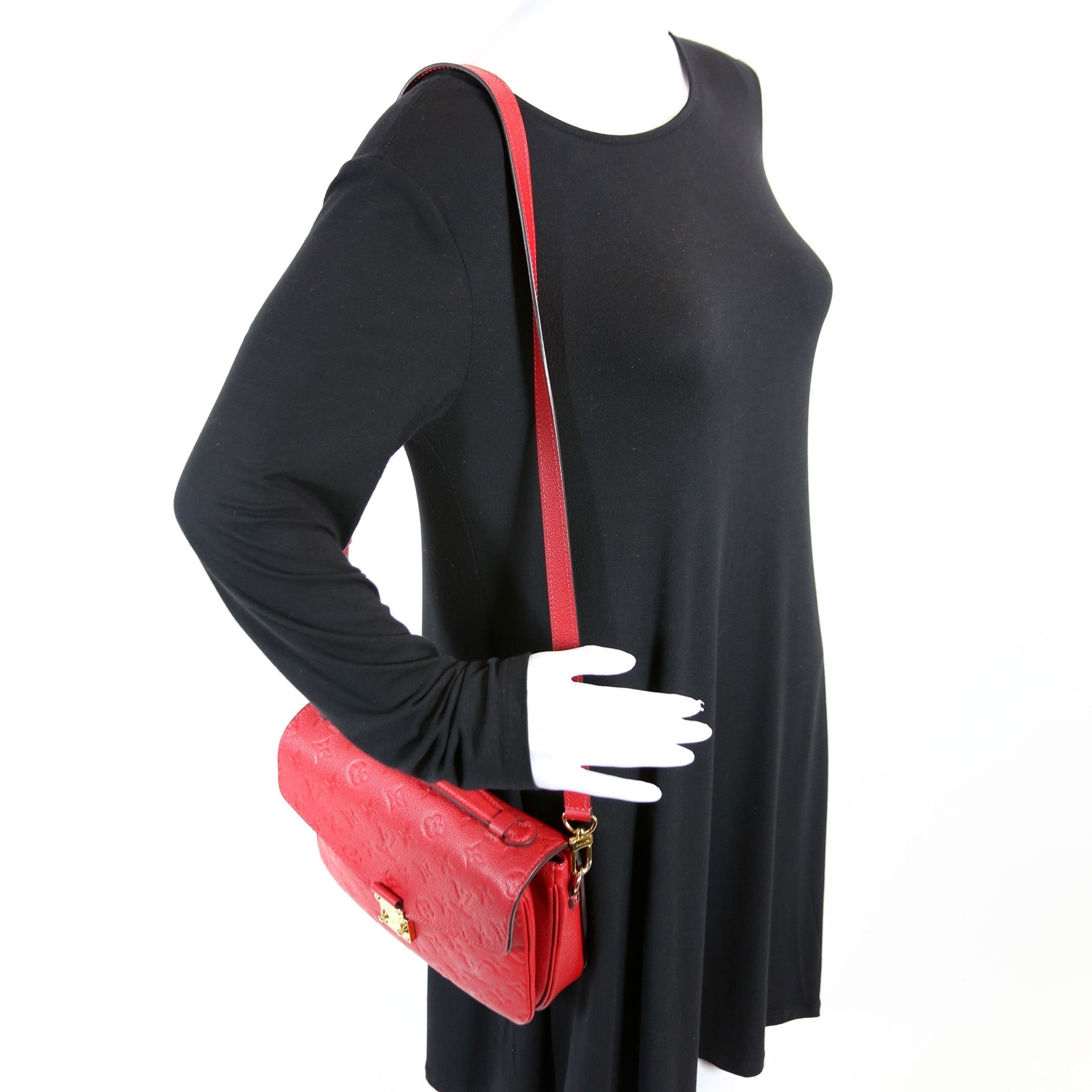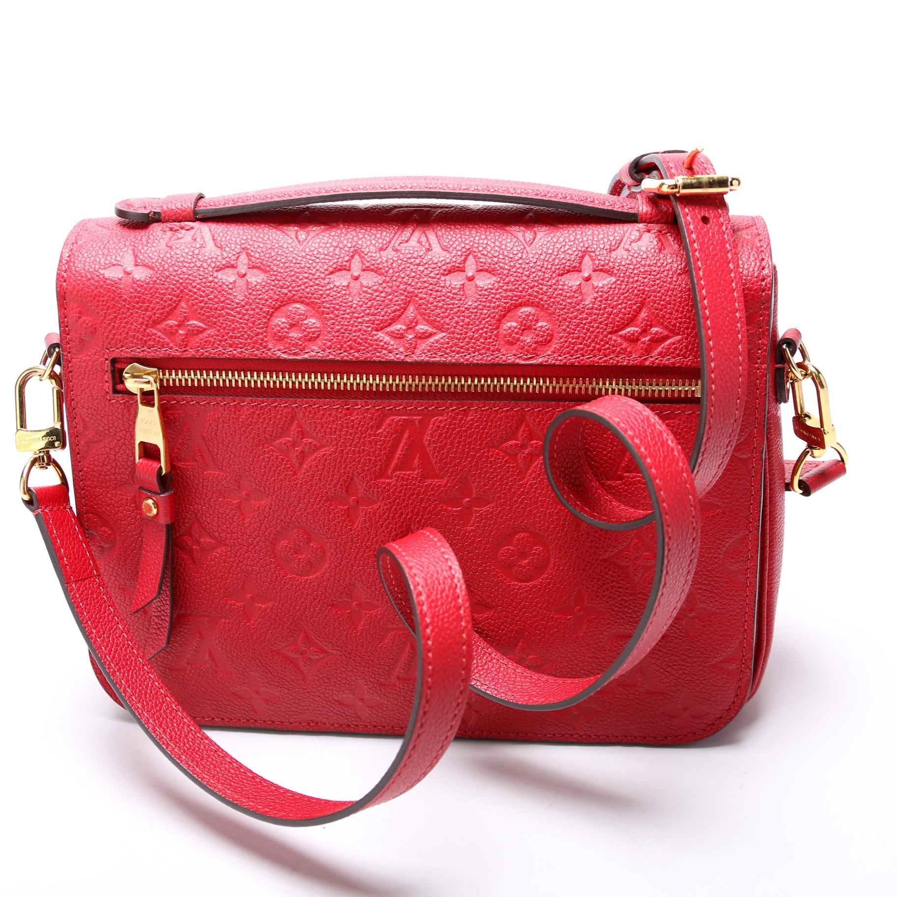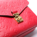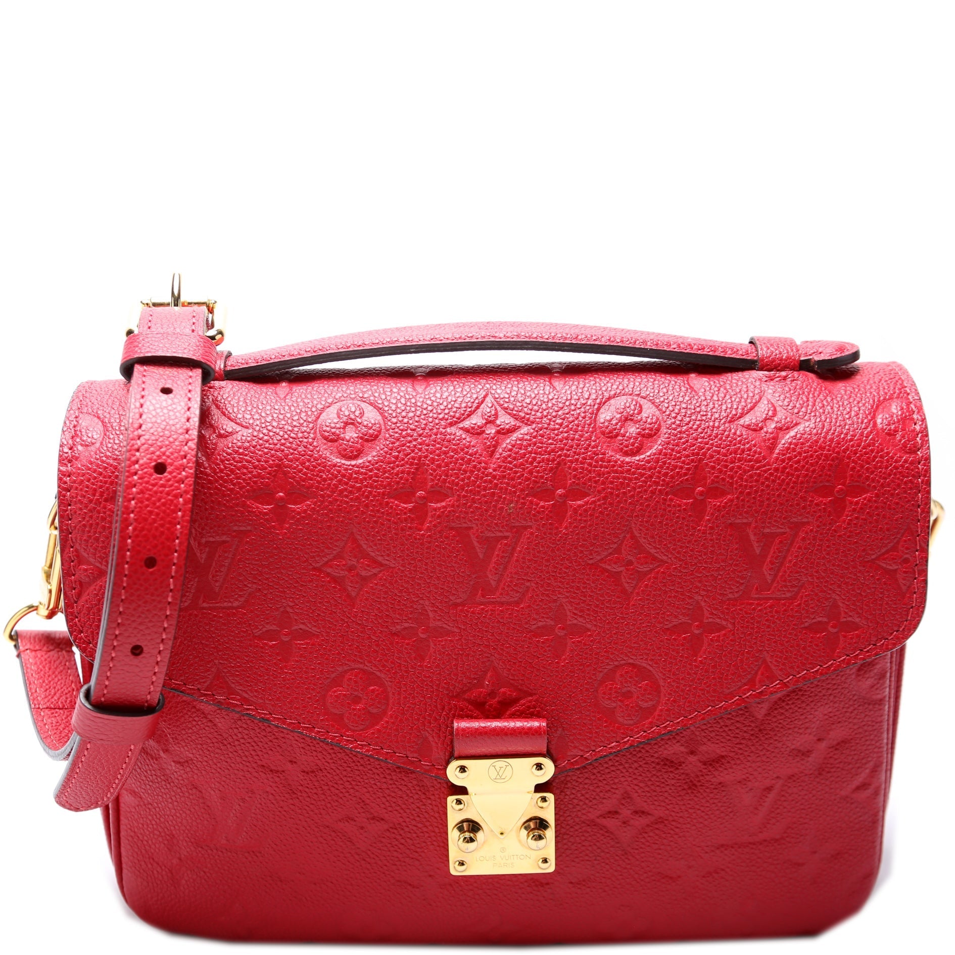This Louis Vuitton Pochette Metisis eye catching bag. The exterior is in the classic Louis Vuitton Empreinte leather.