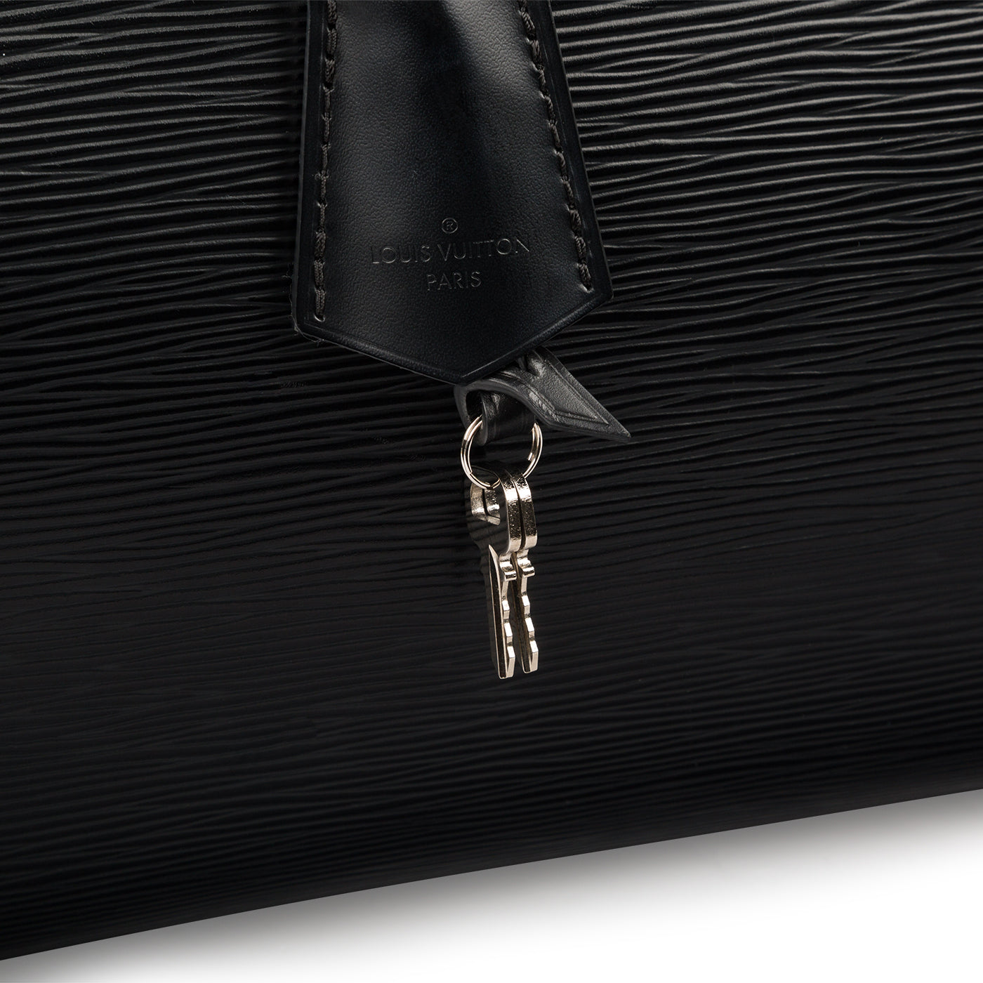 Louis Vuitton presents the chic and sophisticated Black Epi Pont-Neuf GM handbag. A glamorous handbag with an understated appeal, boasting beautiful black epi leather and eye-catching silver hardware; this handbag is ideal for professional settings. Its interior features an array of storage compartments from two compartments separated by a spacious central zip compartment. The handbag comes complete with padlock and keys; which can be stored inside a subtle clochette; allowing you to balance privacy with subtlety.