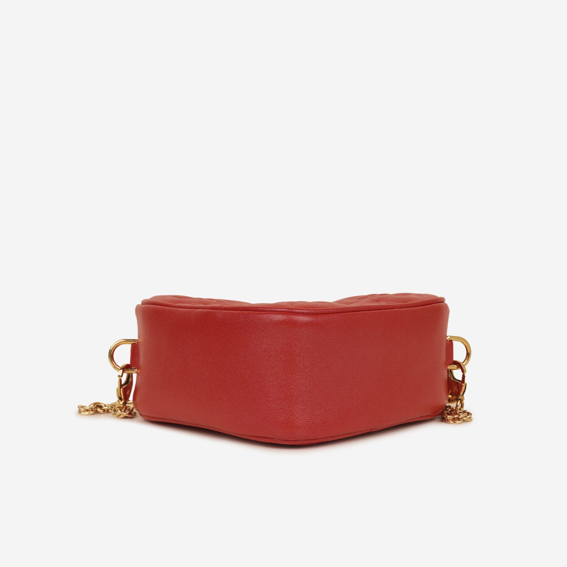 Made from iridescent pink monogram Empreinte leather, the gorgeous pop my heart bag features a charming heart shape that embodies elegance and sophistication. This exquisite bag includes a delicate, removable, and adjustable gold-tone chain embellished with an LV Circle charm. The leather showcases the iconic Monogram motif embossed onto its shiny surface, adding a touch of luxury and distinction.