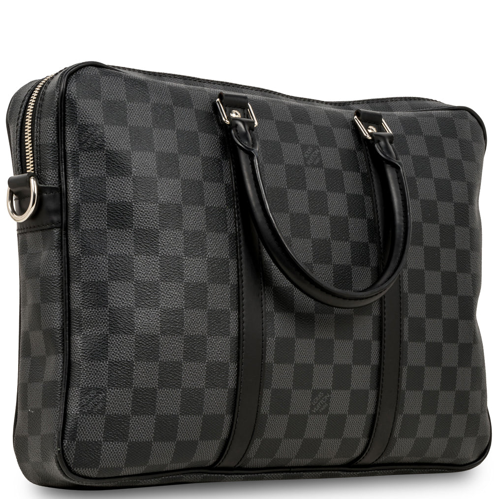 The Porte-Documents briefcase from Louis Vuitton is excellent choice for the modern business person. The bag is crafted from the iconic Louis Vuitton Damier Graphite canvas and is further complemented with the sleek cowhide leather trimmings. The Porte Voyage features a generously spacious interior with a large storage compartment alongside three slip pockets, which all vary in size. The bag comes accompanied with a lock and key, which makes the bag all the more ideal for securing your personal belongings in.