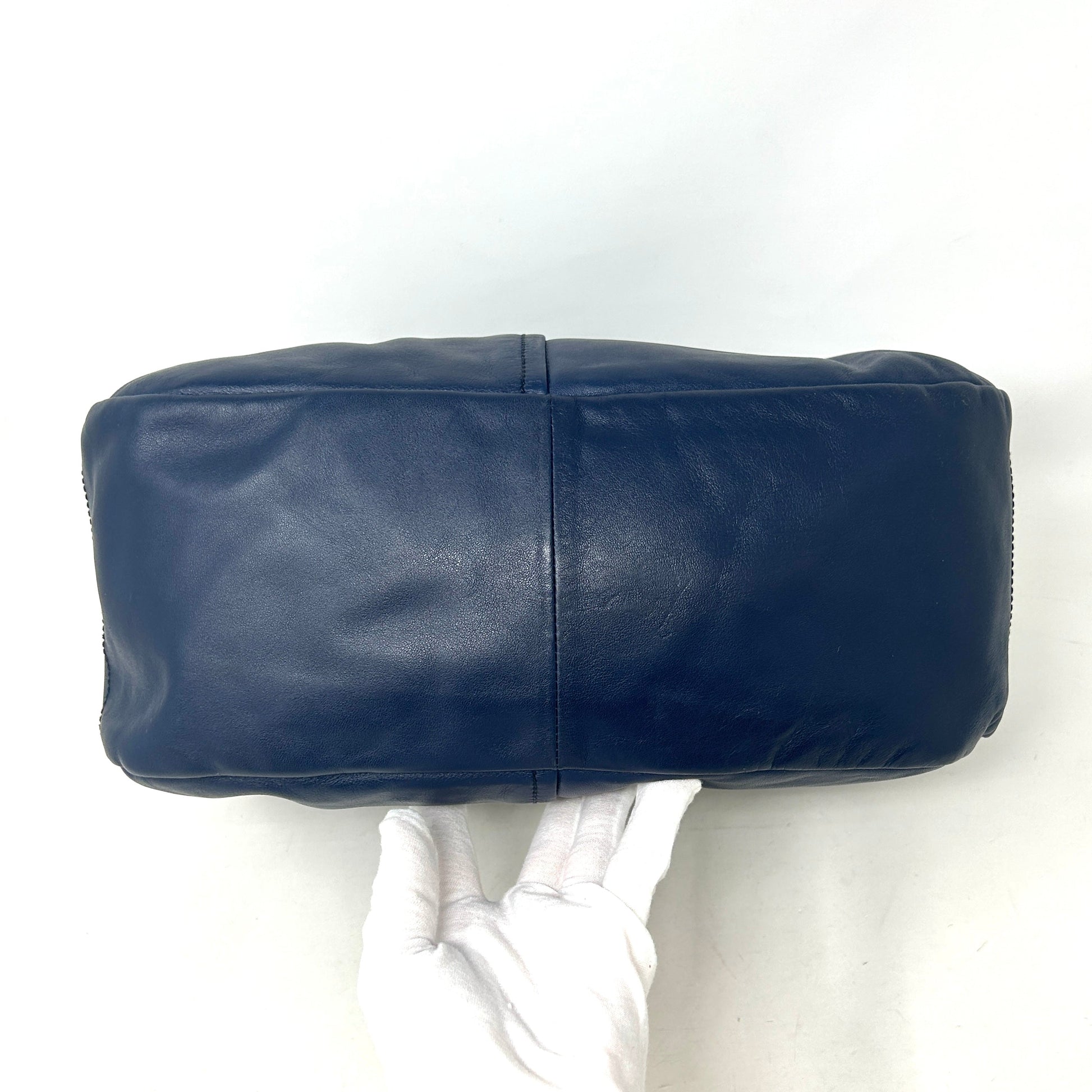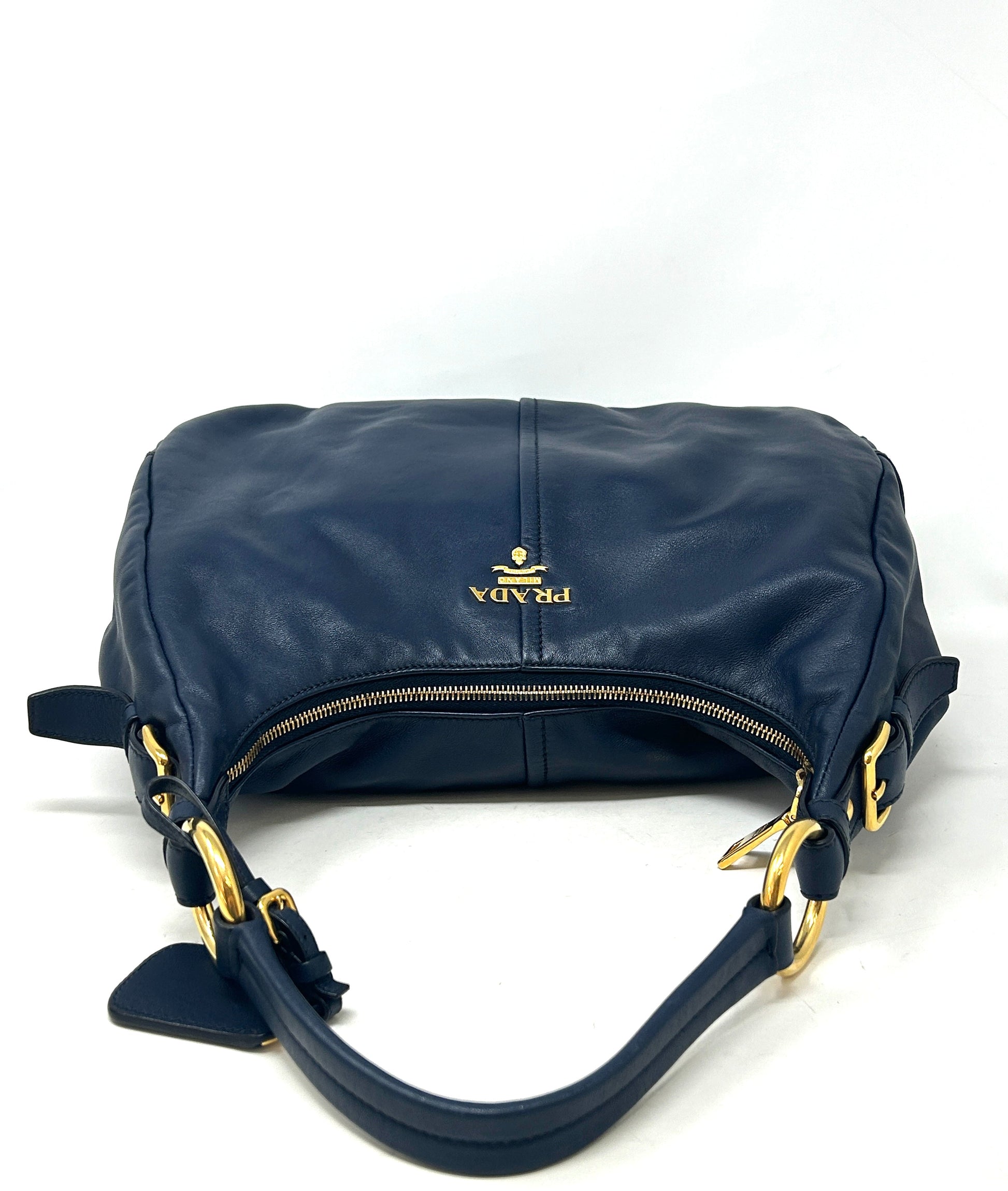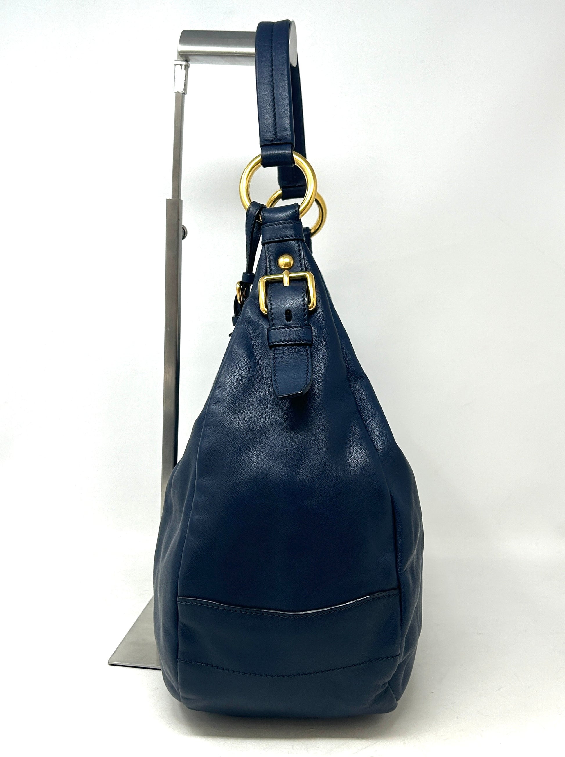 Prada Sacca Navy Blue Soft Calf Leather Hobo Shoulder Bag