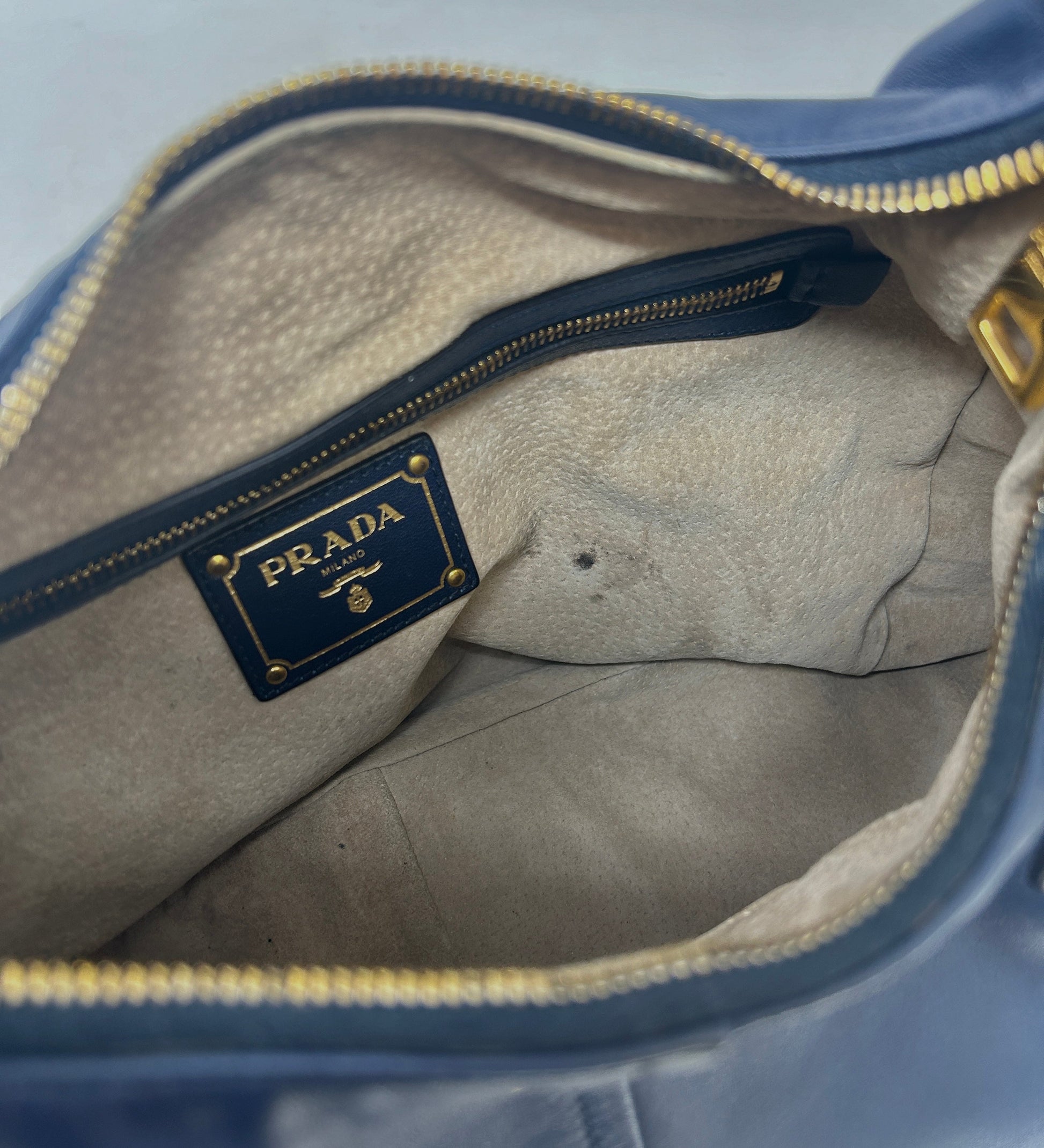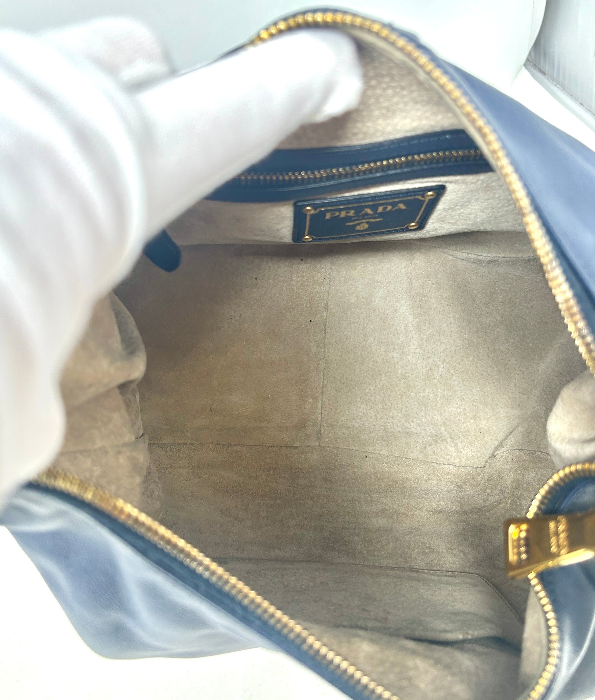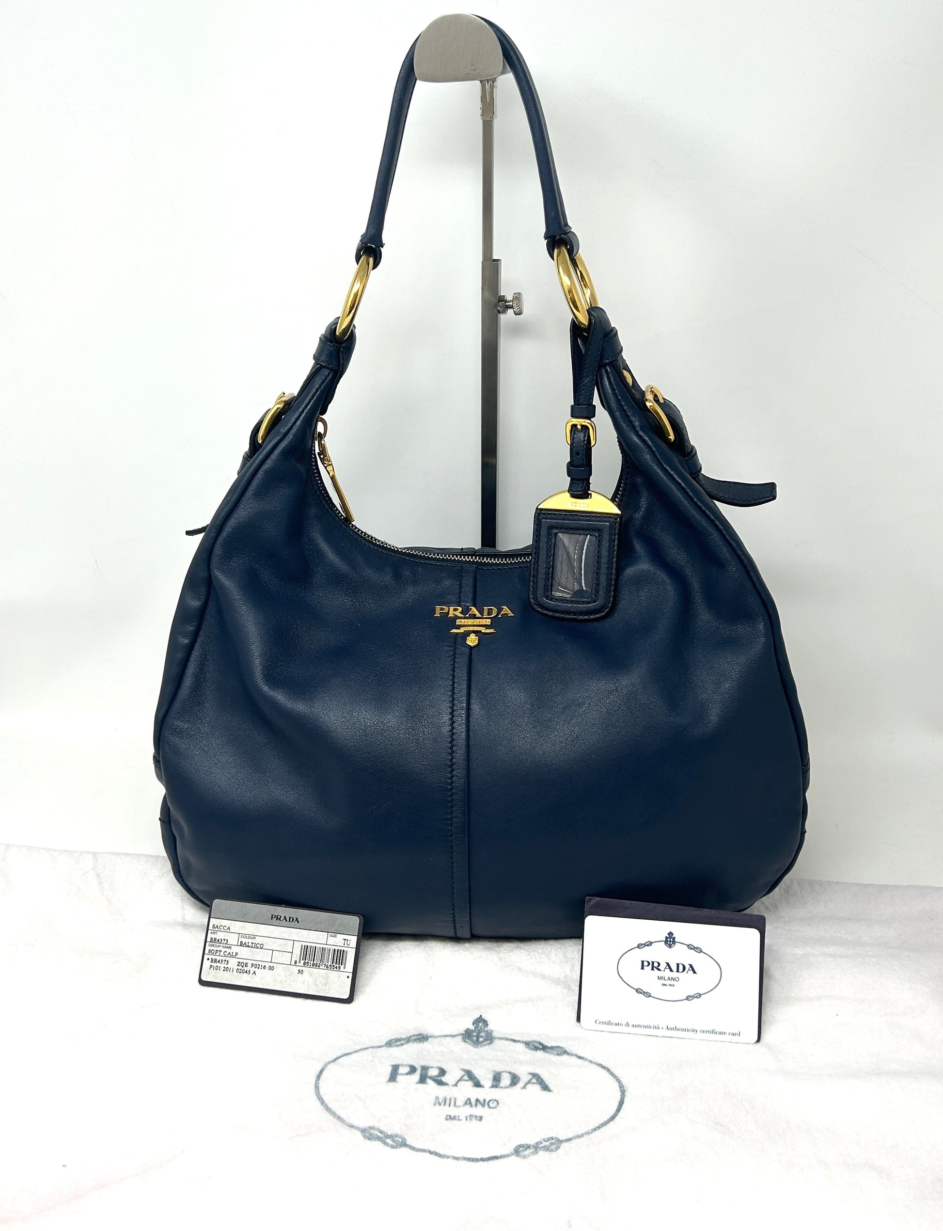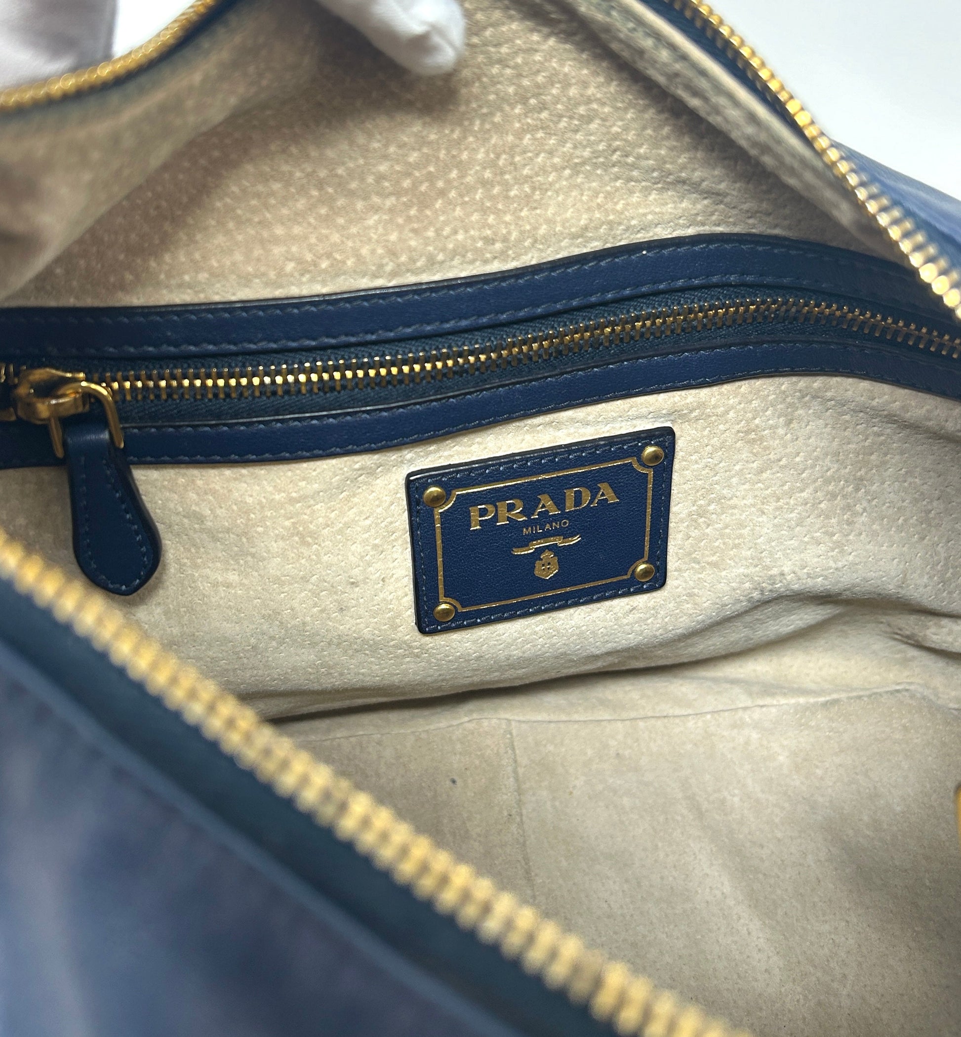 Prada Sacca Navy Blue Soft Calf Leather Hobo Shoulder Bag