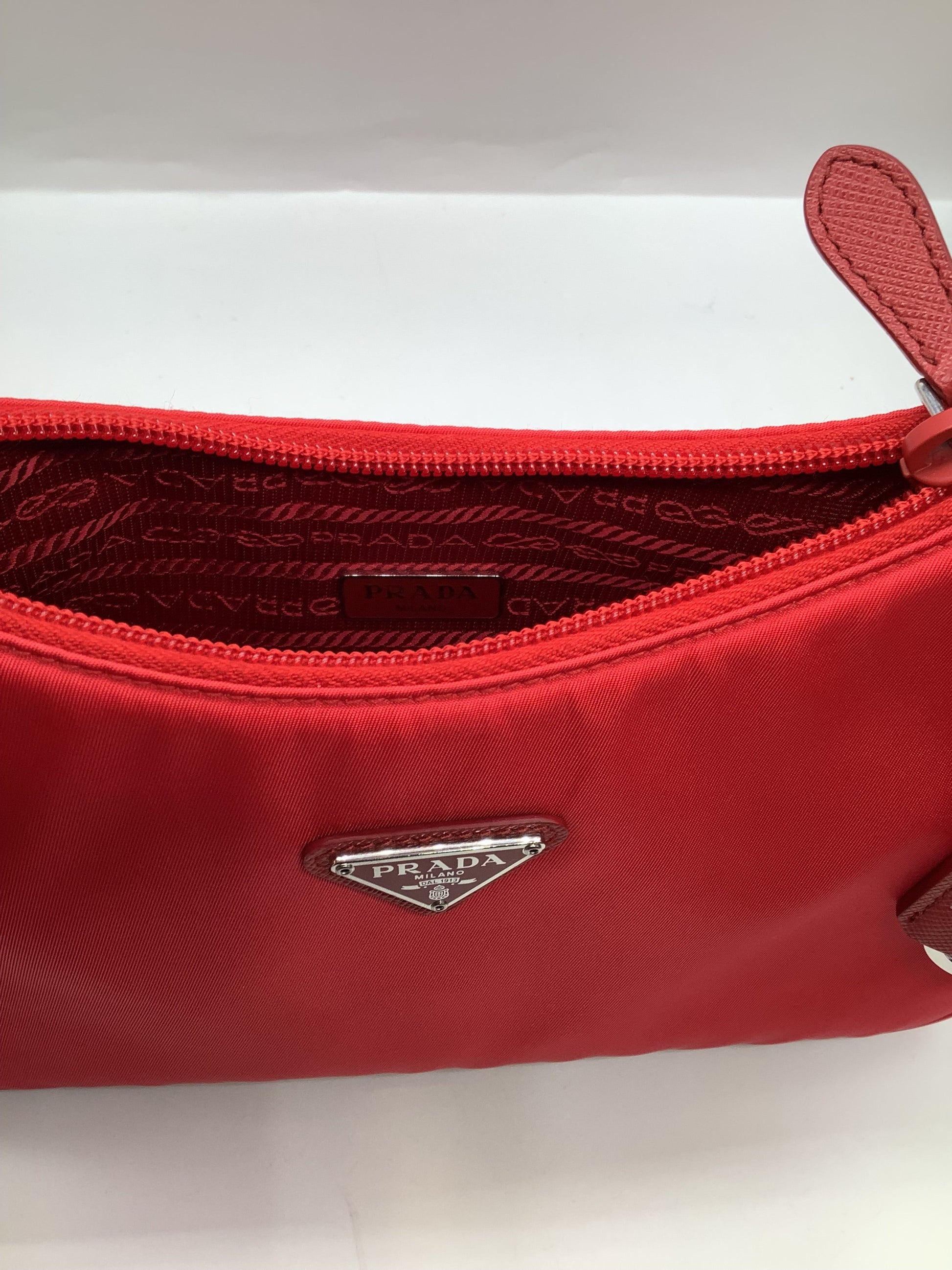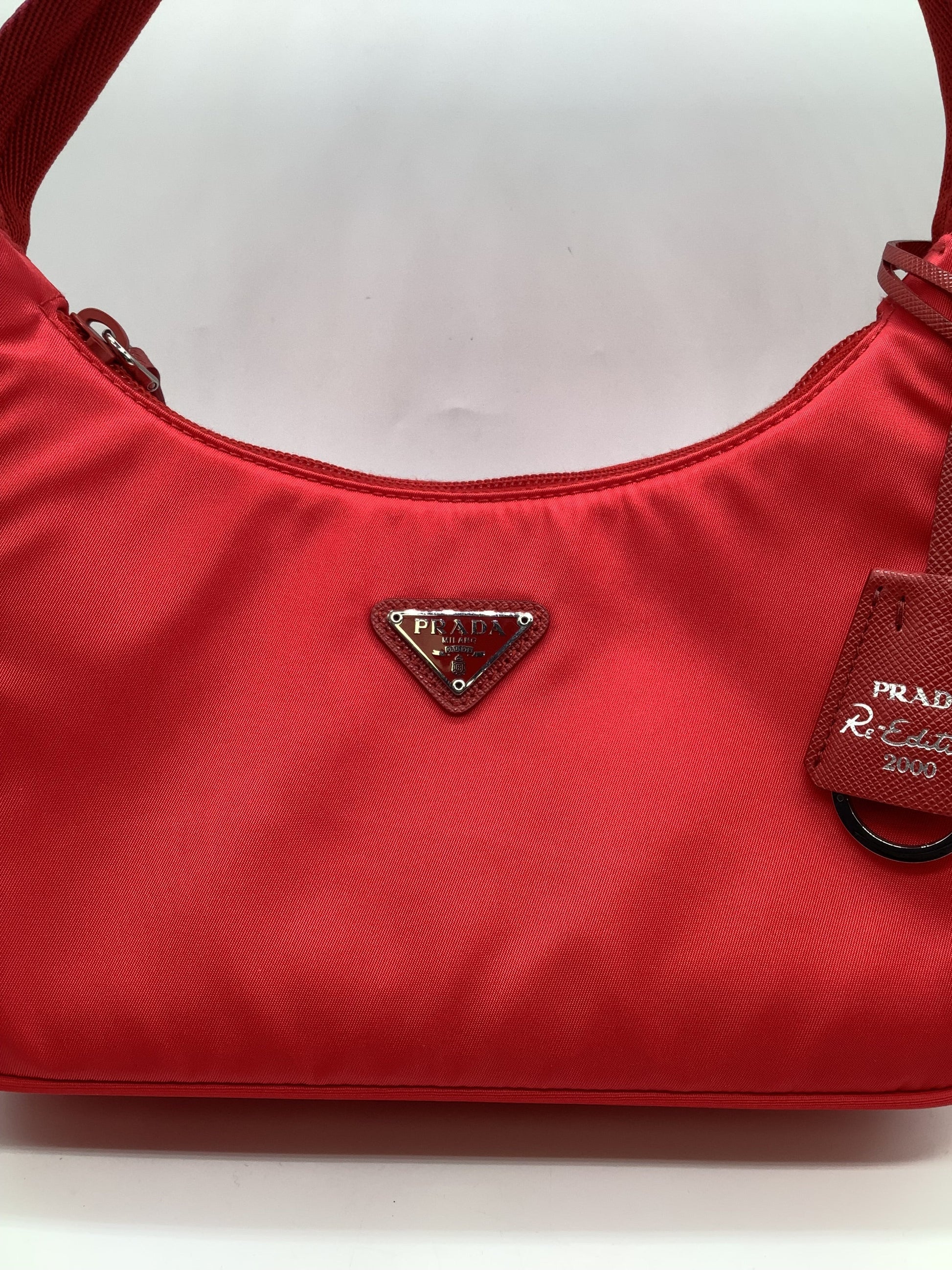 Materials & Design: The Prada Re-Edition 2000 Hobo Bag is meticulously crafted from Tessuto nylon, a material celebrated for its lightweight durability and water-resistant properties. The vibrant red hue adds a bold statement to its sleek, minimalist silhouette, making it a versatile accessory suitable for various occasions.?