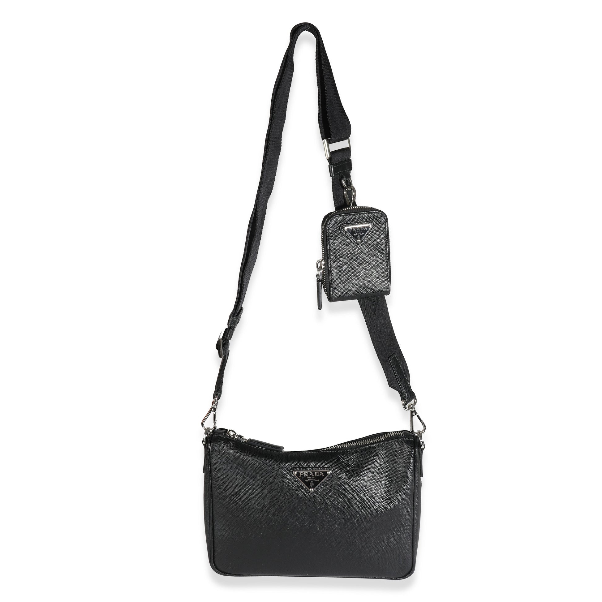 PRADA Black Saffiano Small Utility Strap Crossbody
