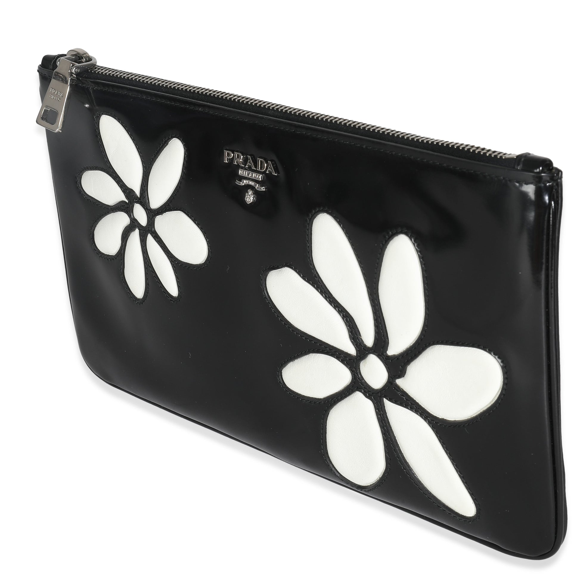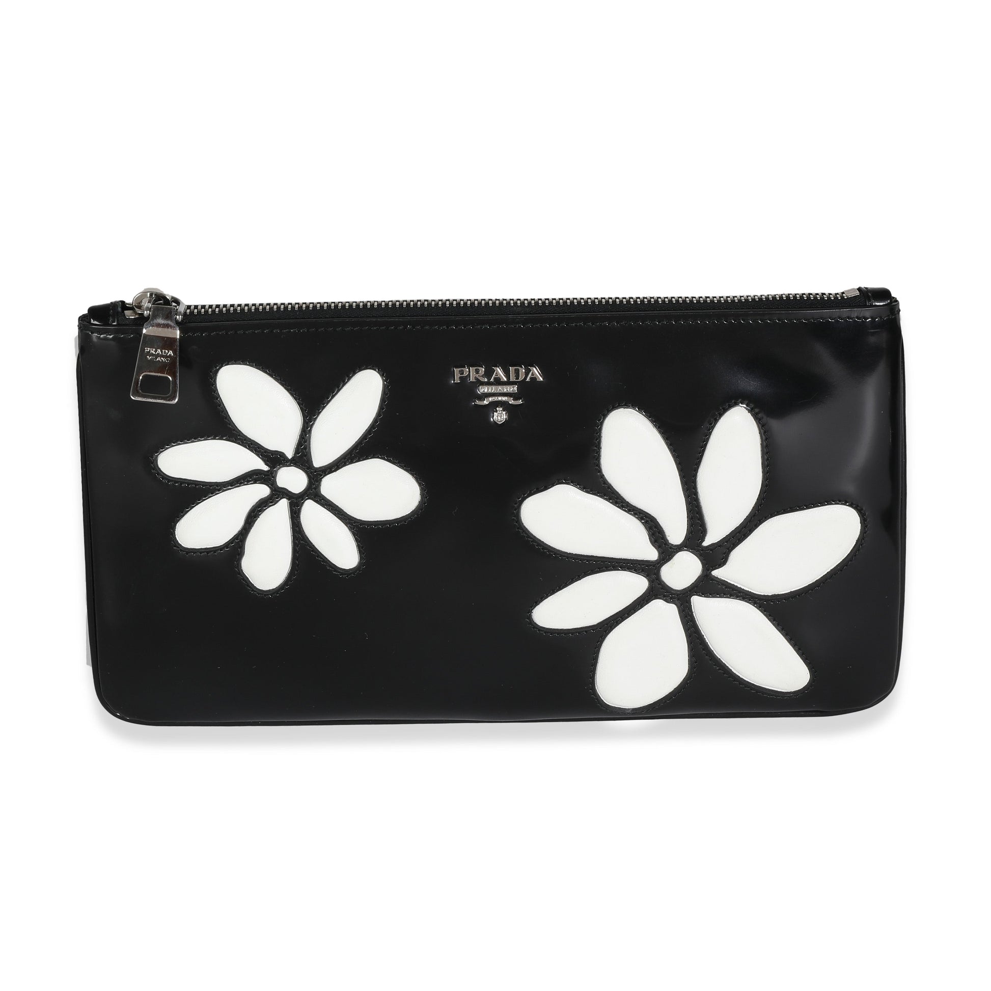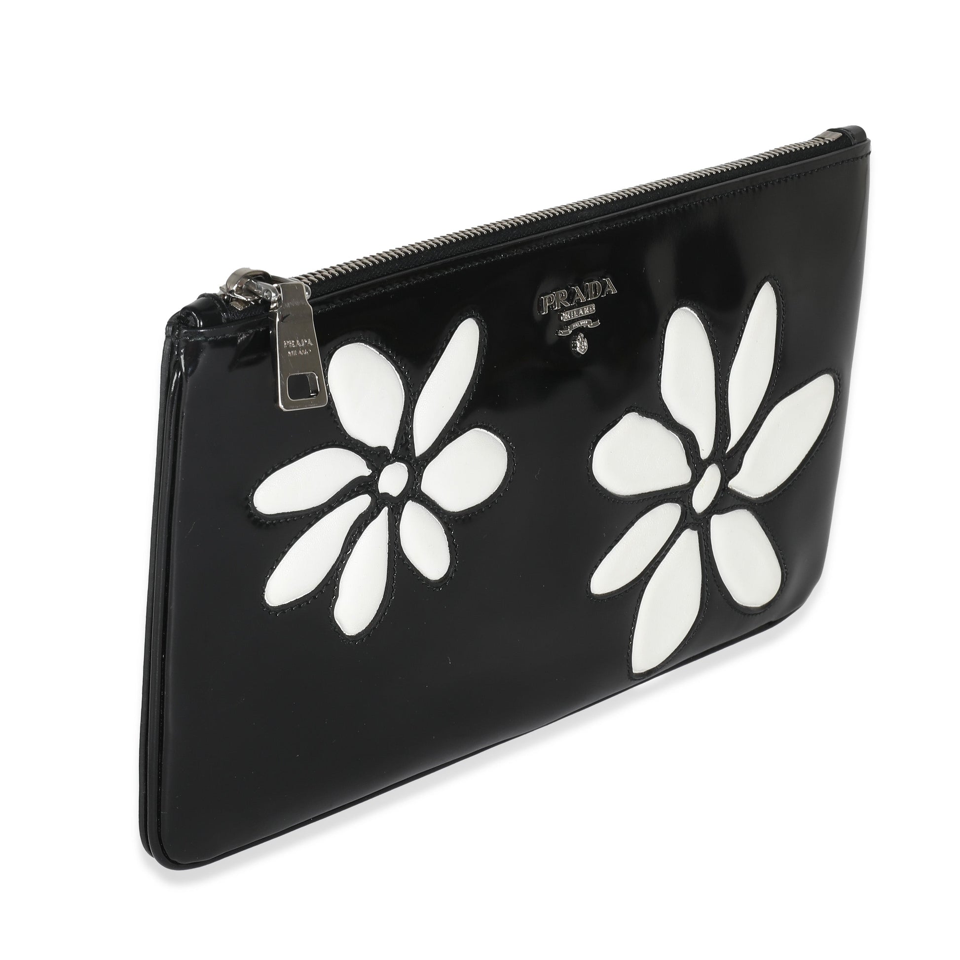 Listing Title: Prada Black Spazzolato Flower Zip Pouch