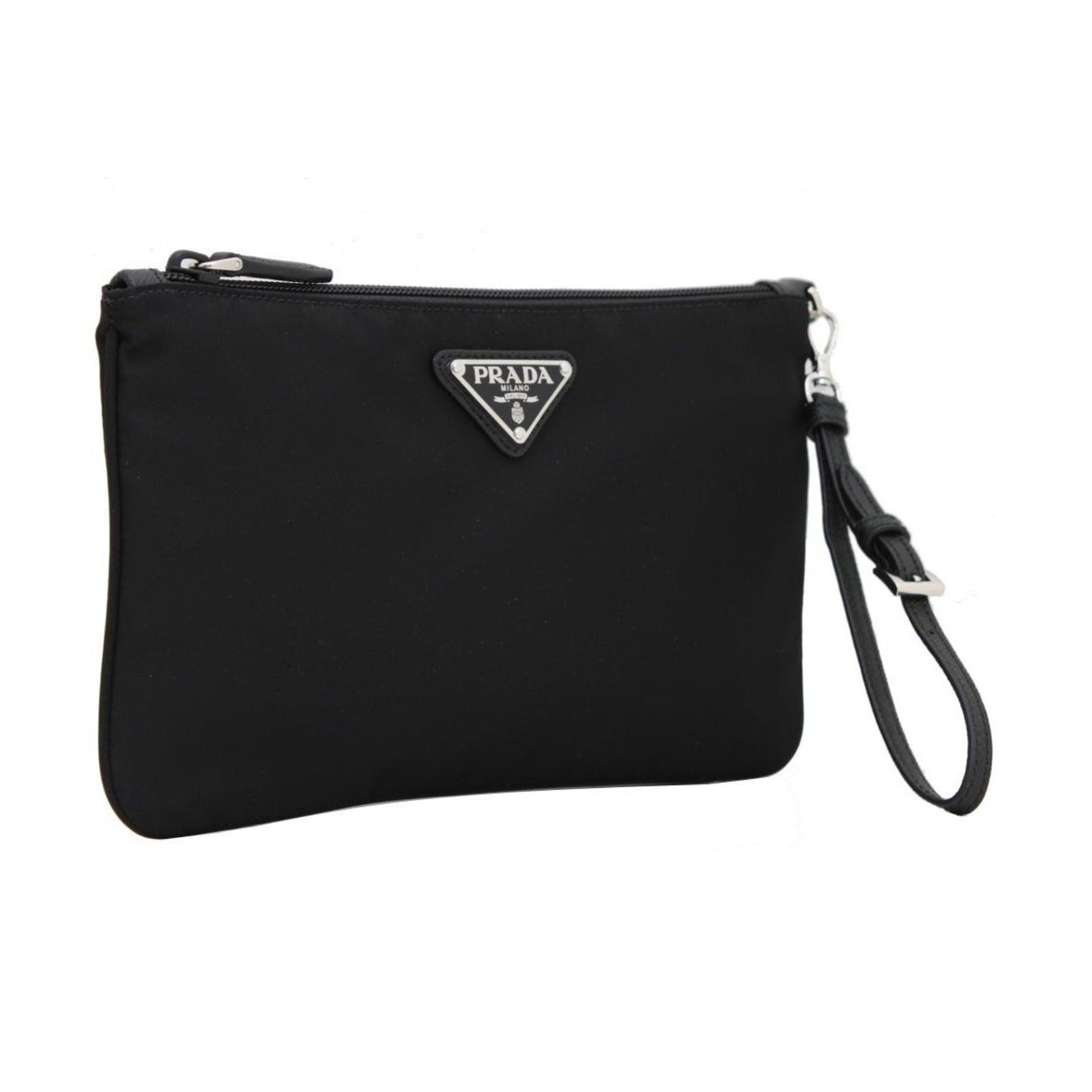 Prada Black Tessuto Nylon Pouch Prada Logo Wristlet Clutch Bag