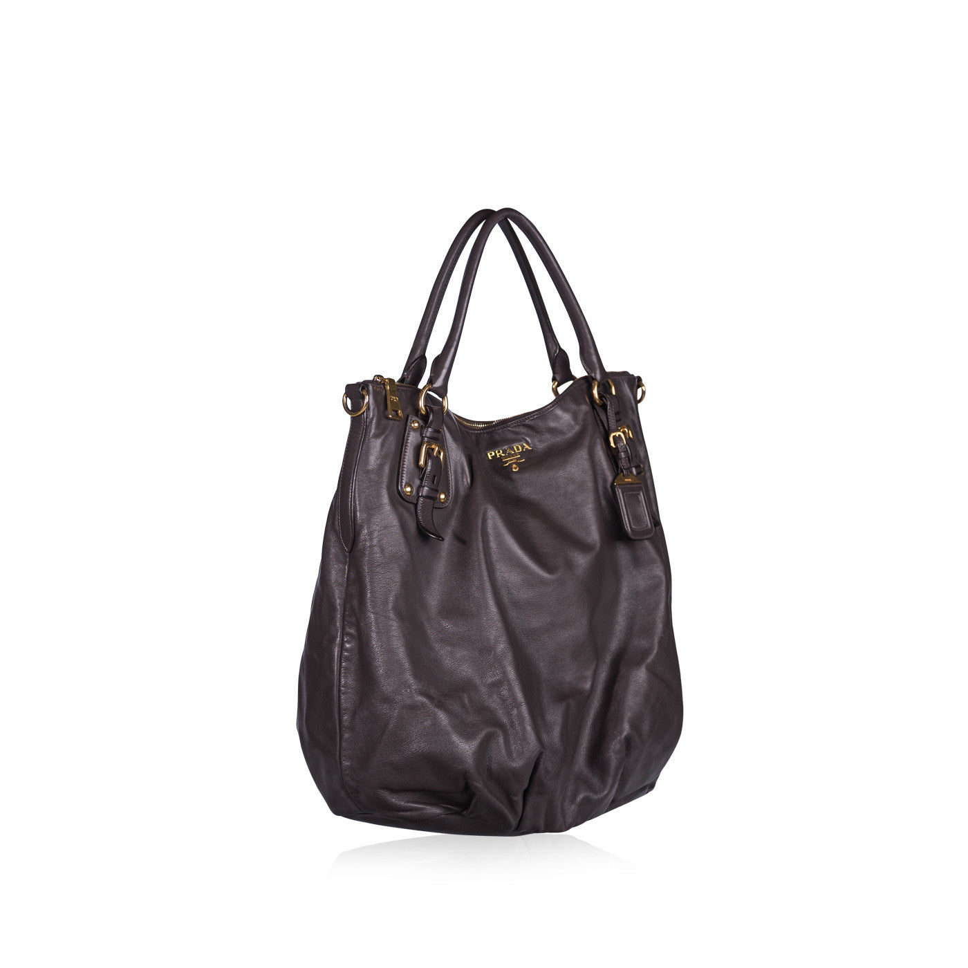 This chic and spacious Prada Bruciato Cervo Leather Bauletto Bag will be your new favourite IT bag. It is made of soft calf skin leather and comes with stylish rolled leather handles, long detachable strap and luggage tag. This trendy bag is roomy enough to hold all your daily essentials and more.