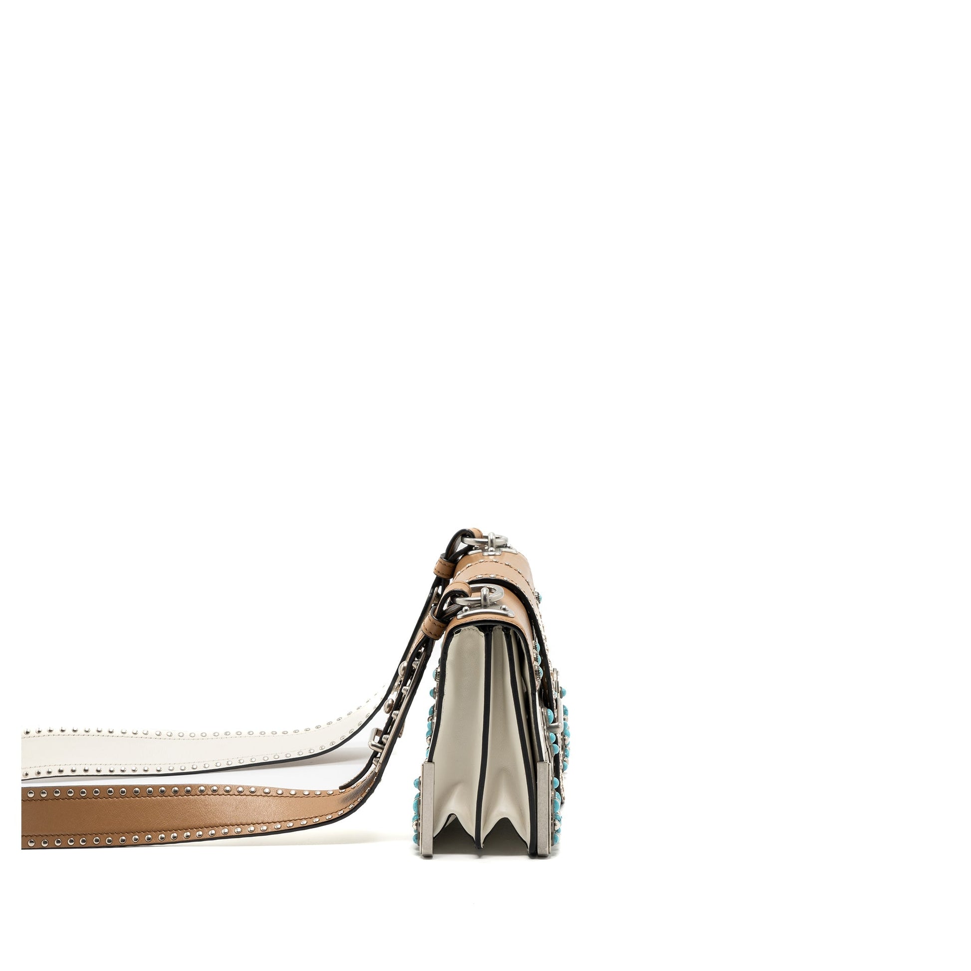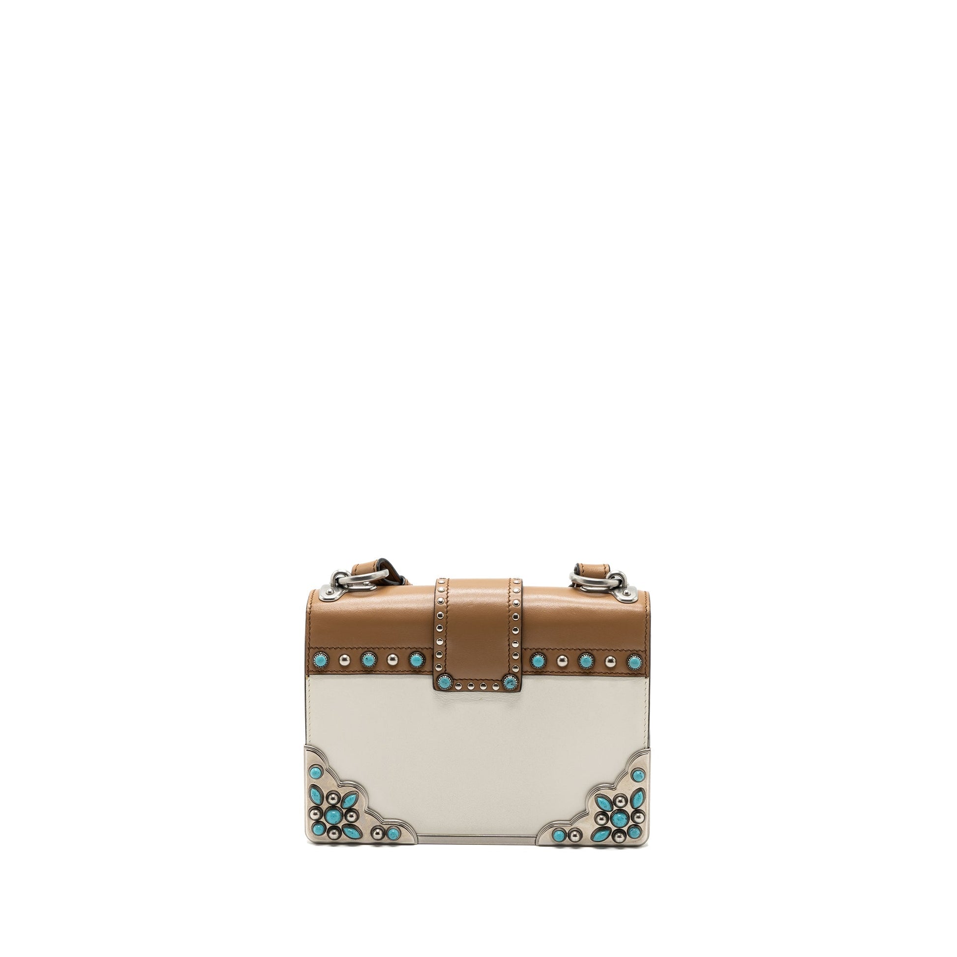 Prada Cahier Embellished Two-tone Leather Shoulder Bag White / Caramel SHW