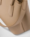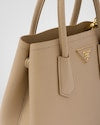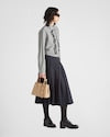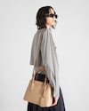 Refined, delicate details give new life to iconic designs of the brand like the Prada Double bag with a new mini design that is versatile and sophisticated. A tonal leather triangle frames the iconic metal lettering logo that decorates the front, while the detachable shoulder strap lets the bag be worn slung over the shoulder or as a crossbody bag.