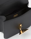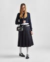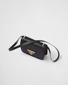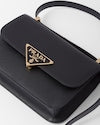 This shoulder bag with a structured classic design is made of Saffiano leather, an iconic material of the brand characterized by its crosshatch texture and waxed finish. The triangle logo, first introduced by Mario Prada on the trunks he designed, decorates the front. Provided with a handle with a novel design, the accessory comes with an adjustable shoulder strap to be worn in different ways.