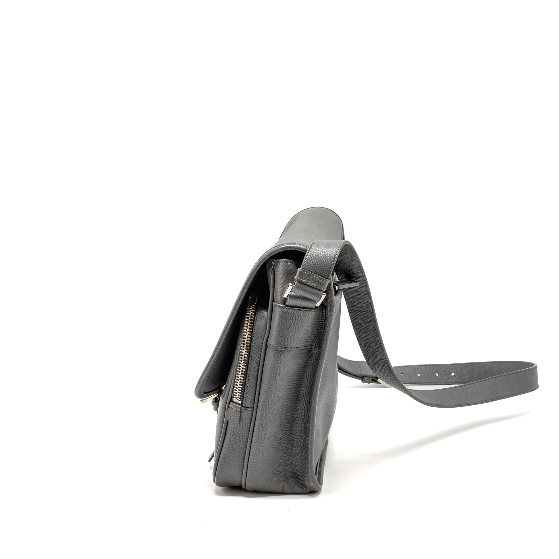 (This item is in fair condition with rubbing on leather and edge, slight creasing on leather, slight scratches on hardware. )