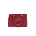 ( visible darkening/scuffs on the exterior leather and handle, and minor scratches on the hardware. )