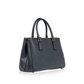 The Prada Galleria bag is modern and sleek in its design, showcasing Italian glamour. Although versatile and understated enough for everyday wear, it is a stunning and unique design with textured Saffiano leather, structured leather straps and gorgeous gold tone trims. The Navy colour way makes this piece the perfect addition to your everyday wardrobe. Wear on the shoulder with the detachable strap for daytime or carry but the structured leather handles for the evening; this bag suits any occasion.