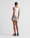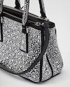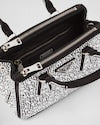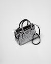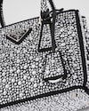 A surface of dazzling crystals in various sizes creates a precious play of sparkles and glimmers on this Prada Galleria bag, recalling the jewelry world. The accessory, which exemplifies the centennial excellence of Prada in luxury leather goods, becomes a reflection of the brand's modernity and stylistic identity that seeks to interpret kaleidoscopic contemporaneity through a pragmatic design and structured lines. Presented in a mini version, the bag is made of fine silk satin. The Prada Galleria bag, named after the historic Prada store opened by Mario Prada in 1913 in Galleria Vittorio Emanuele II in Milan, expresses the quintessence of the brand's timeless elegance.