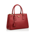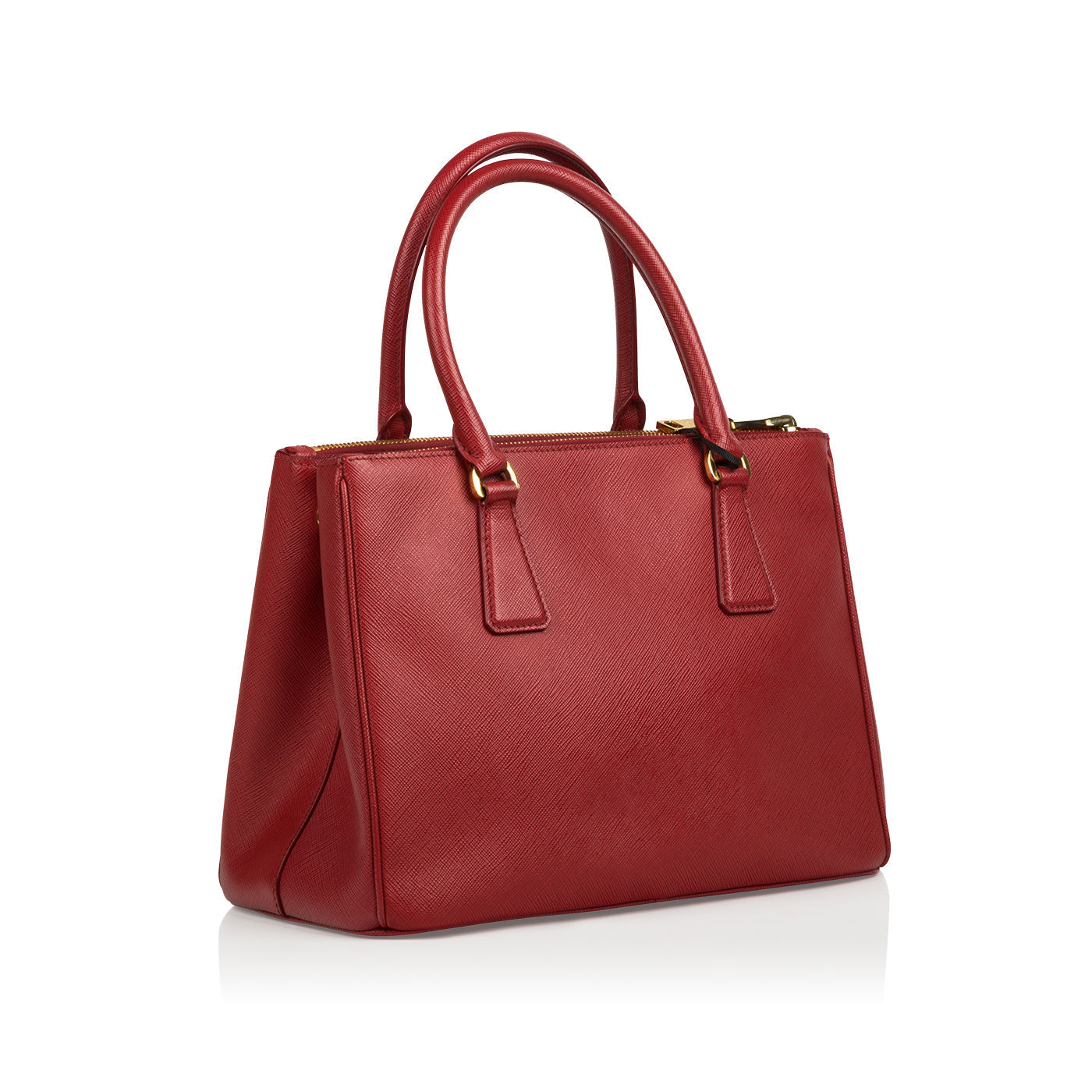 Immaculately crafted from the widely renowned saffiano leather, Prada presents the coveted Small Galleria Tote in red saffiano leather. The handbag’s red leather exterior is magnificently adorned with gold toned hardware, maintaining the perfect balance between sophisticated and contemporary. The bag is further punctuated with Prada’s coveted logo plaque and a hanging clochette. The bag also features an open top design, with two large zip compartments on the front and back of the bag. Its interior is lined with their quintessential dark logo textile. Ideal for work or quite simply lunches and dinners, the Prada Galleria Tote was made to last.