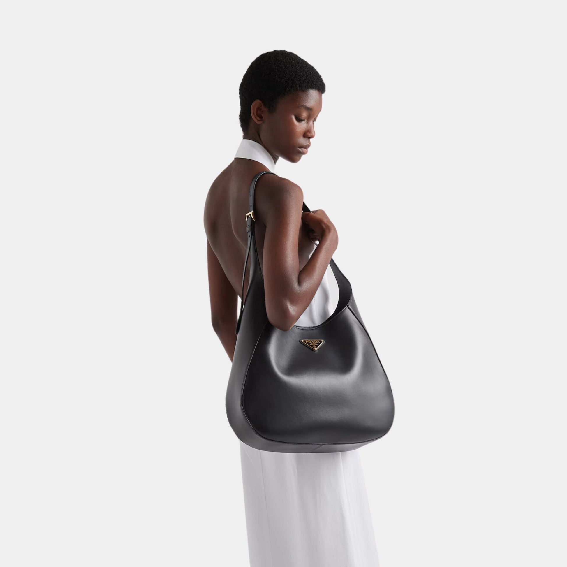 The Prada Large Leather Shoulder Bag is a timeless and versatile accessory, offering a sophisticated and sporty edge for women who value style and functionality.